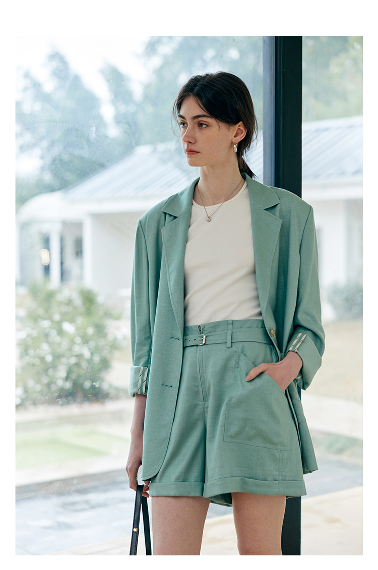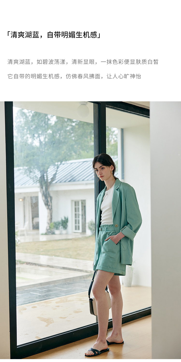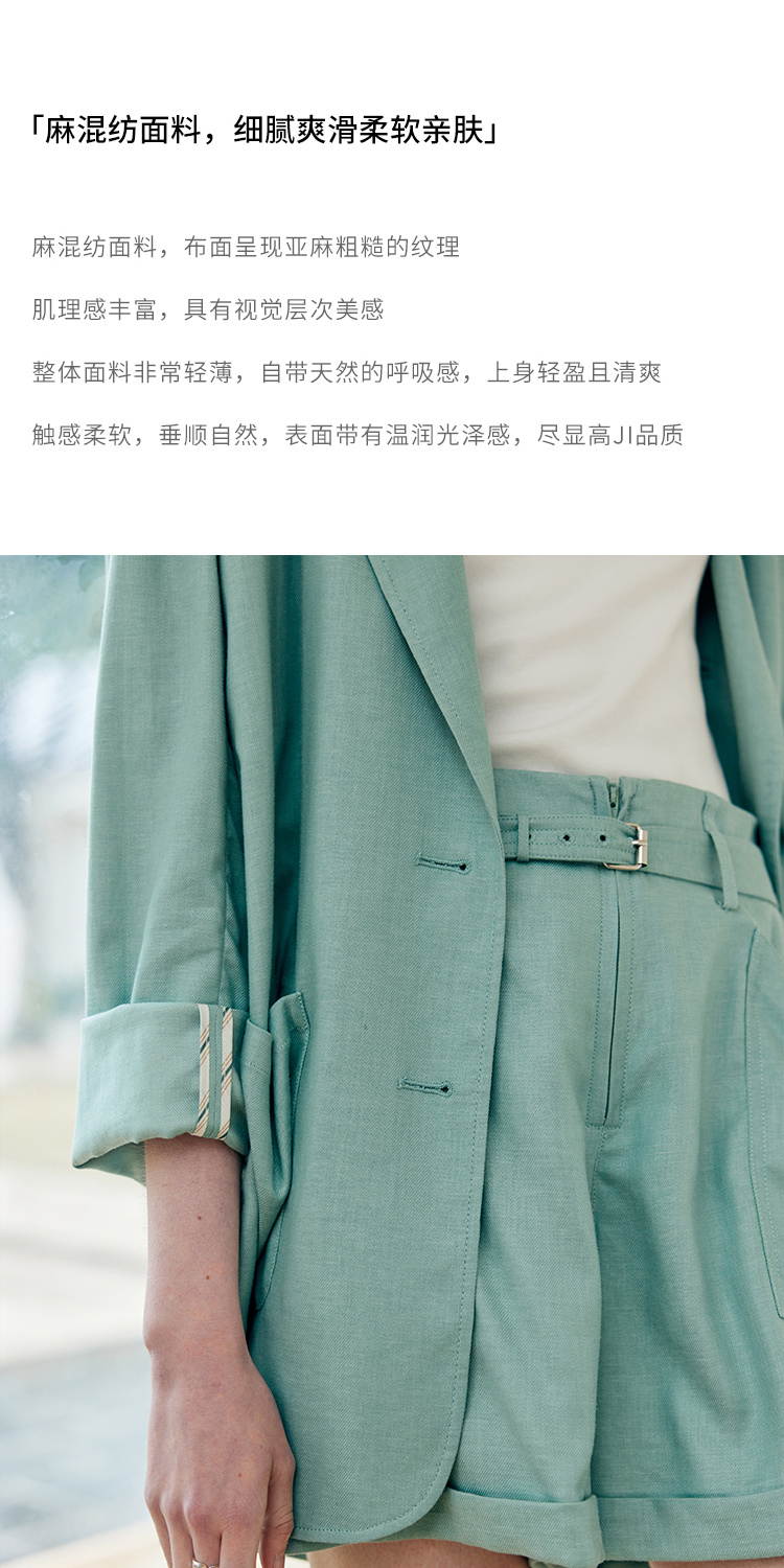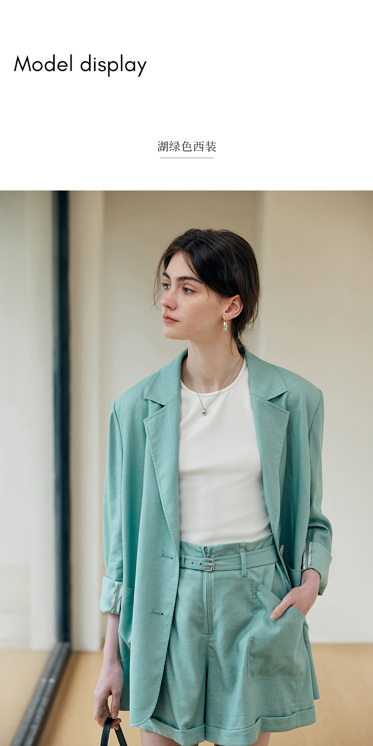 HeyDress亚麻西装外套女春夏法式宽松高级肌理感套装高腰显瘦短裤