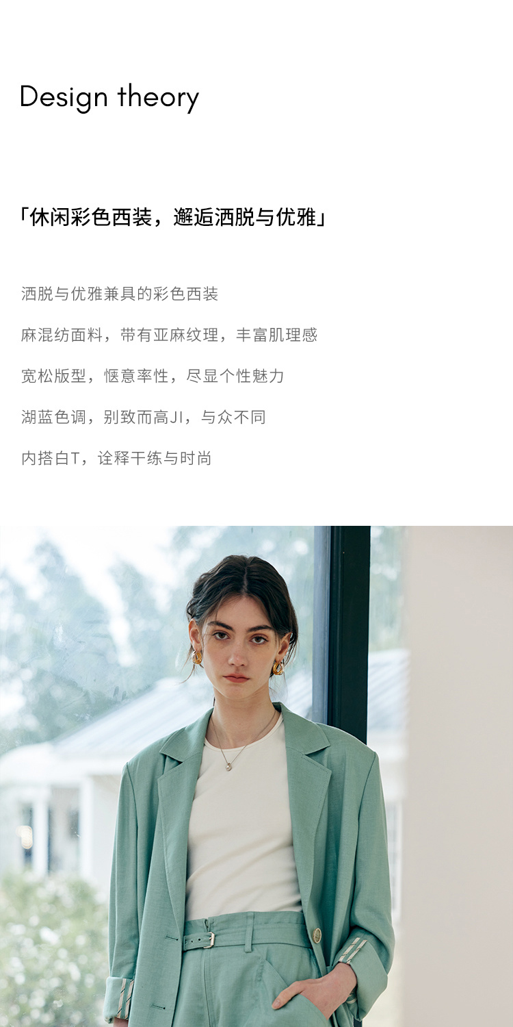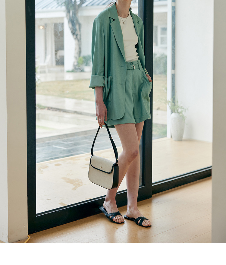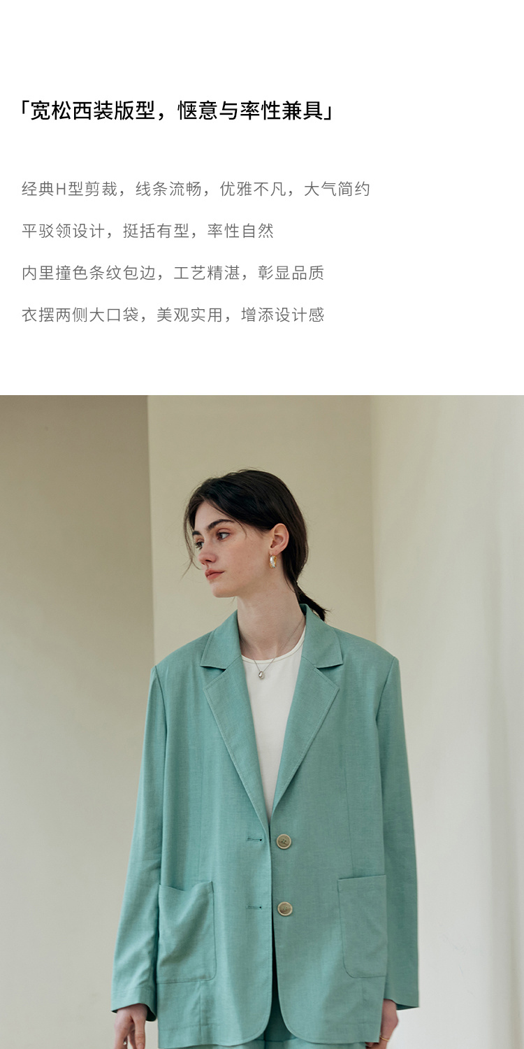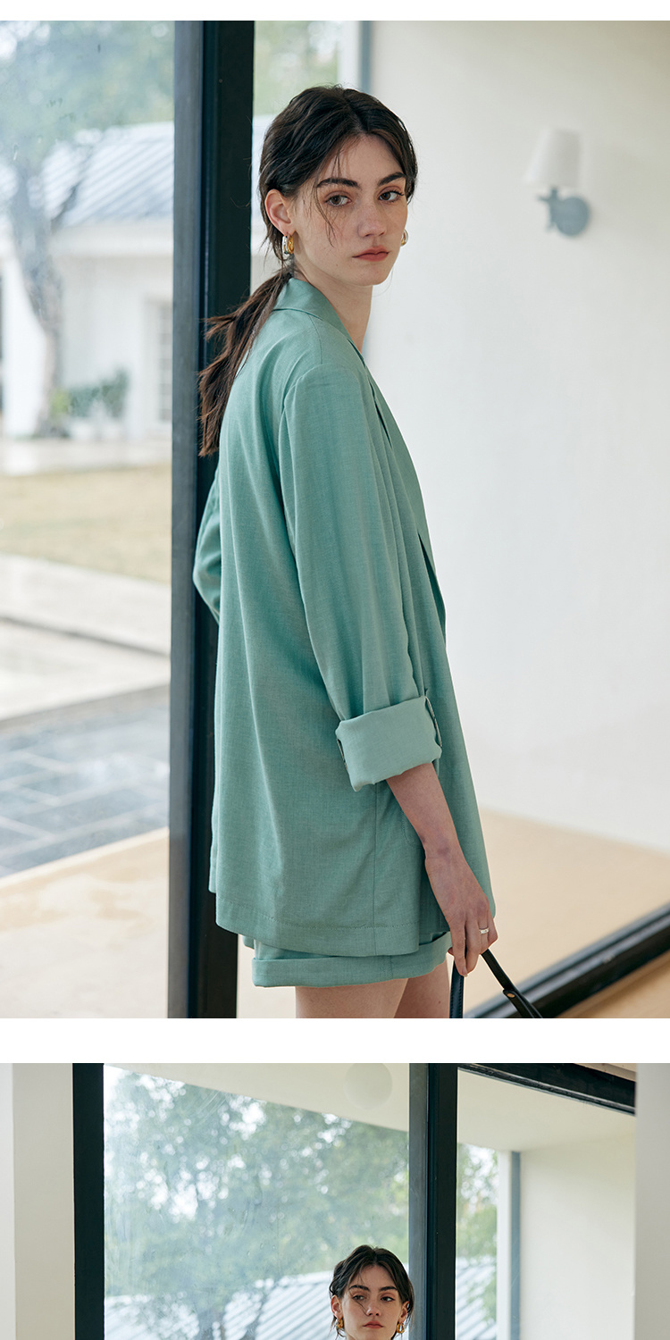 HeyDress亚麻西装外套女春夏法式宽松高级肌理感套装高腰显瘦短裤