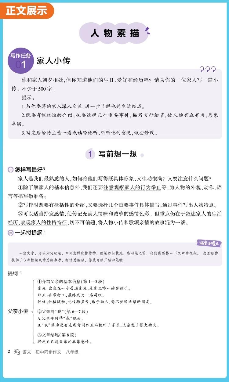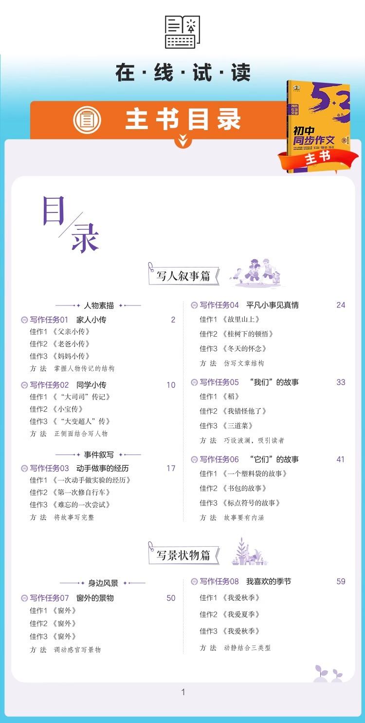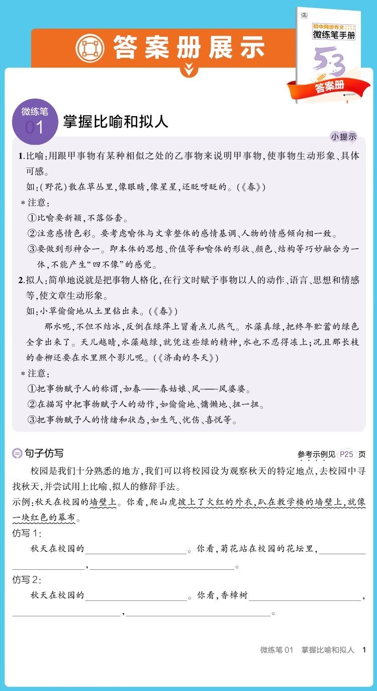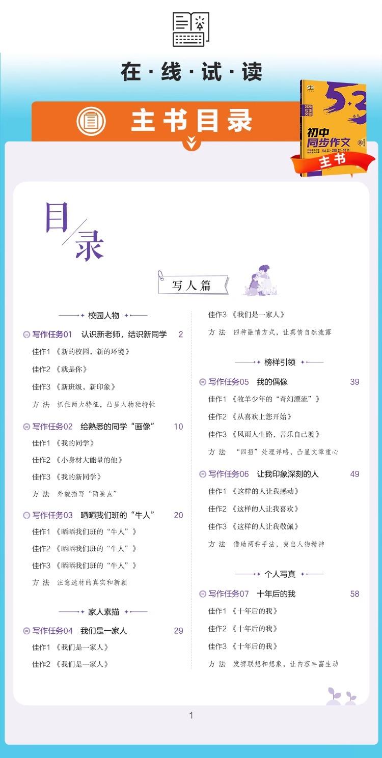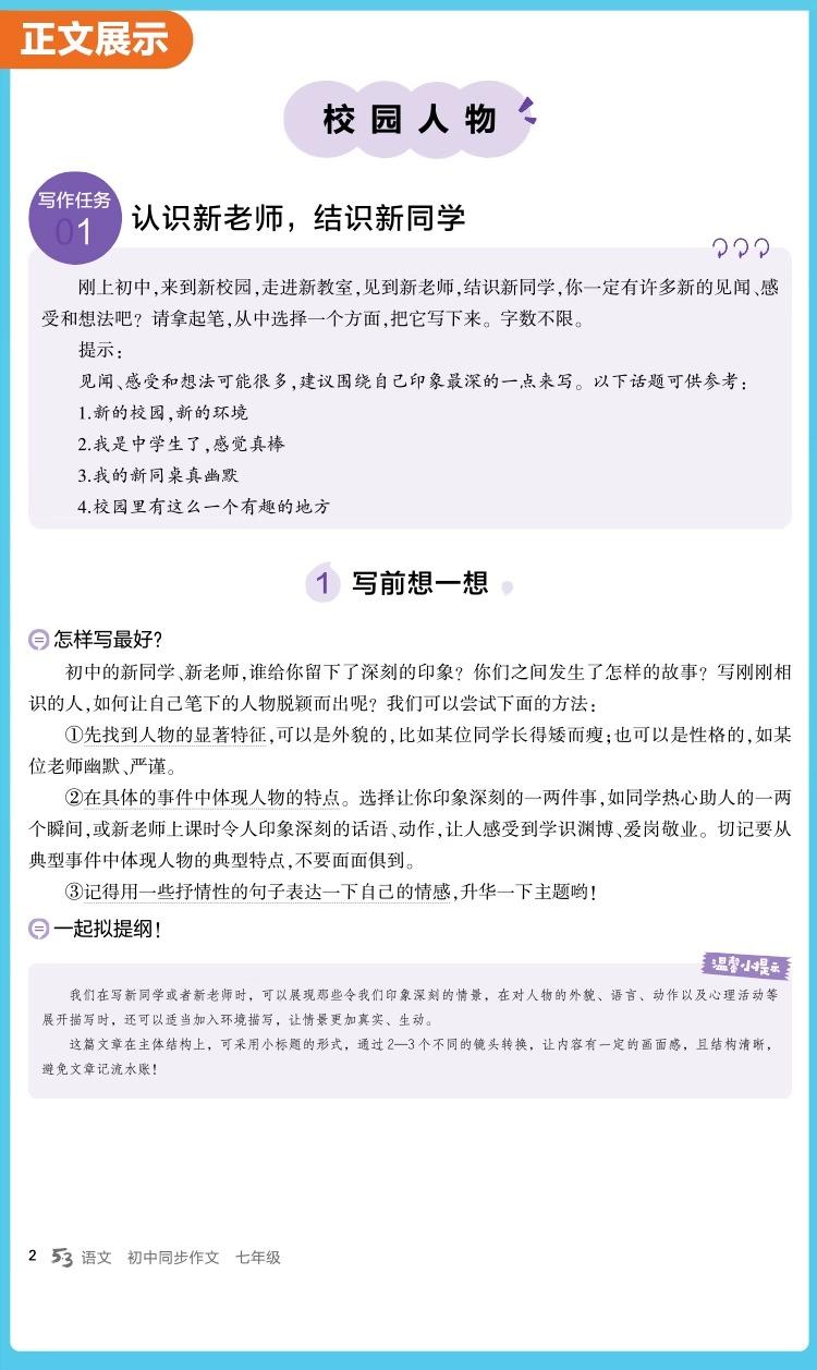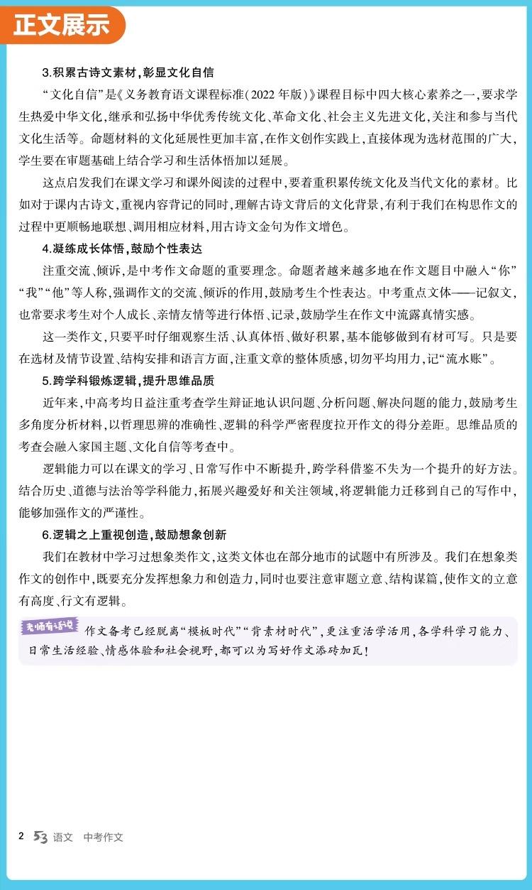 2026新版53初中同步作文七年级中考语文专项写作技巧满分作文素材