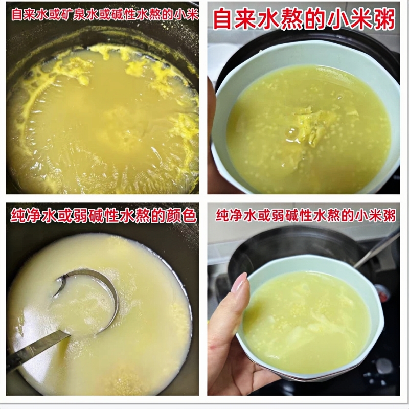 (上图)不同的水熬制出的小米有很大区别。