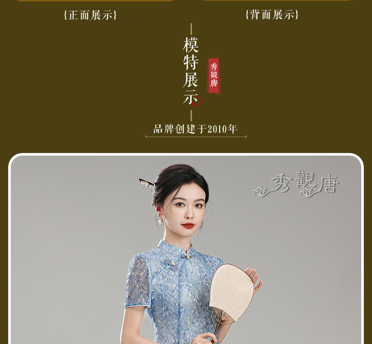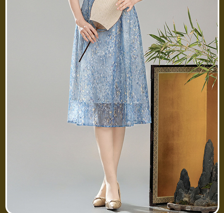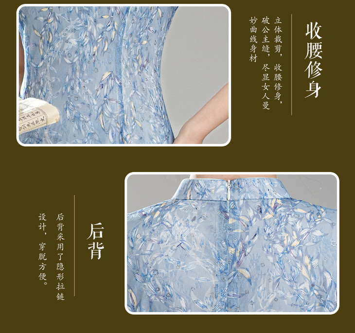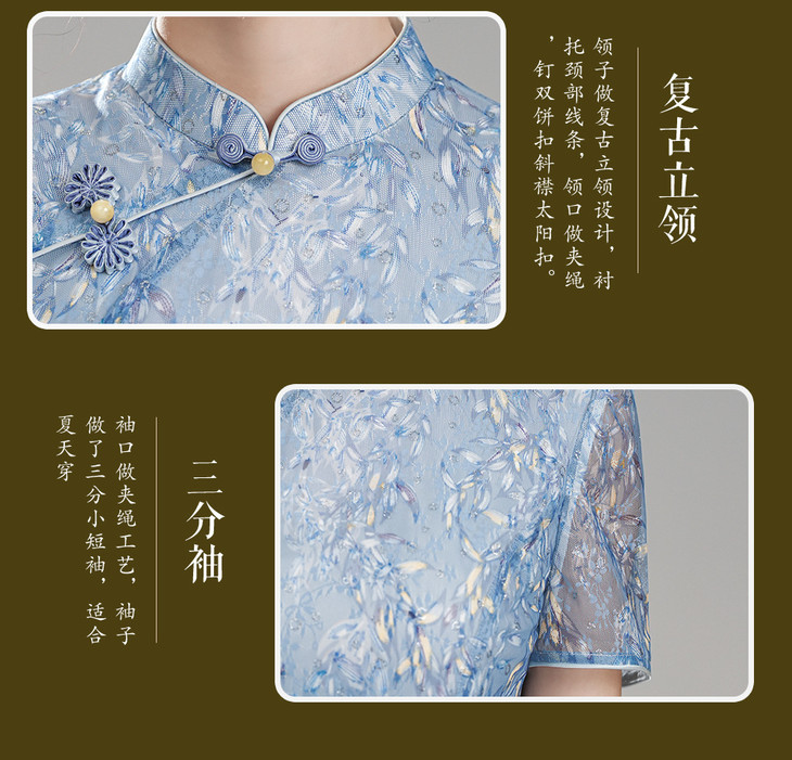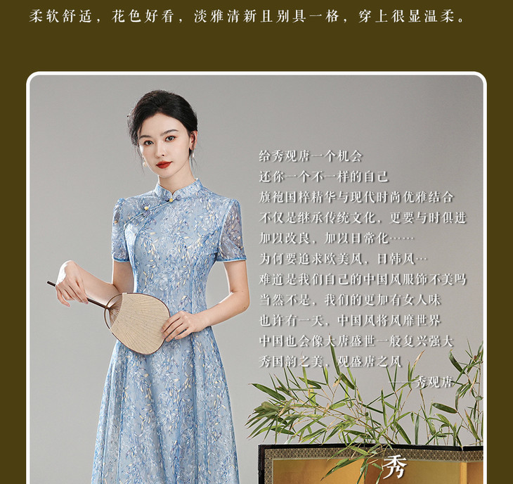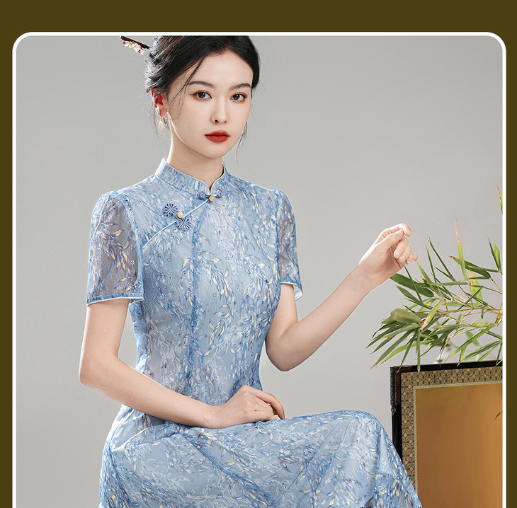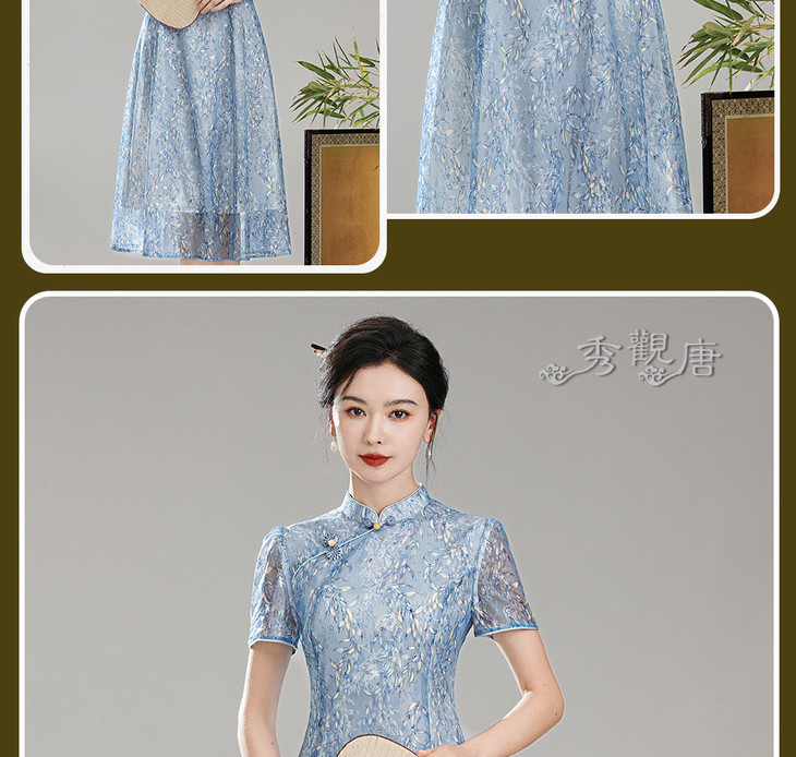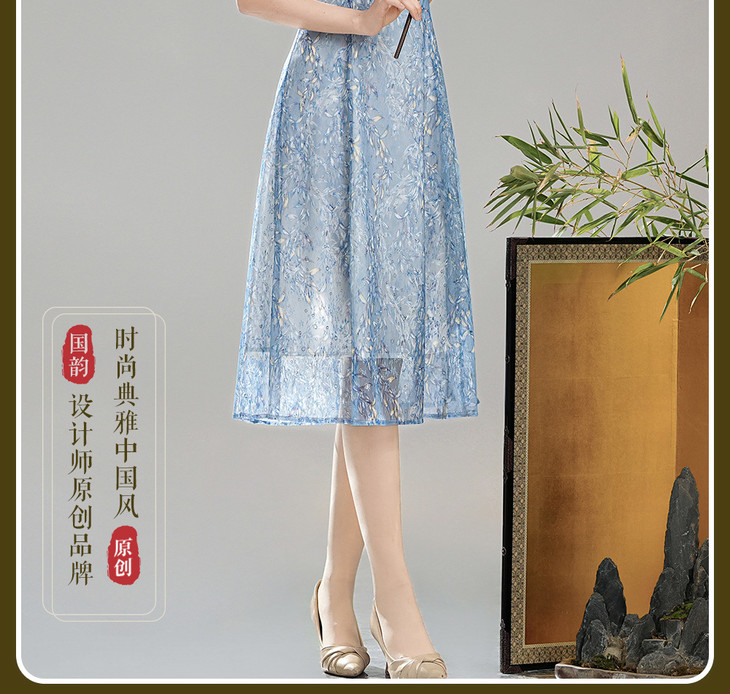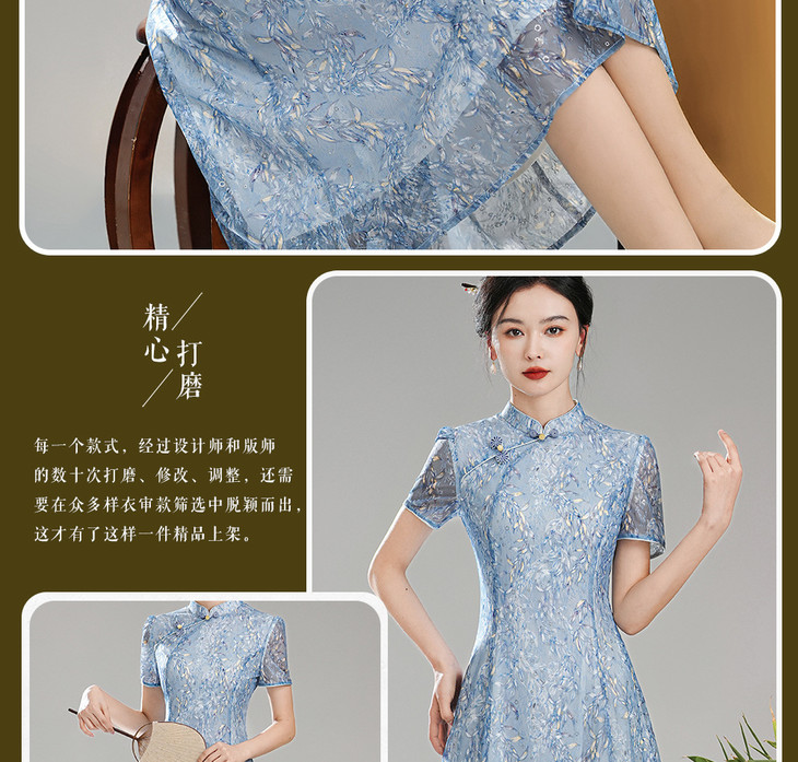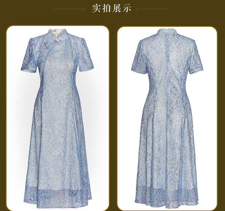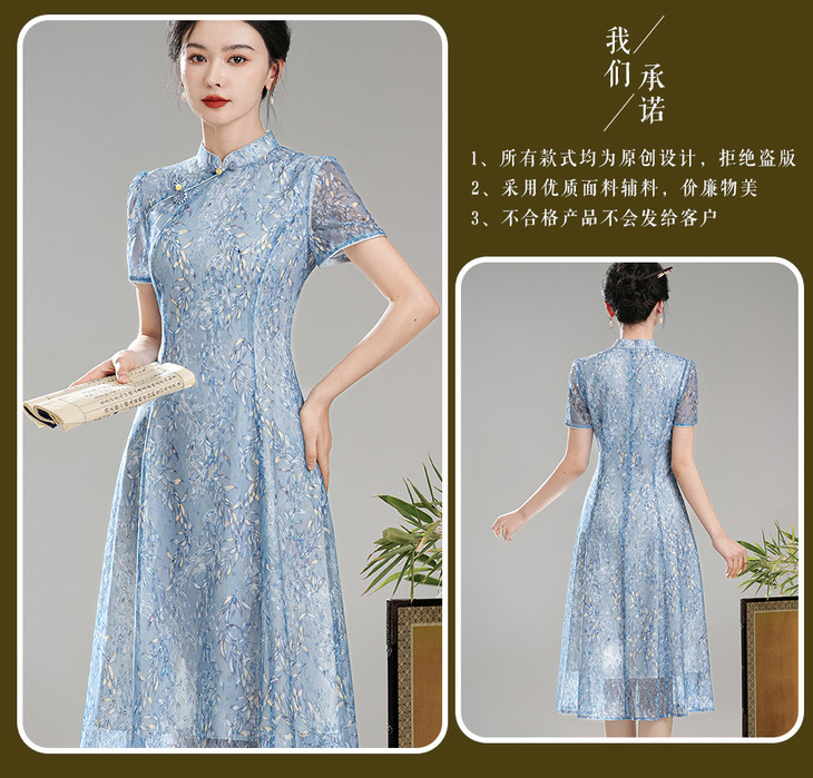 XGTQ24025清蓝2024夏装新款改良新中式国风女装日常修身旗袍连衣裙