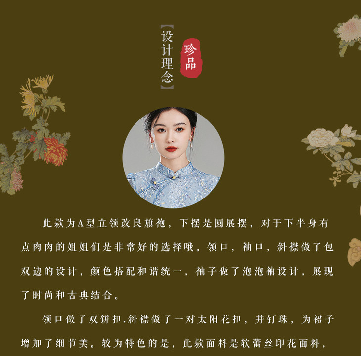 - 旗袍,属于上海的别样文化和魅力。女人的风韵,谁不曾梦见过在黄昏的小巷里,哒哒的高跟鞋声,摇摆的女子的背影,渐远渐远......
