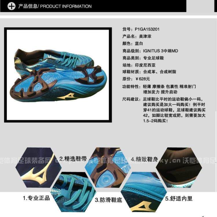 沃恺:美津浓MIZUNO IGNITUS 无回旋3代MD男子人草中端训练足球鞋