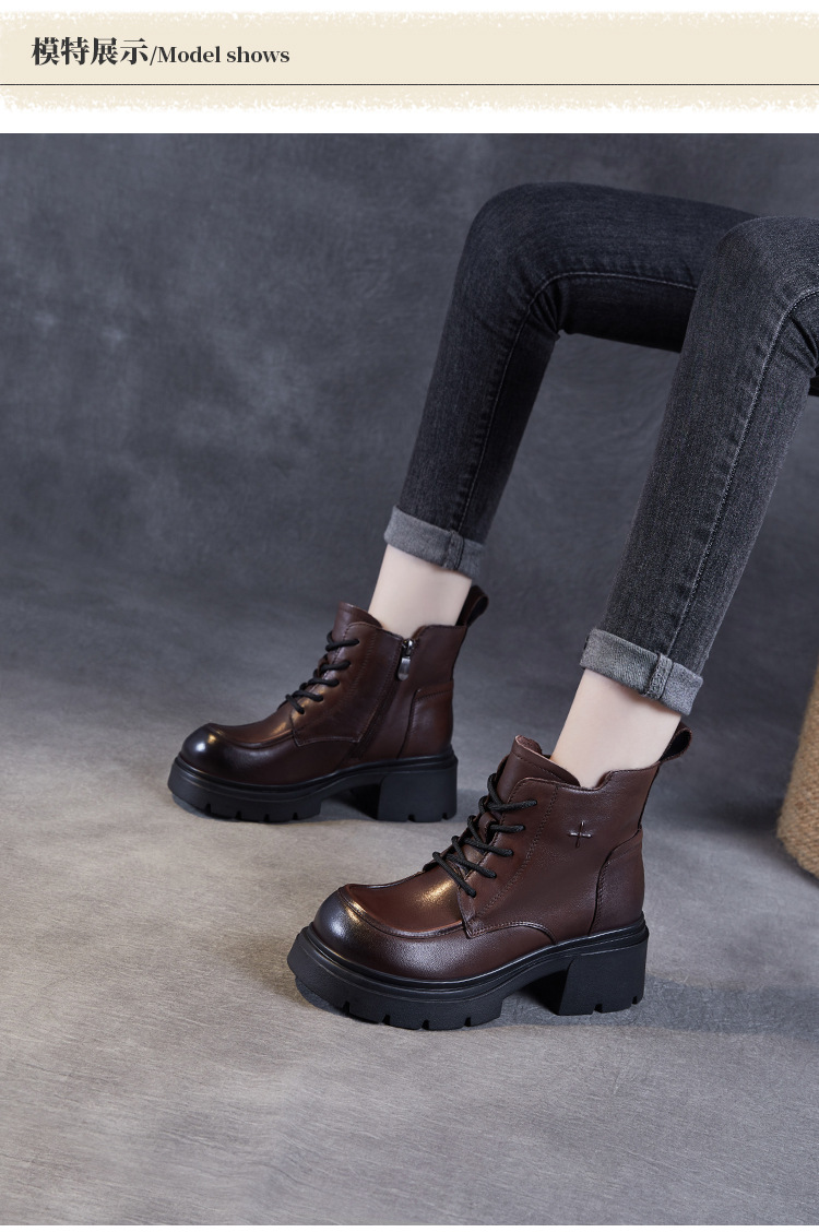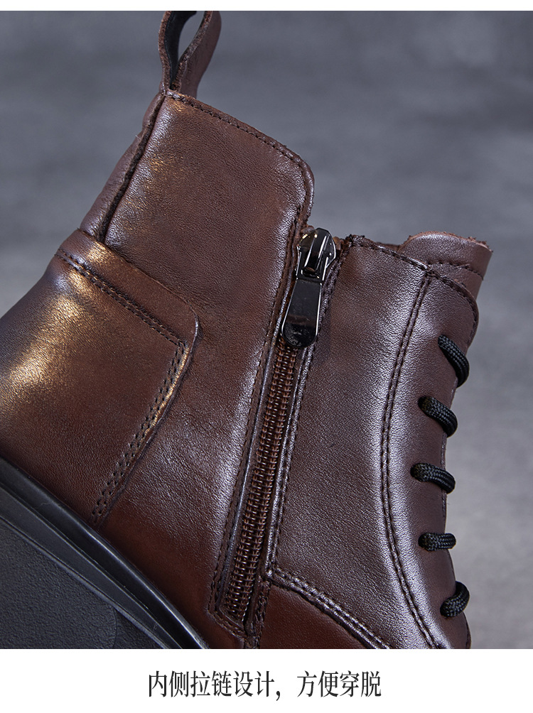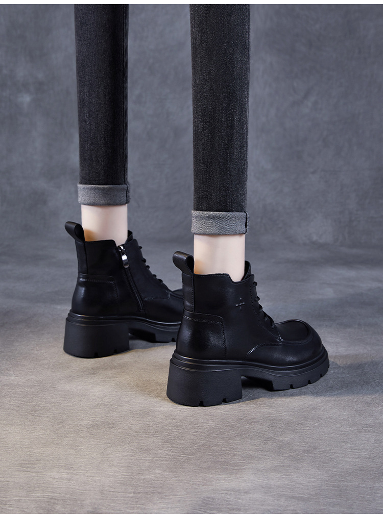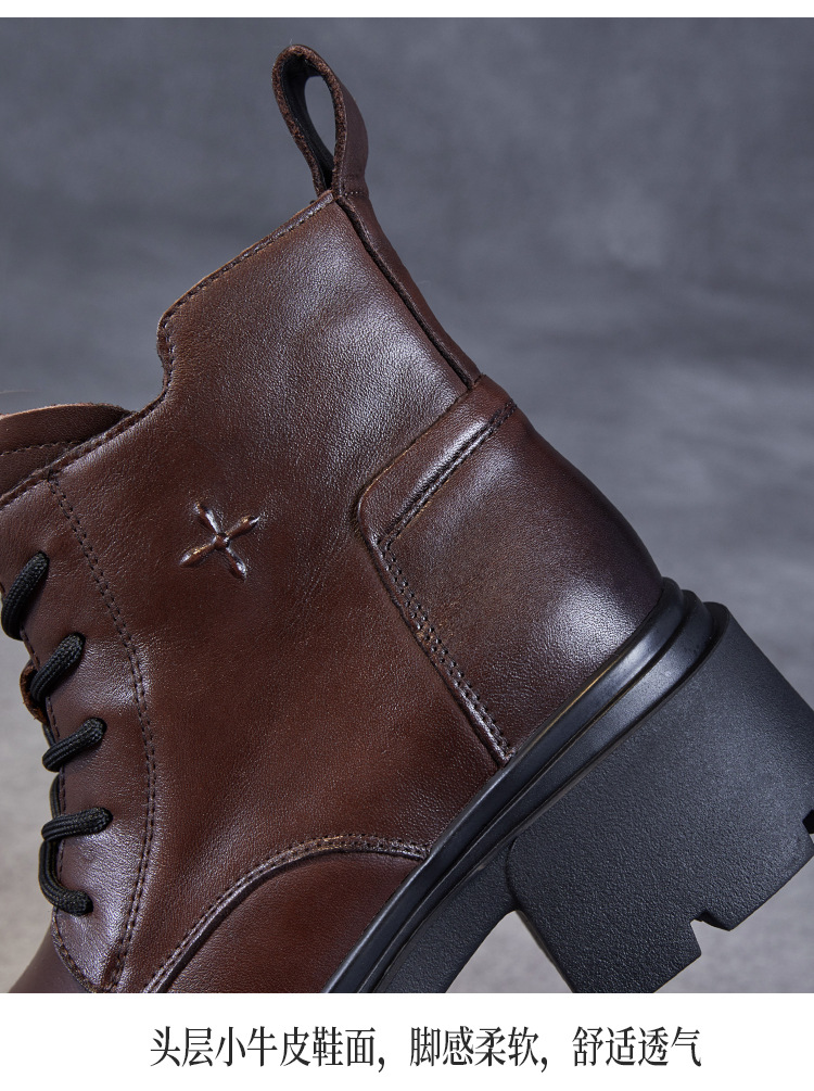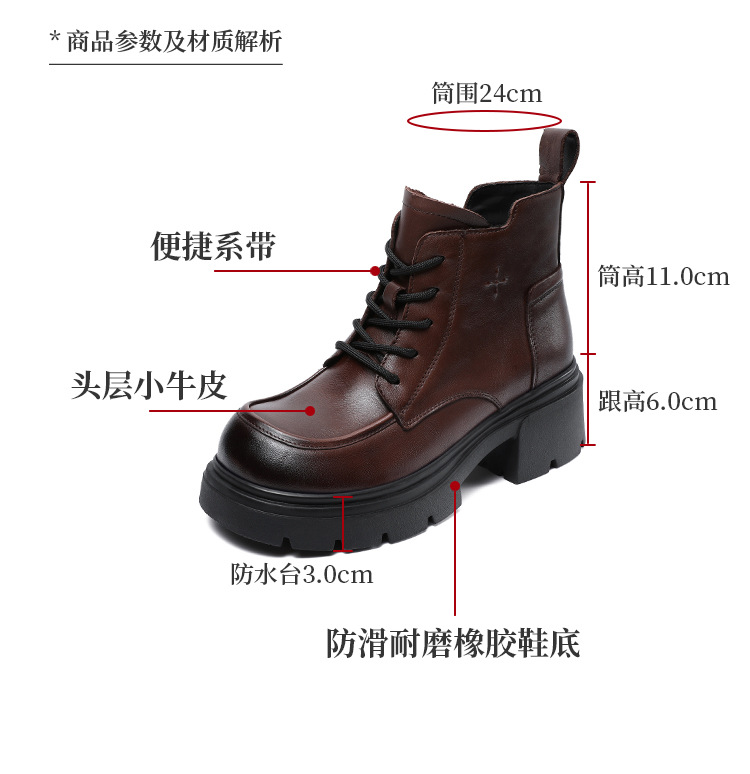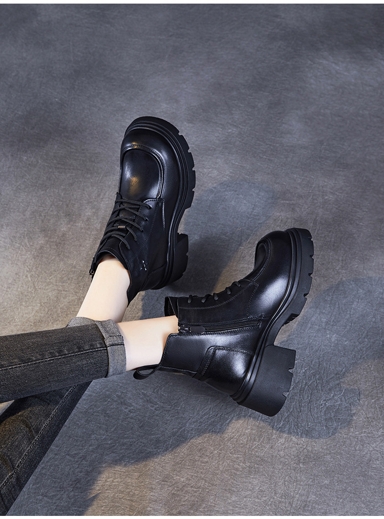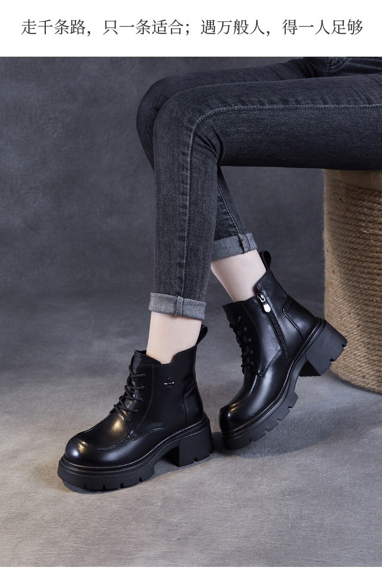 舒适真皮厚底马丁靴,松糕底头层小牛皮短靴粗跟靴子ZM258085