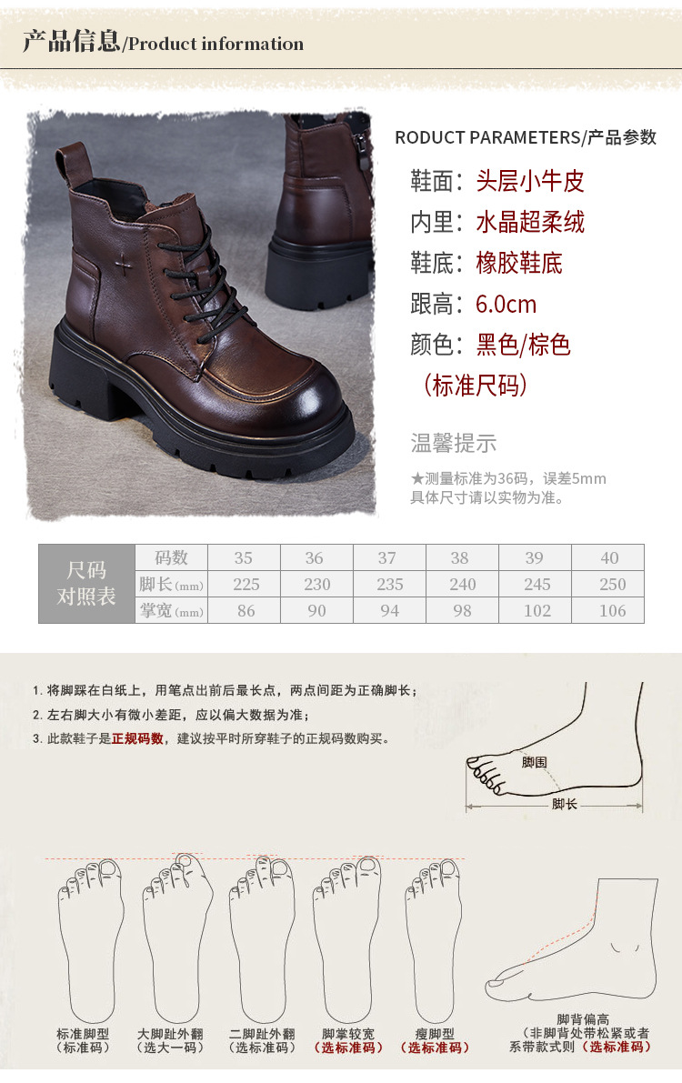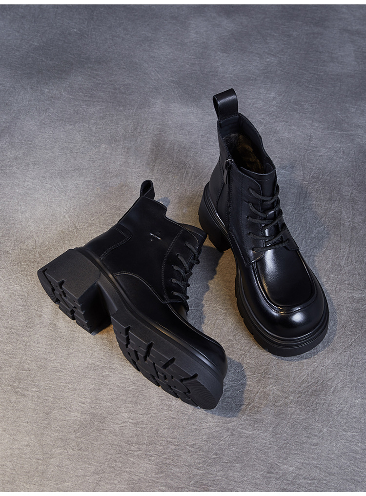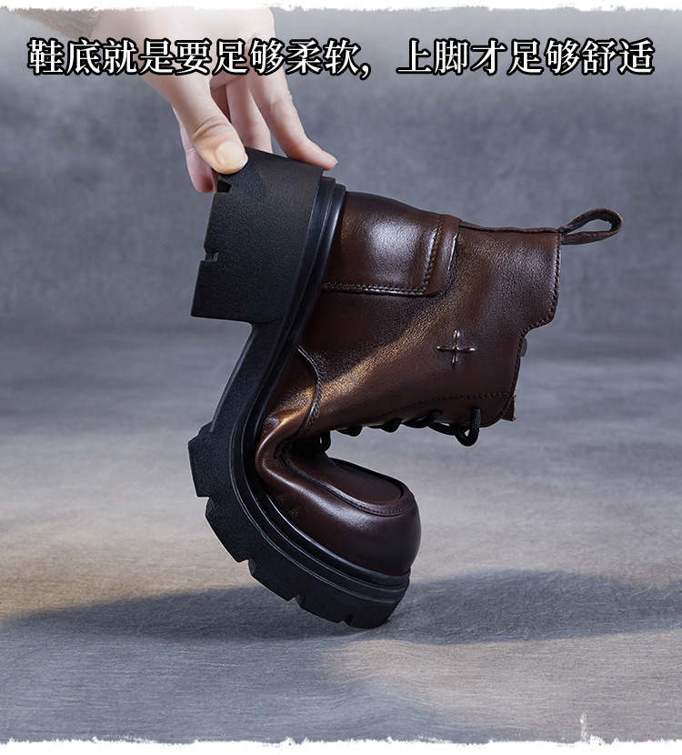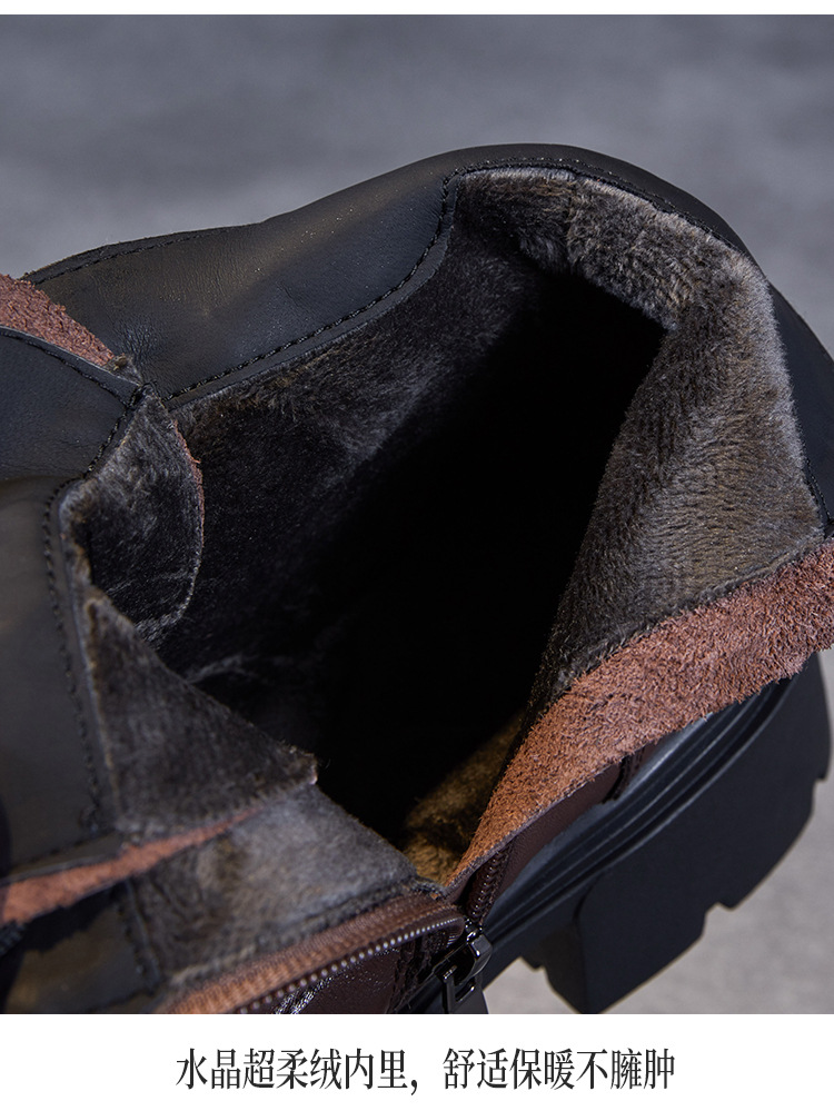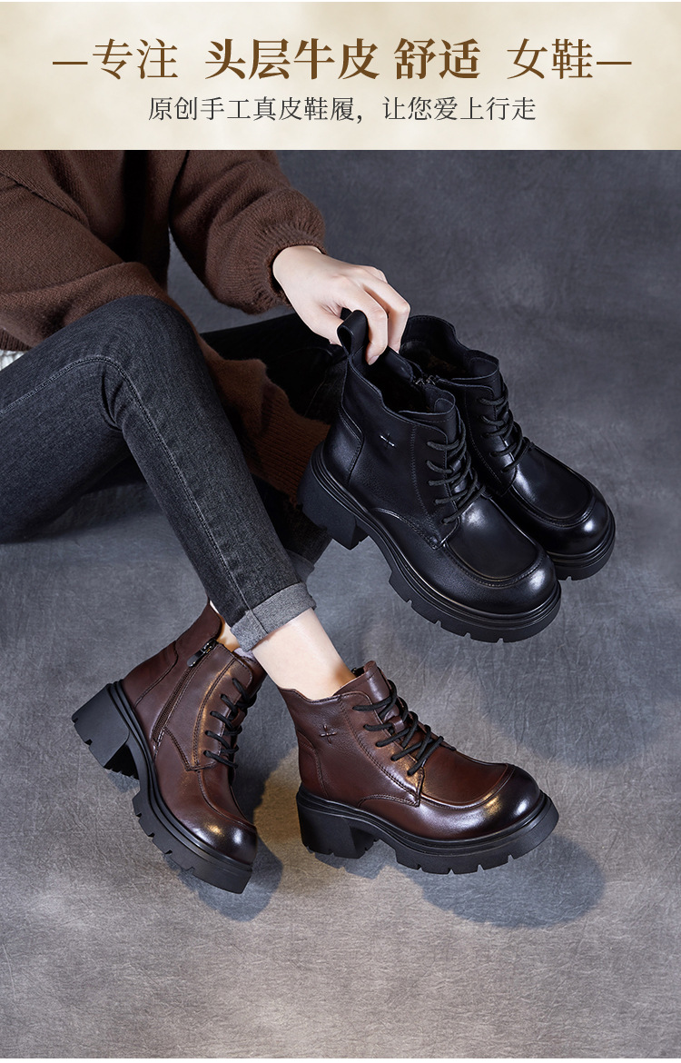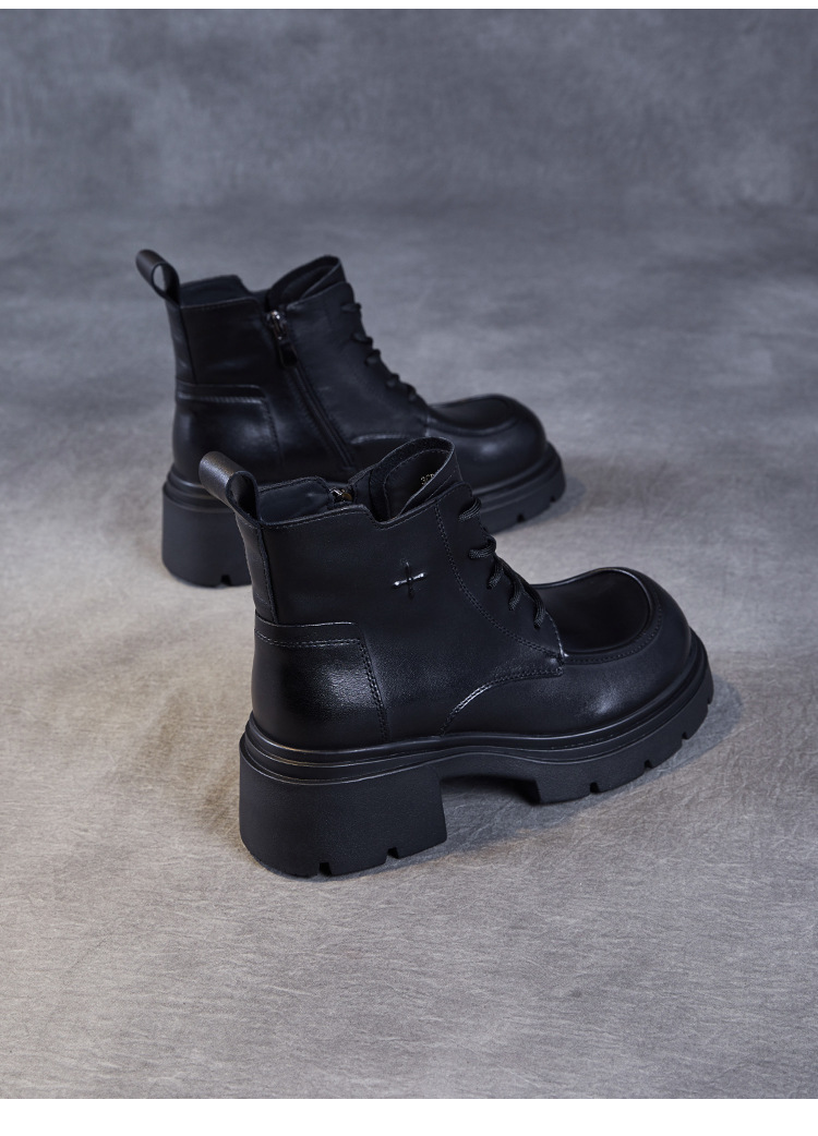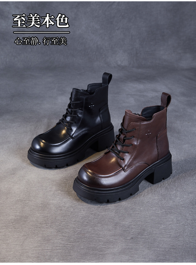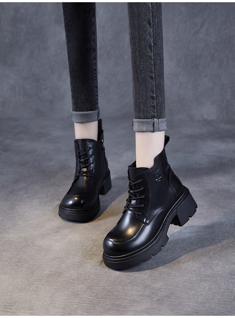 舒适真皮厚底马丁靴,松糕底头层小牛皮短靴粗跟靴子ZM258085