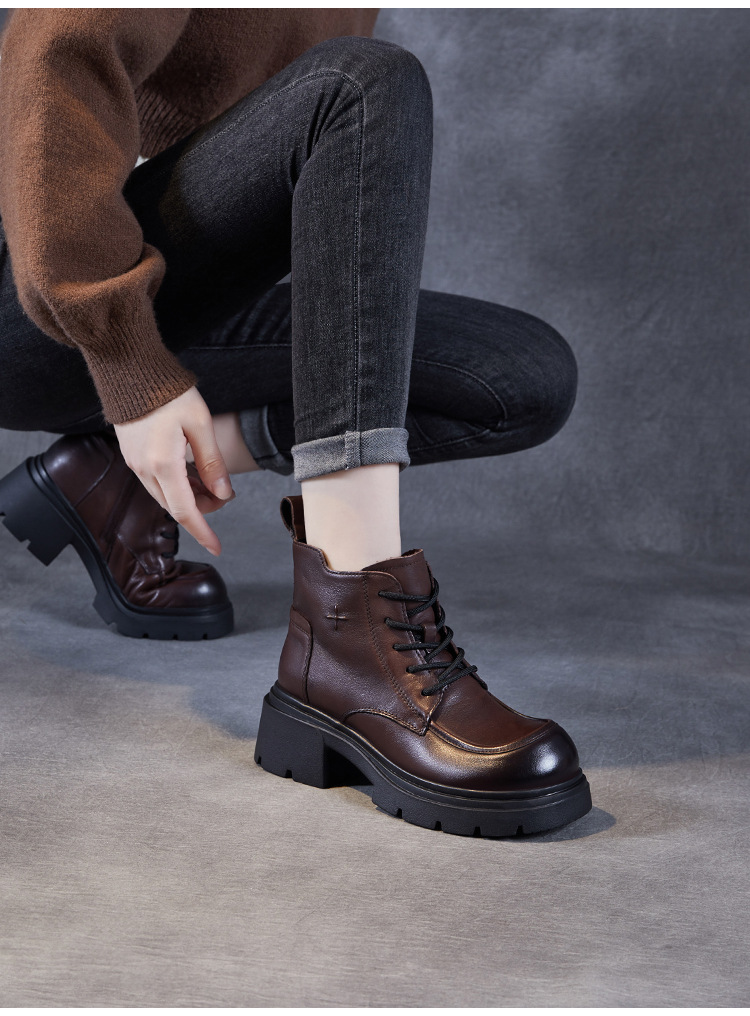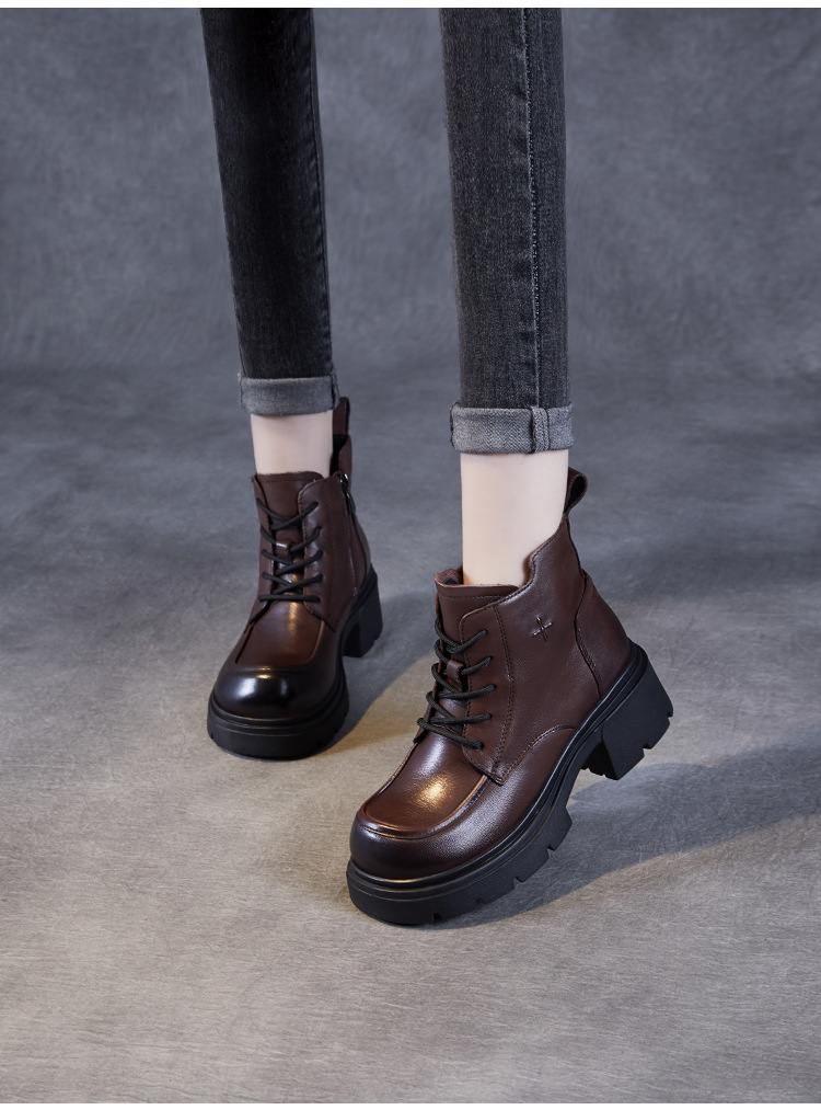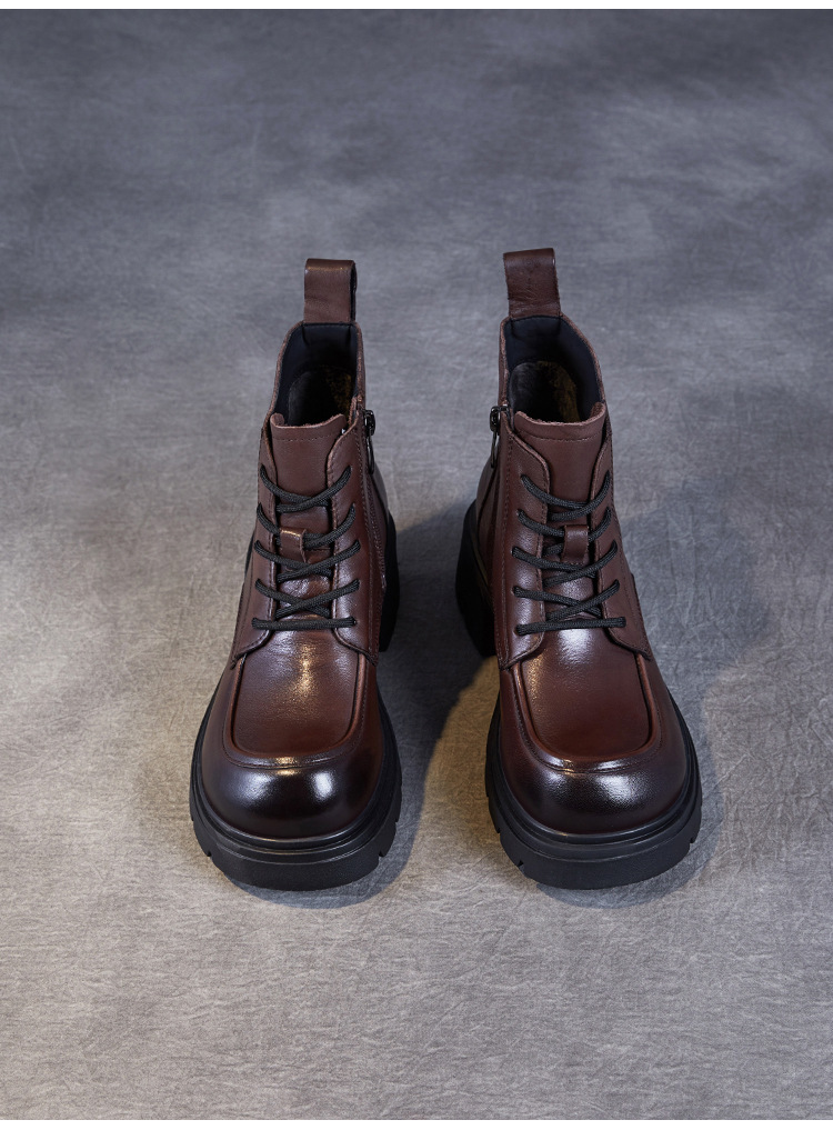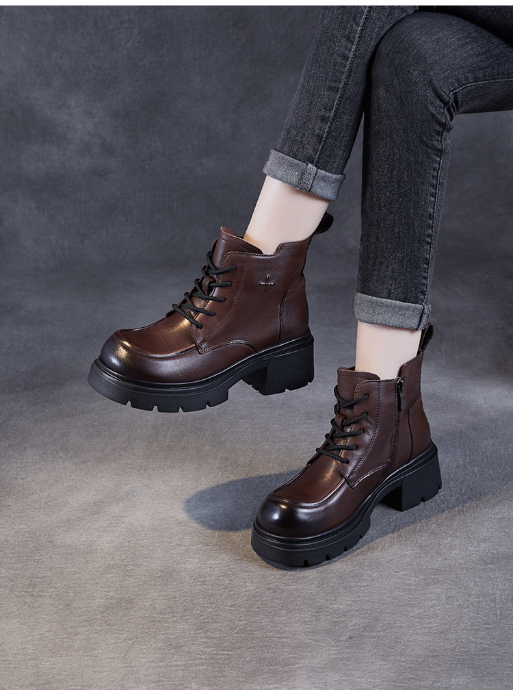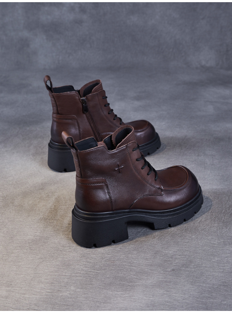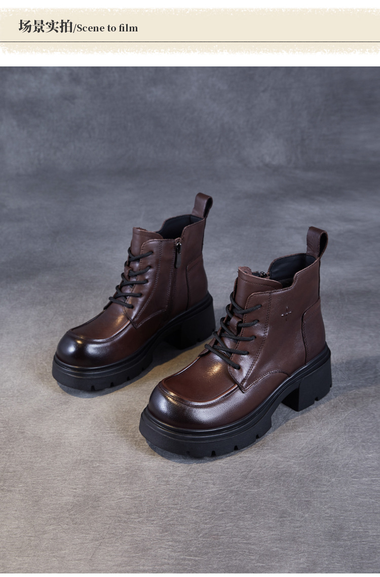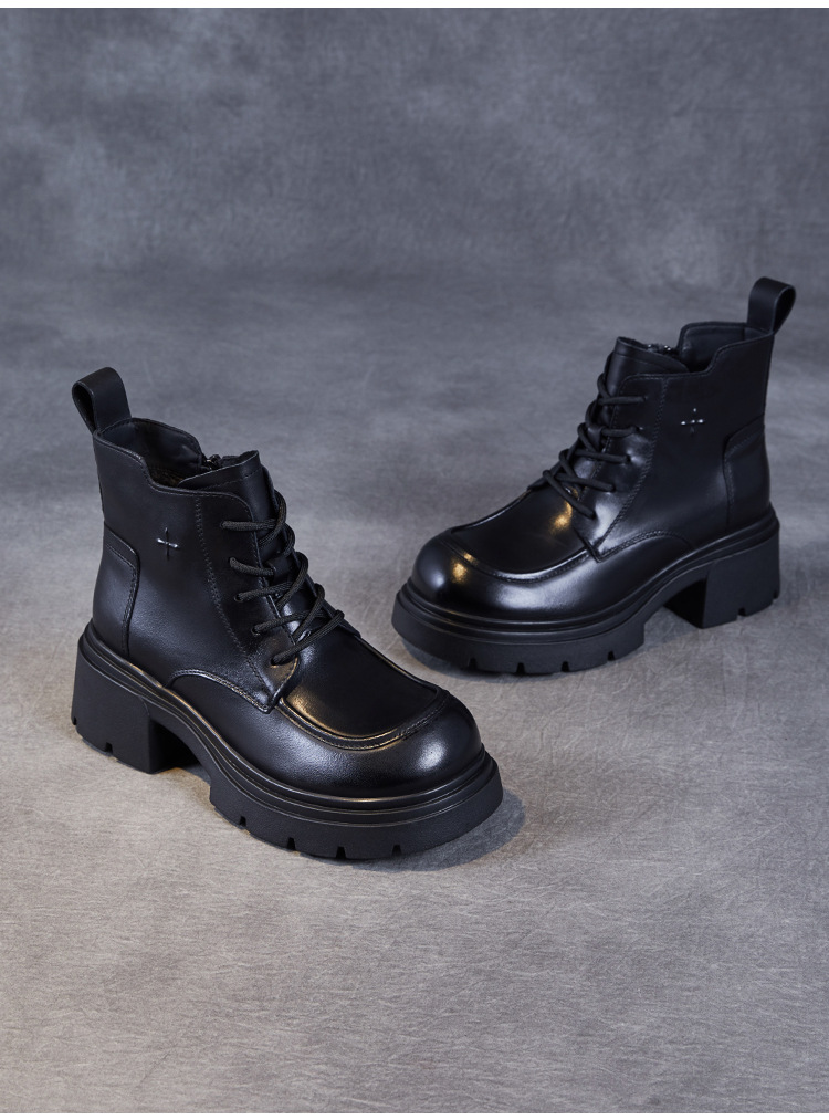 舒适真皮厚底马丁靴,松糕底头层小牛皮短靴粗跟靴子ZM258085