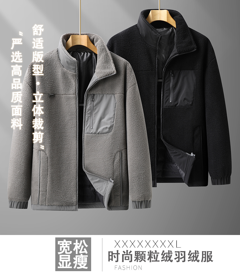 【特大码】【新款DPX】大依优型大码潮款颗粒绒立领羽绒服鸭绒外套休闲胖子大码男休闲宽松加肥加大上衣