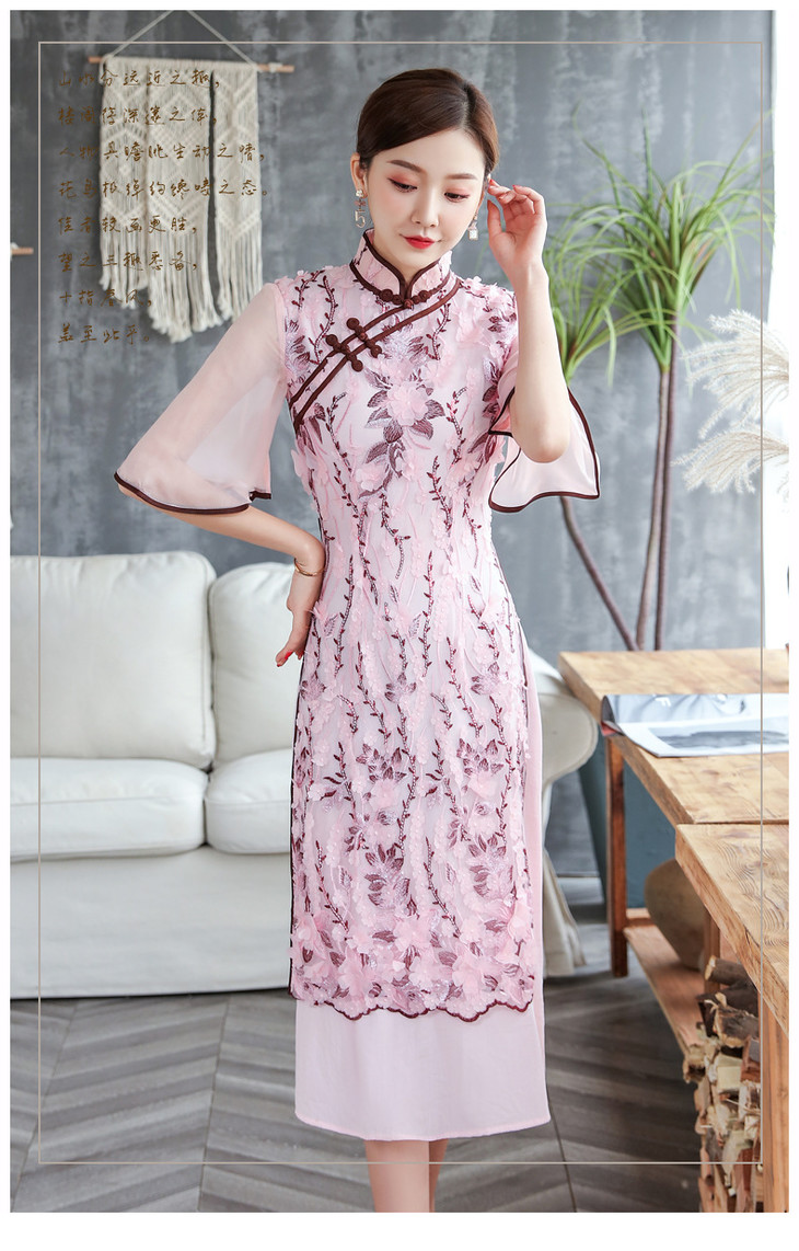 复古立领,葫芦扣立体花朵亮片绣花大袖改良旗袍ZSM-200417