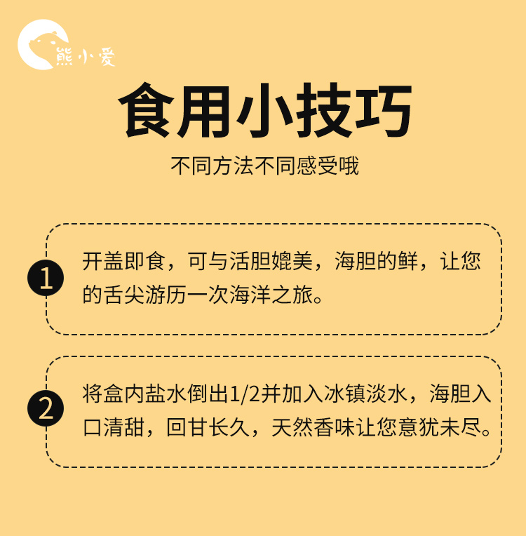 【食用方式】开盖即食(用冰镇矿泉水清洗一下海胆肉,去掉盐水咸味,即可食用)