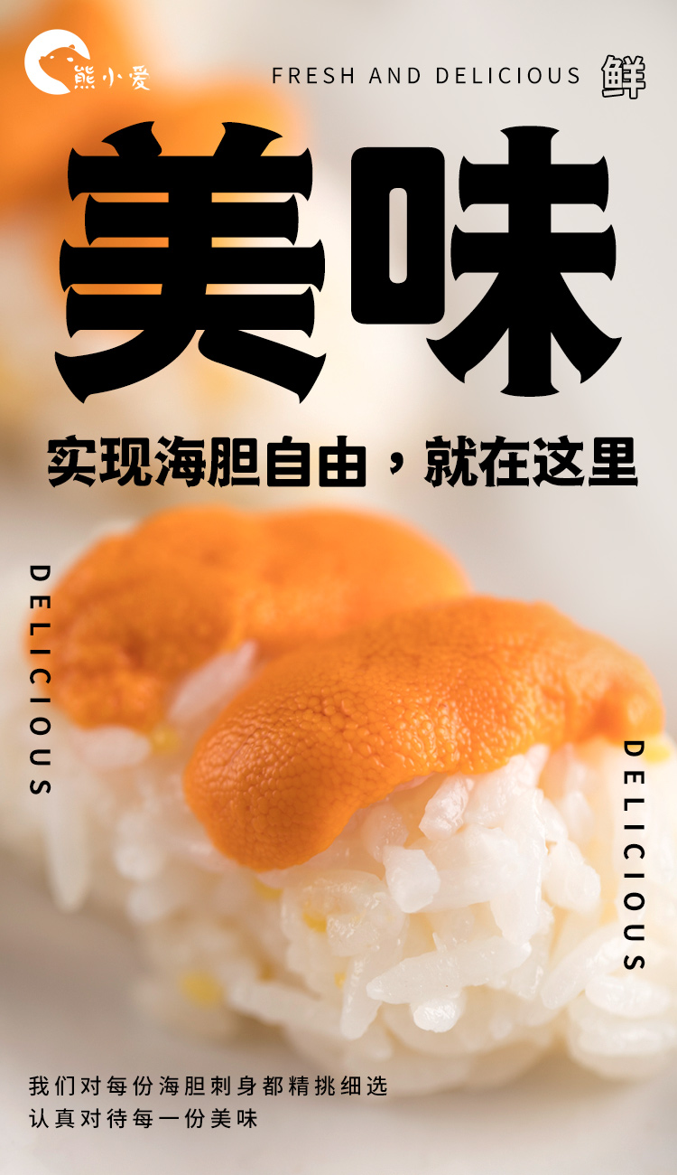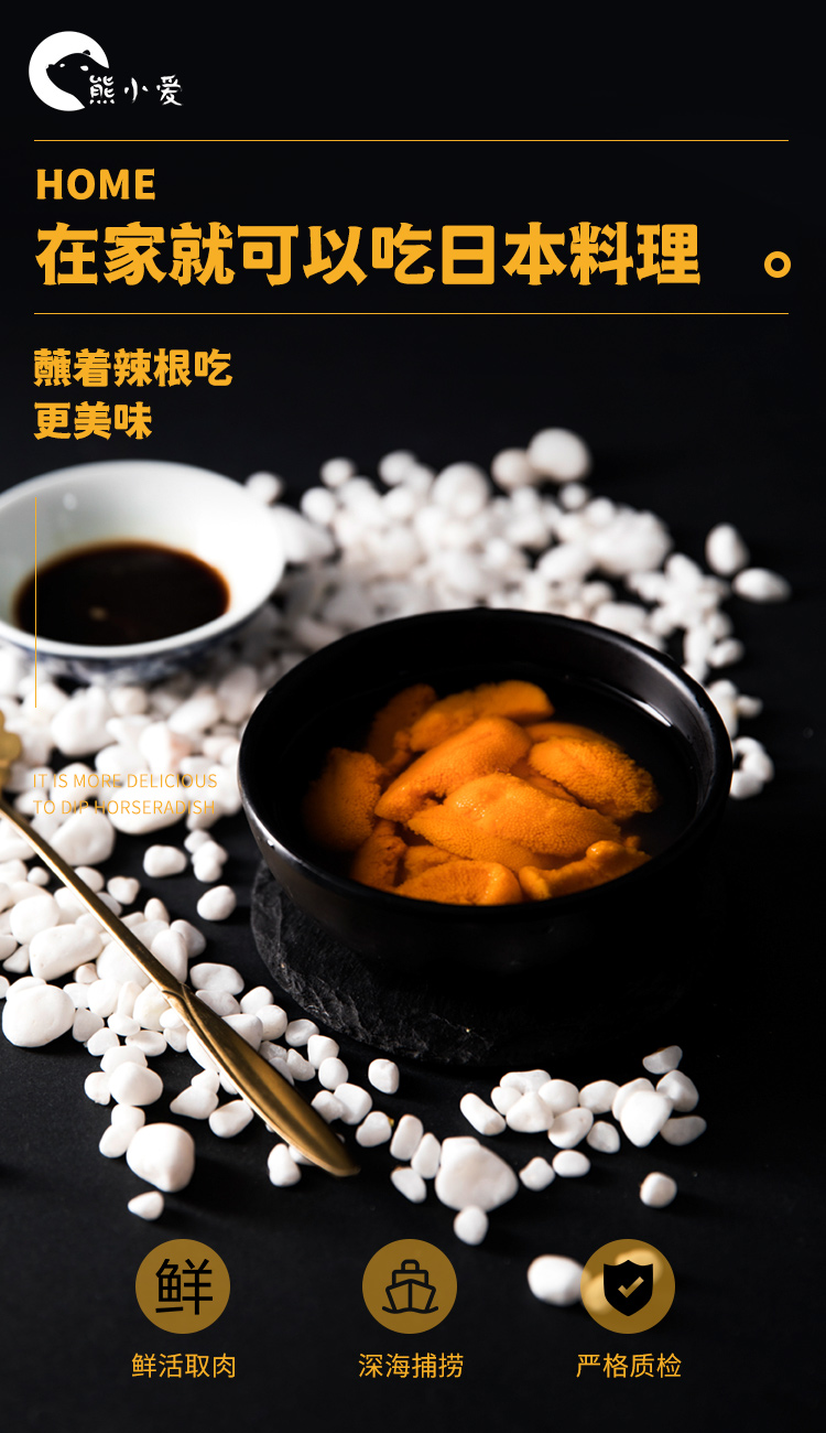 新鲜捕捞后将胆肉剔出,精挑细选大个海胆,保证了新鲜的同时肉质肥嫩。优雅是由内而外的内涵,海面到餐桌美味鲜活直达,每一份熊小爱鲜海胆肉都是一场美味盛宴。