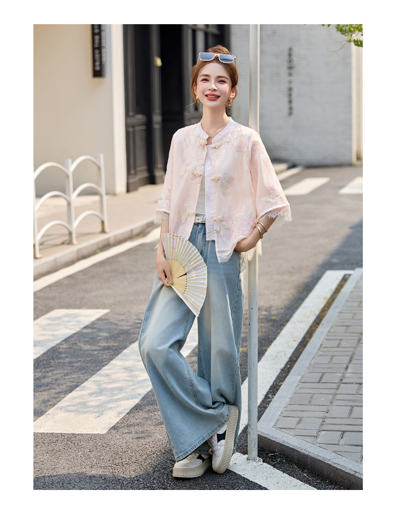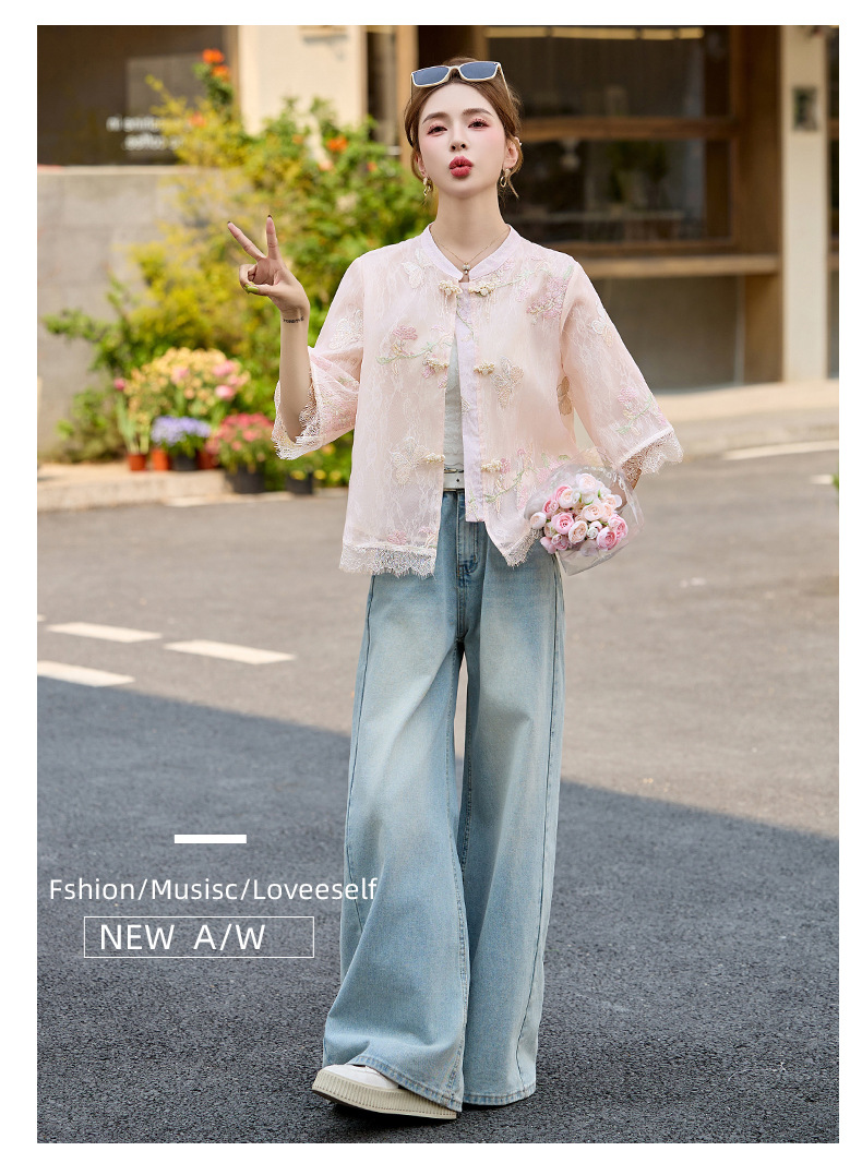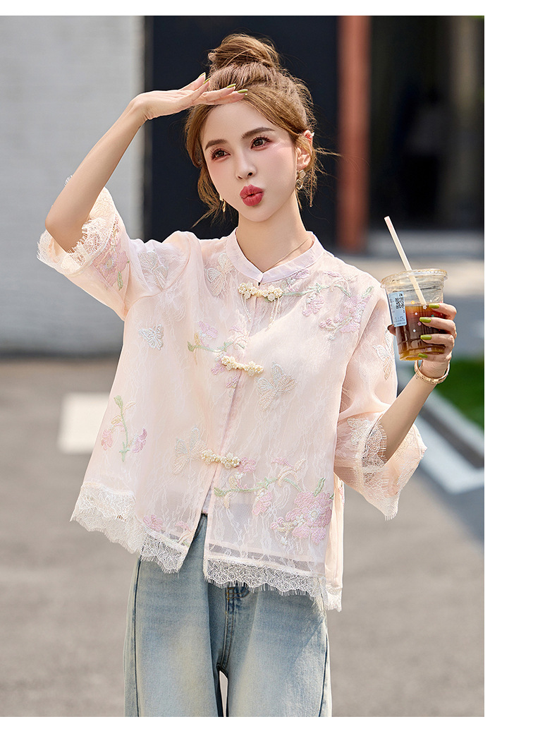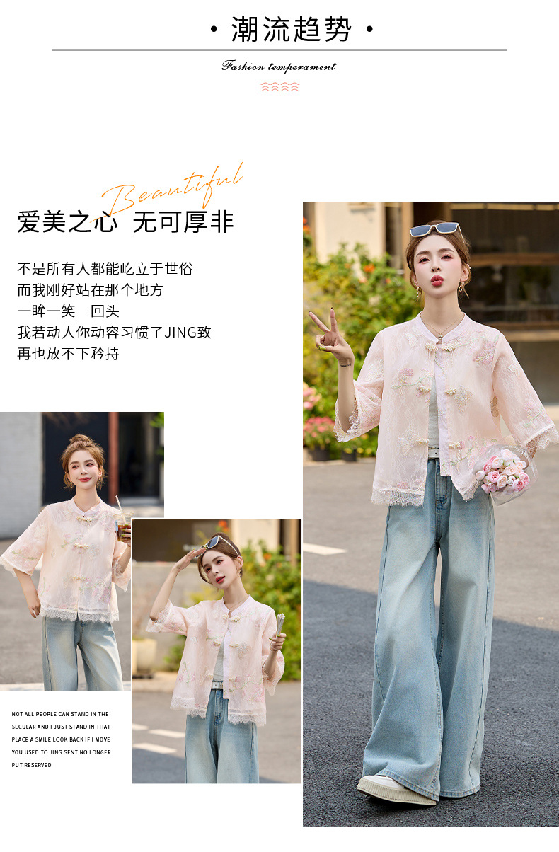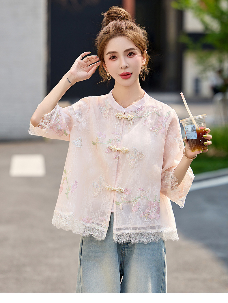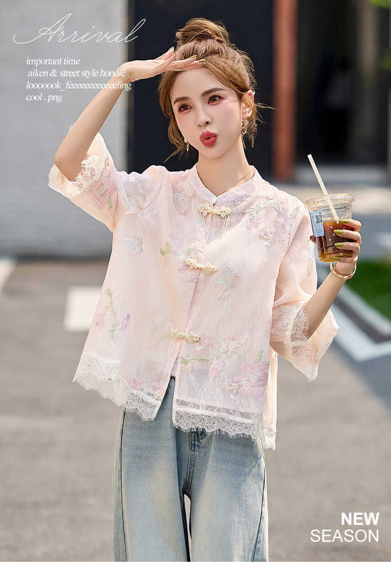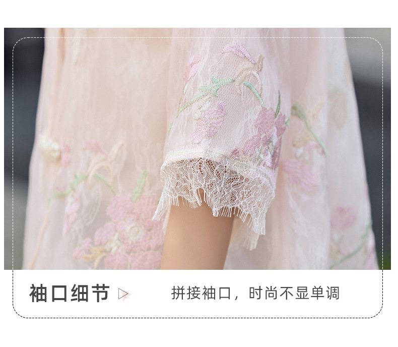 轻奢防晒上衣蕾丝拼接,重工刺绣盘扣立领中袖外套HR-MX8902