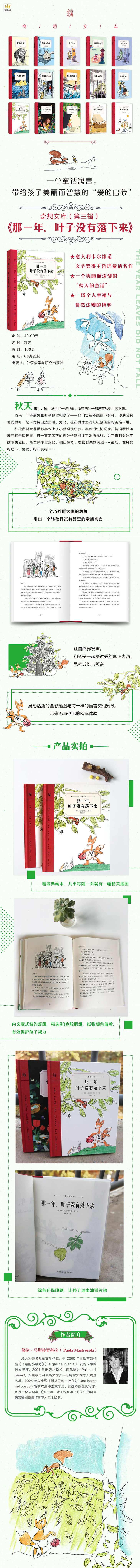 葆拉•马斯特罗科拉用一个巧妙而大胆的想象——秋天到了,叶子却没有落下来,巧妙地引出一个轻盈而富有哲思的童话寓言。