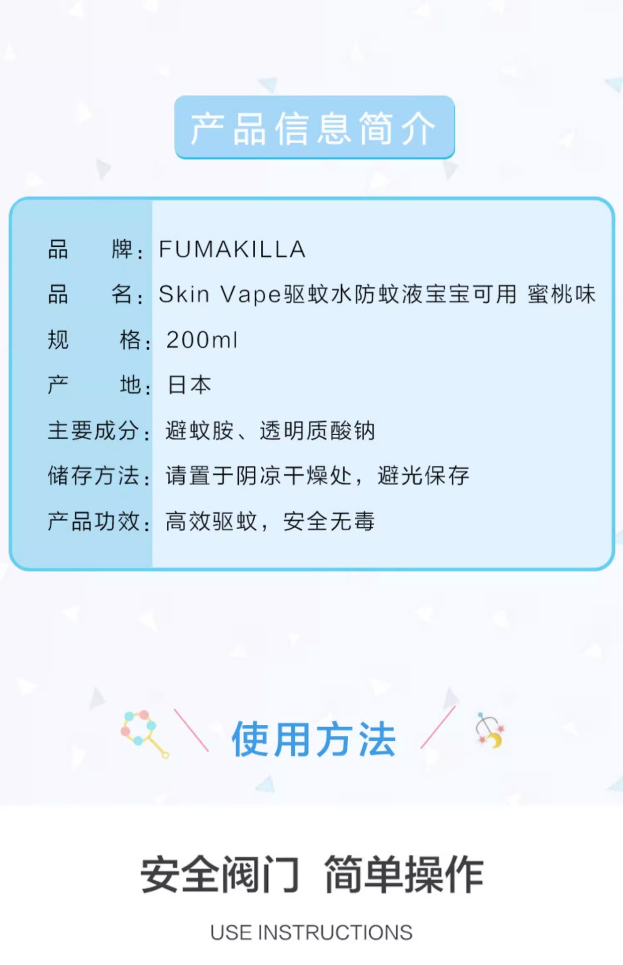 日本VAPE 未来驱蚊喷雾系列一喷驱蚊8小时 滋润肌肤 温和无毒 驱蚊喷雾儿童宝宝驱蚊液防蚊喷雾驱蚊水 200ml/瓶