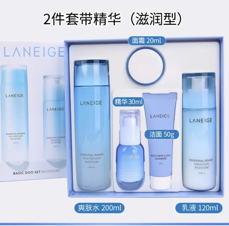 兰芝滋润套|👍 滋润型套盒💕。成分:甘油、紫苏子、桦树汁等提取物📣。功效:基础补水保湿✔️、缓解干燥✔、平衡水油✔️。清新水分感两件套🙌,让肌肤轻盈吸收,不粘腻💯。秋冬季节,怎么能少得了补水套盒❓学生党基础补水保湿,可以冲🐛!滋养:适合干性,混合偏干肤质✨ 【套盒包括】:水200ml+乳120ml+精华30ml+洗面奶50g+面霜小样20ml