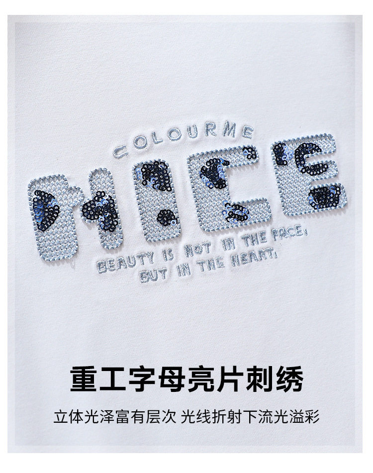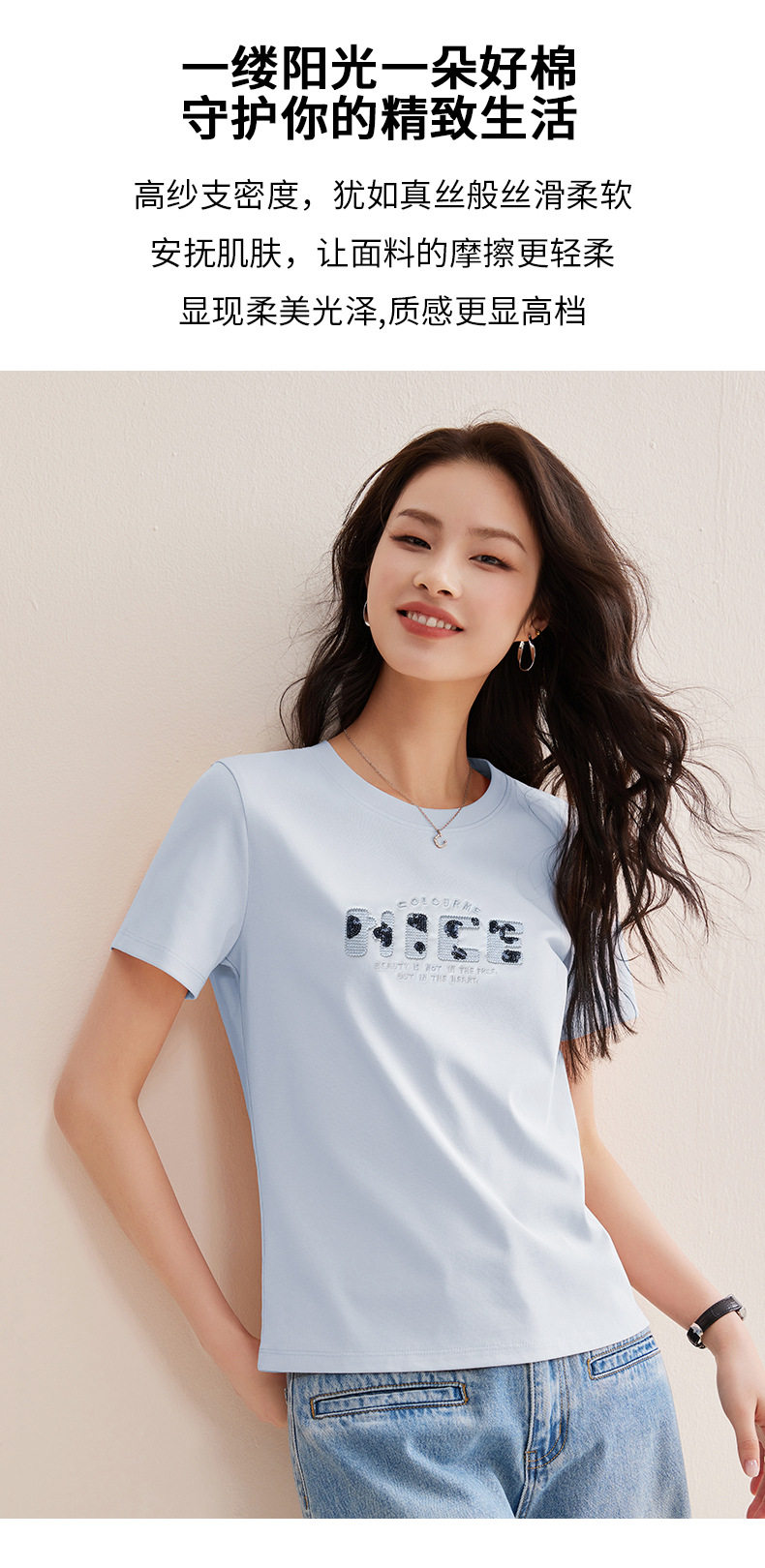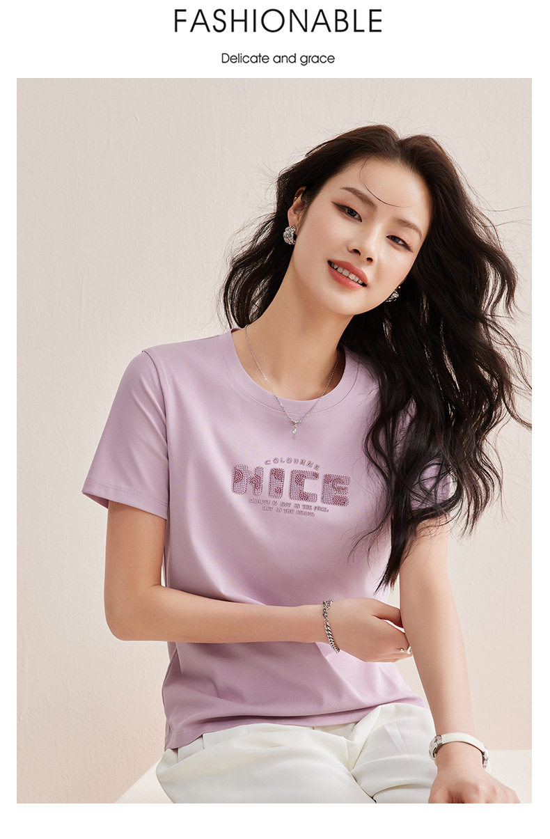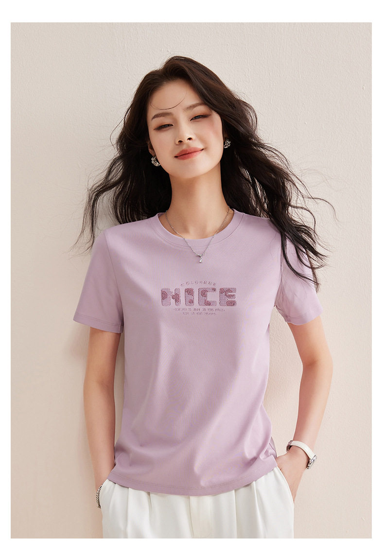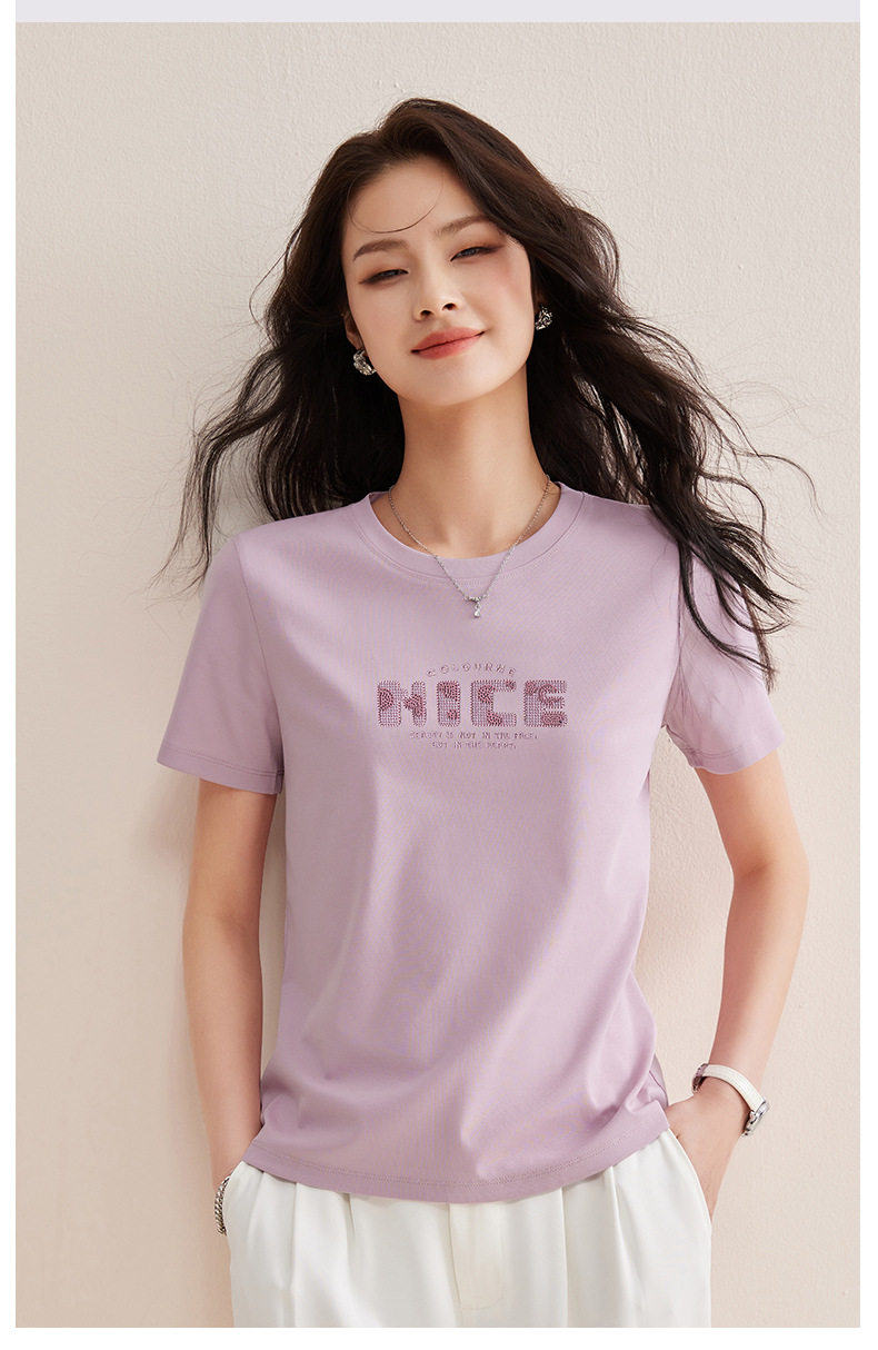 「自j」全新升级【铂金会员128/天猫169/差价41】(13155)洛诗琳气质丝光棉短袖上衣女2026夏季字母刺绣宽松显瘦T恤
