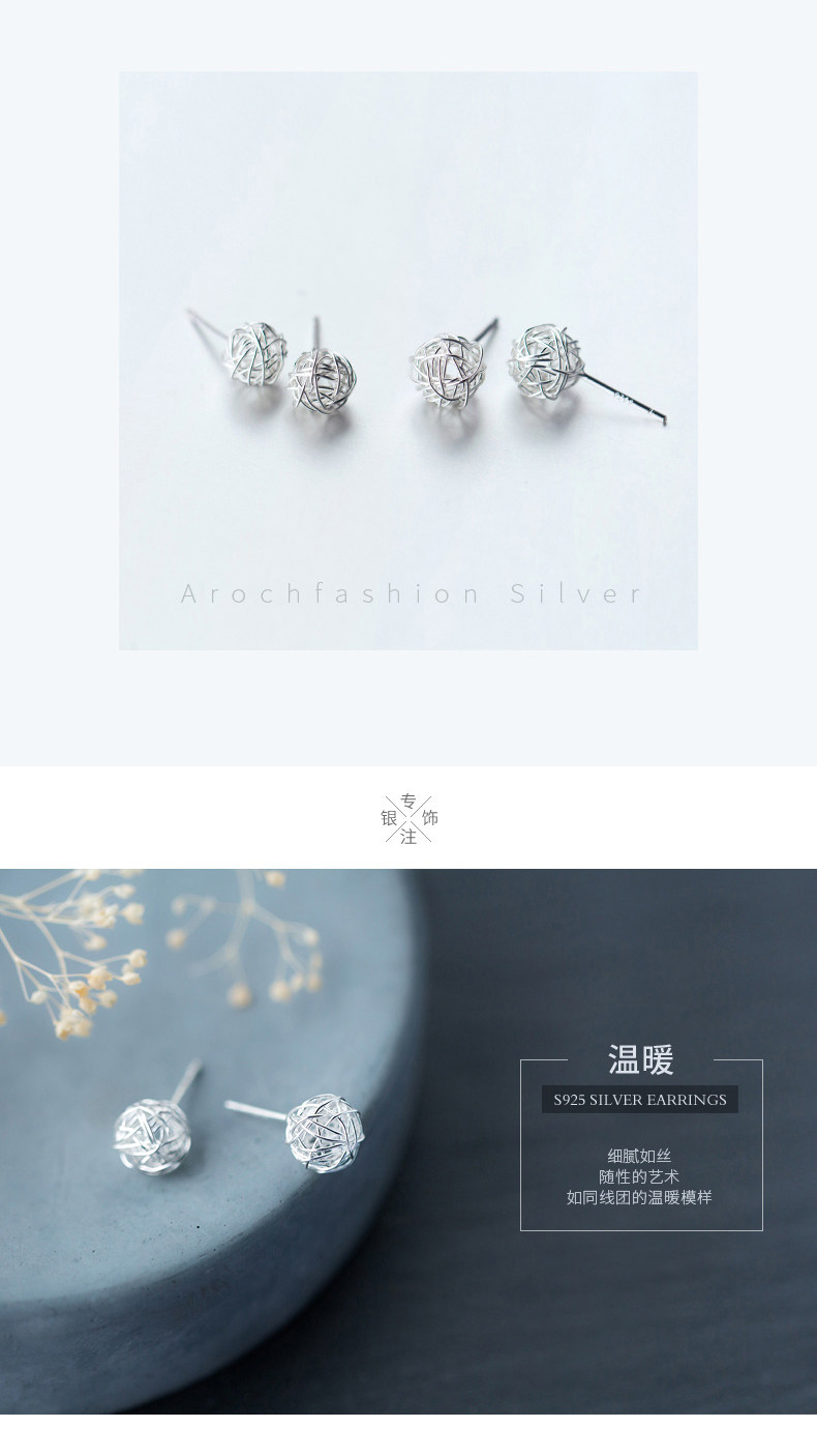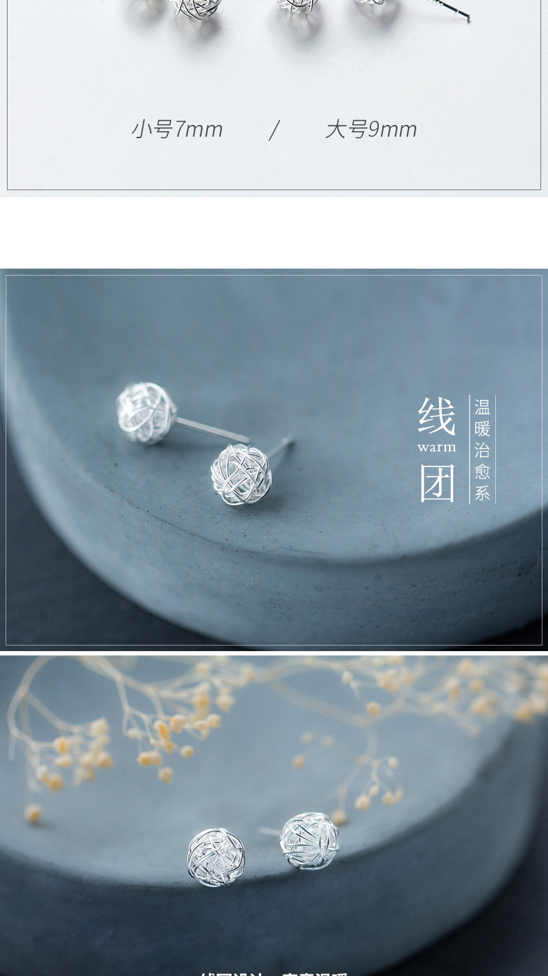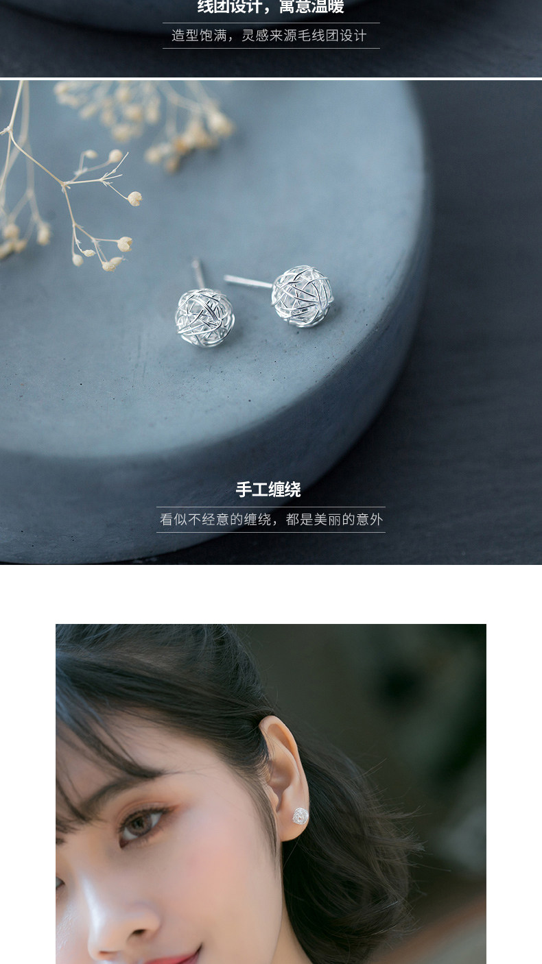 ALQ-E4035新款绕丝个性毛线球S925银耳钉TZW