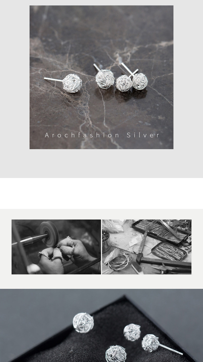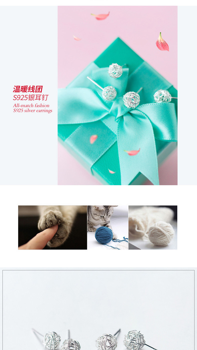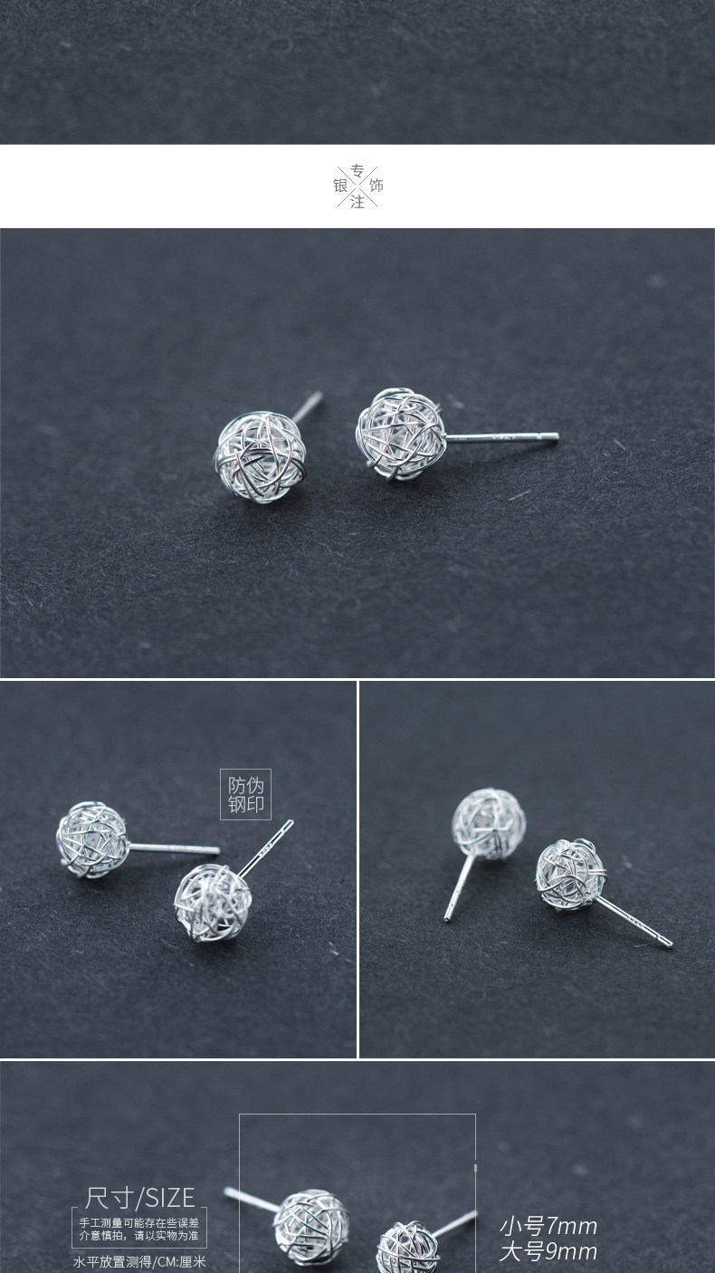 ALQ-E4035新款绕丝个性毛线球S925银耳钉TZW