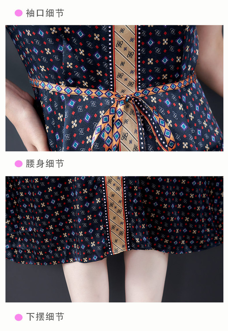 AHM-ylsp2810夏季新款时尚气质优雅印花修身圆领中长款连衣裙
