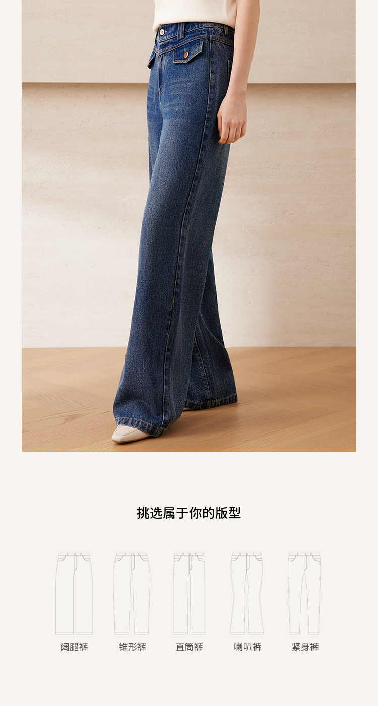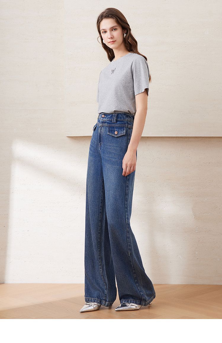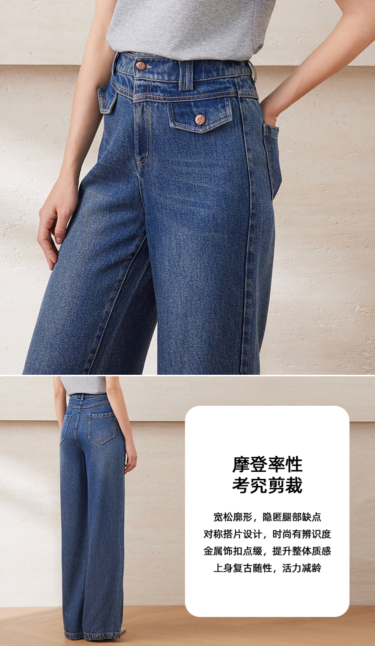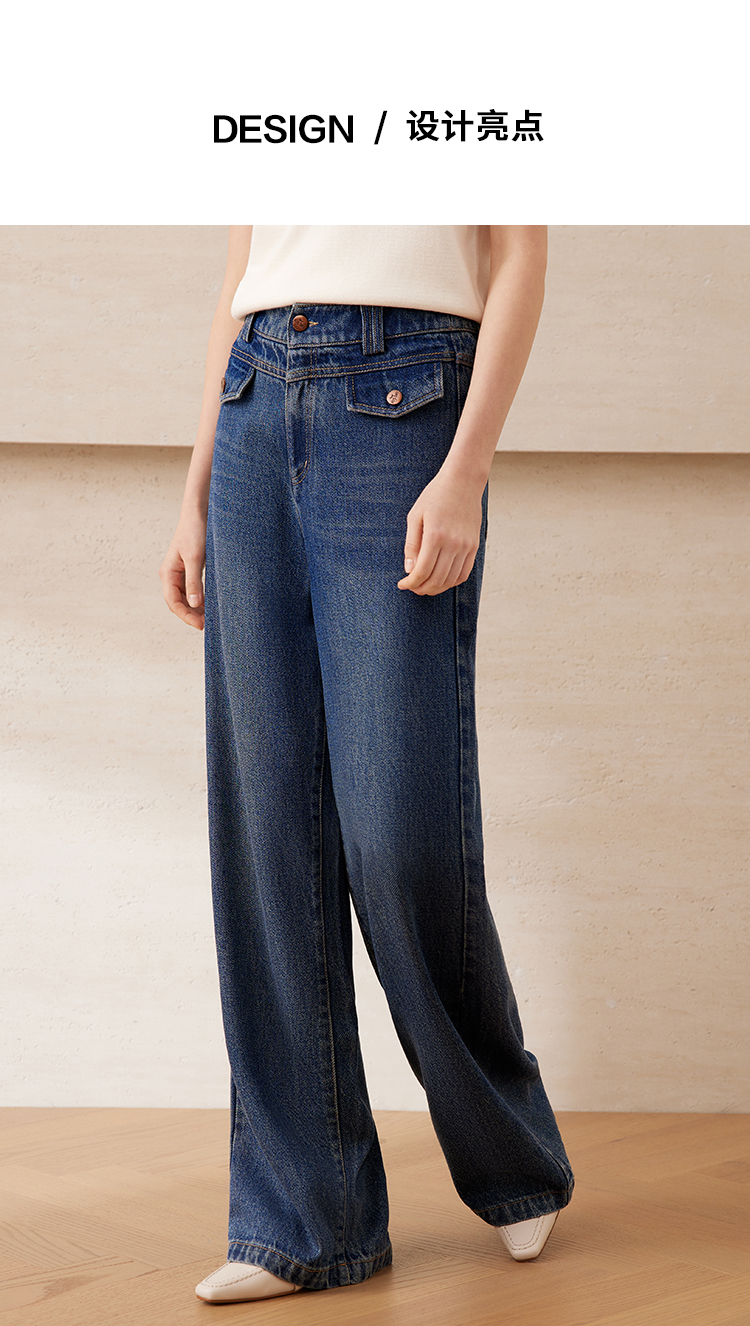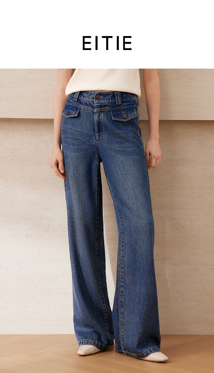 EITIE爱特爱莱赛尔直筒显瘦复古高腰阔腿牛仔裤2025年夏季新款B2505612