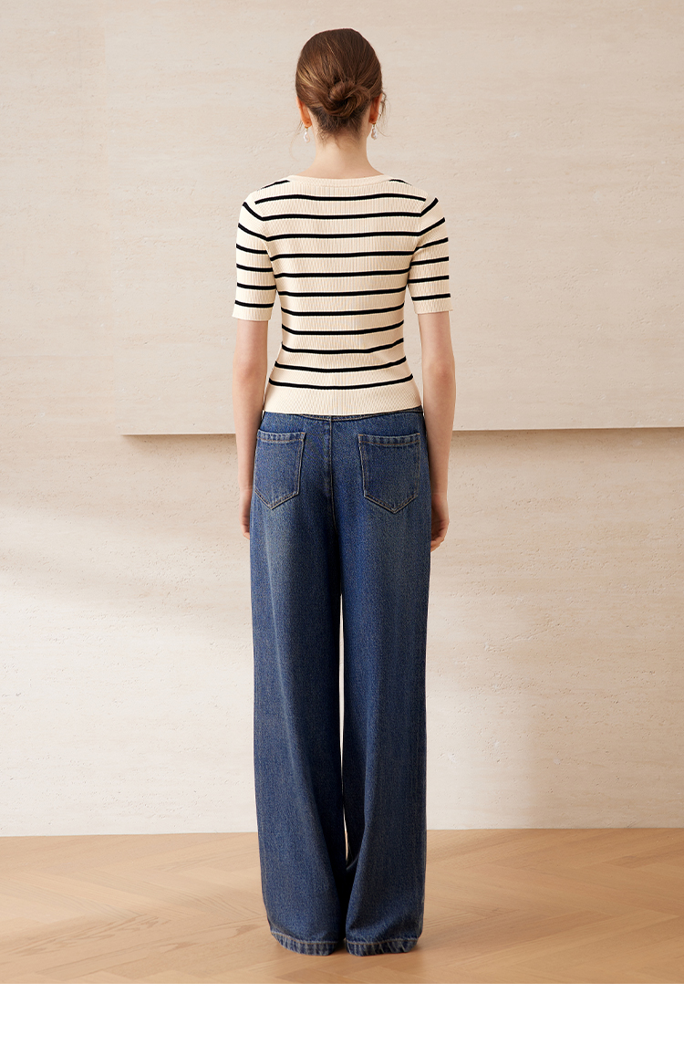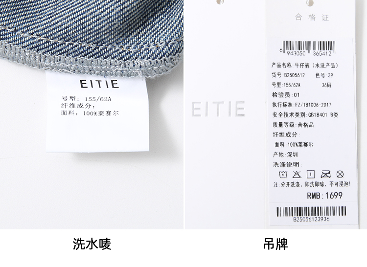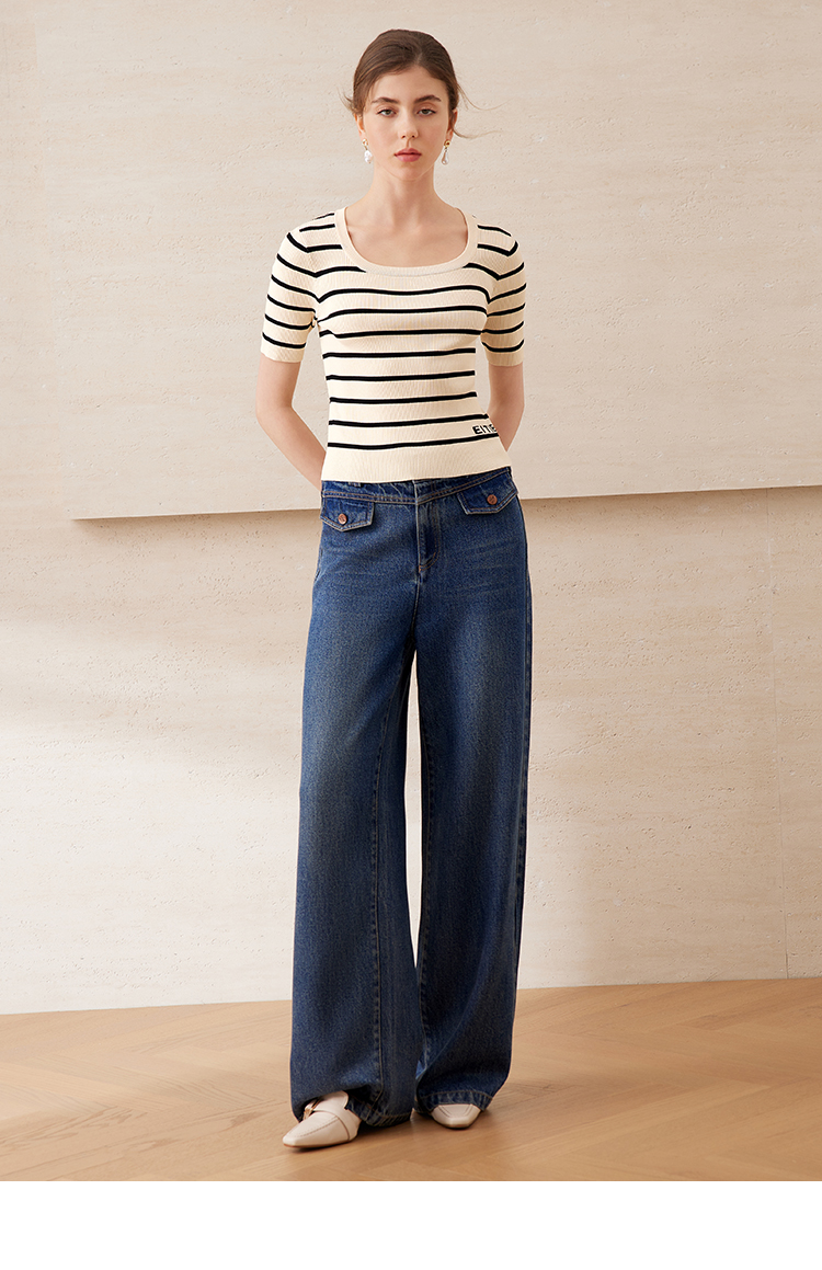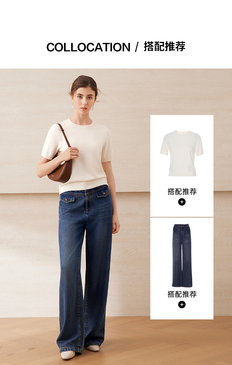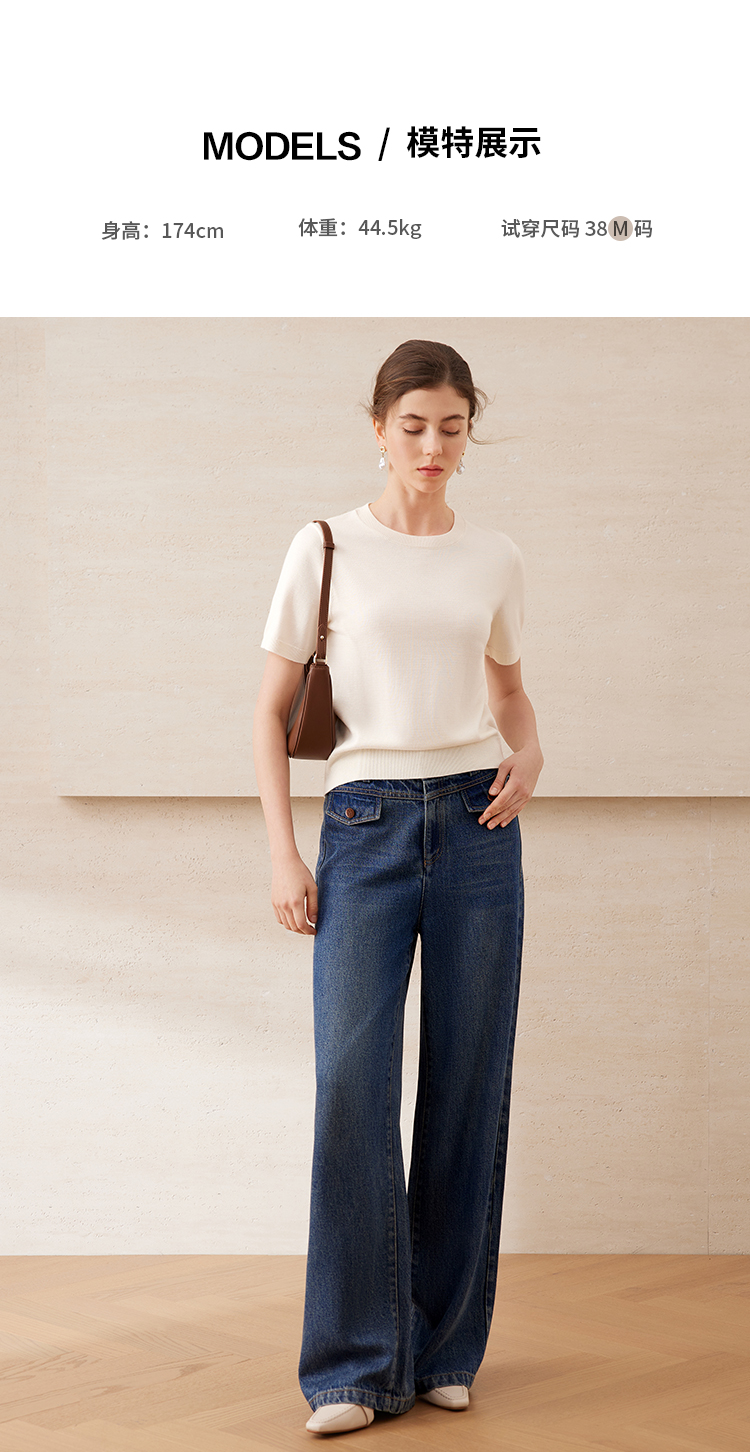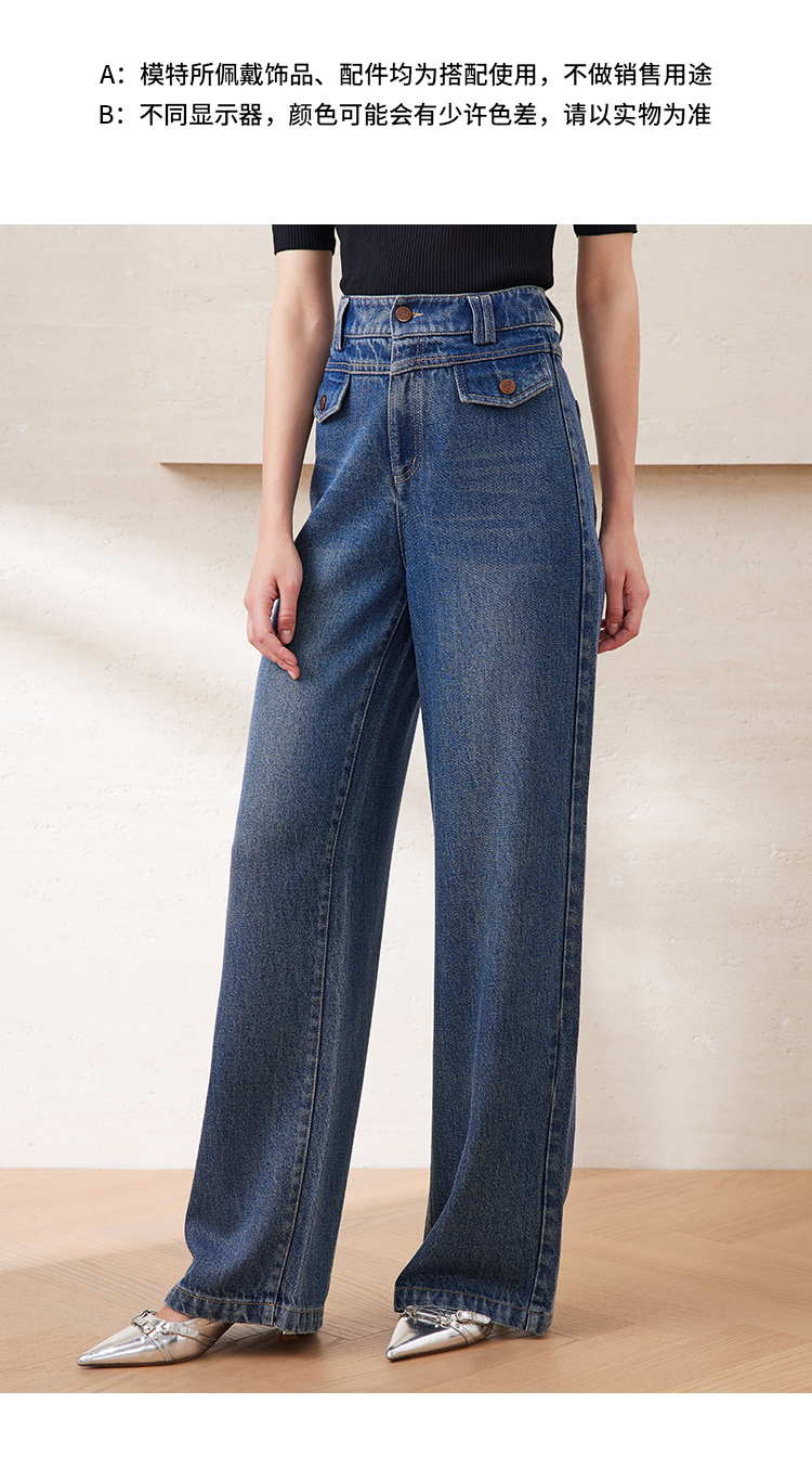 EITIE爱特爱莱赛尔直筒显瘦复古高腰阔腿牛仔裤2025年夏季新款B2505612