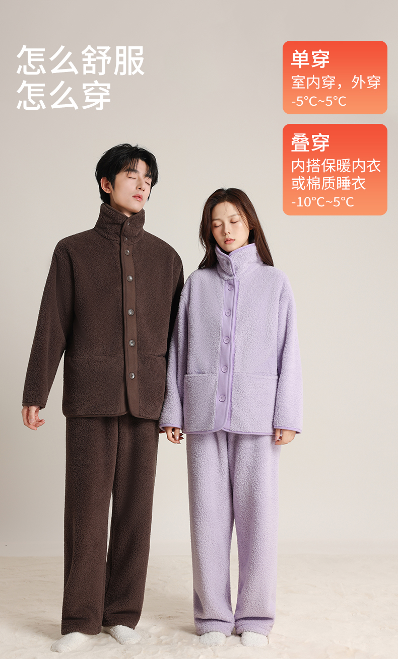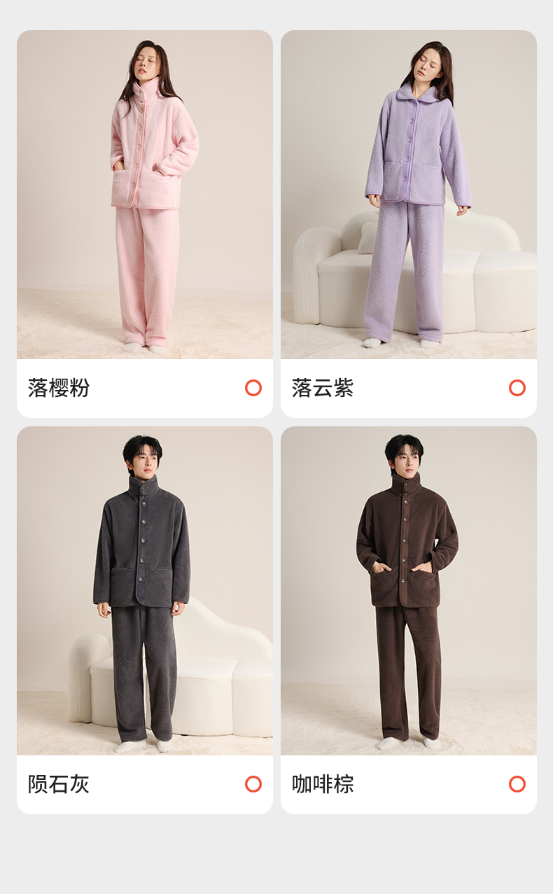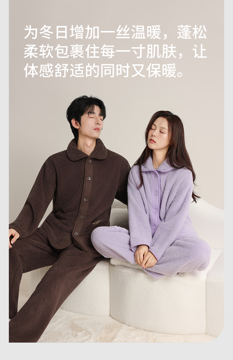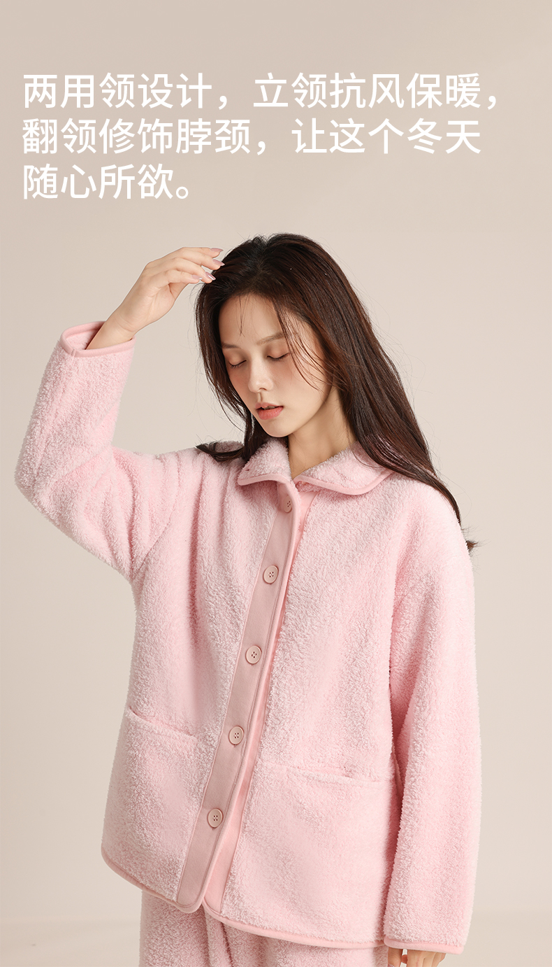 【松软舒适,温暖一整冬】印篱YINGLI秋冬秋冬新款男女款珍贝绒翻领休闲家居服套装可外穿防风保暖家居服