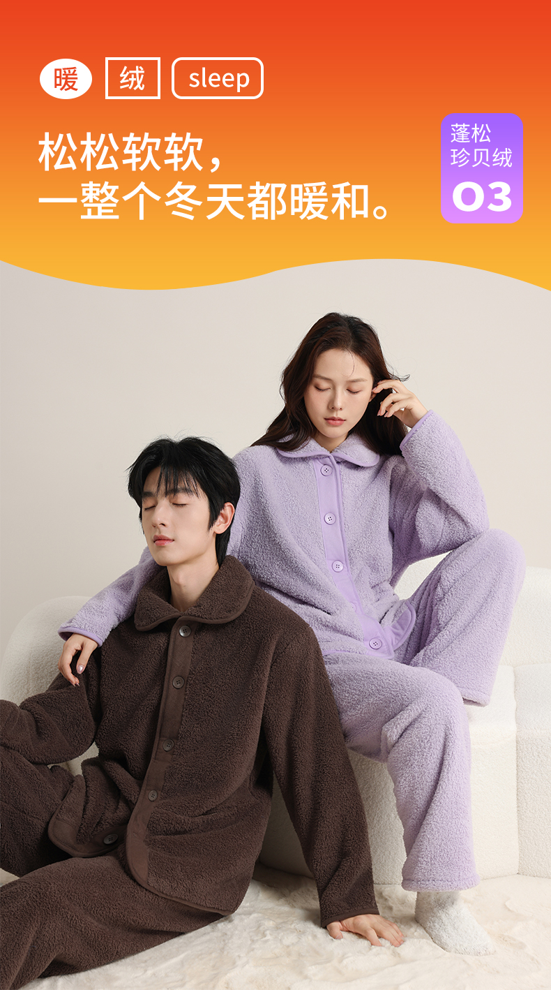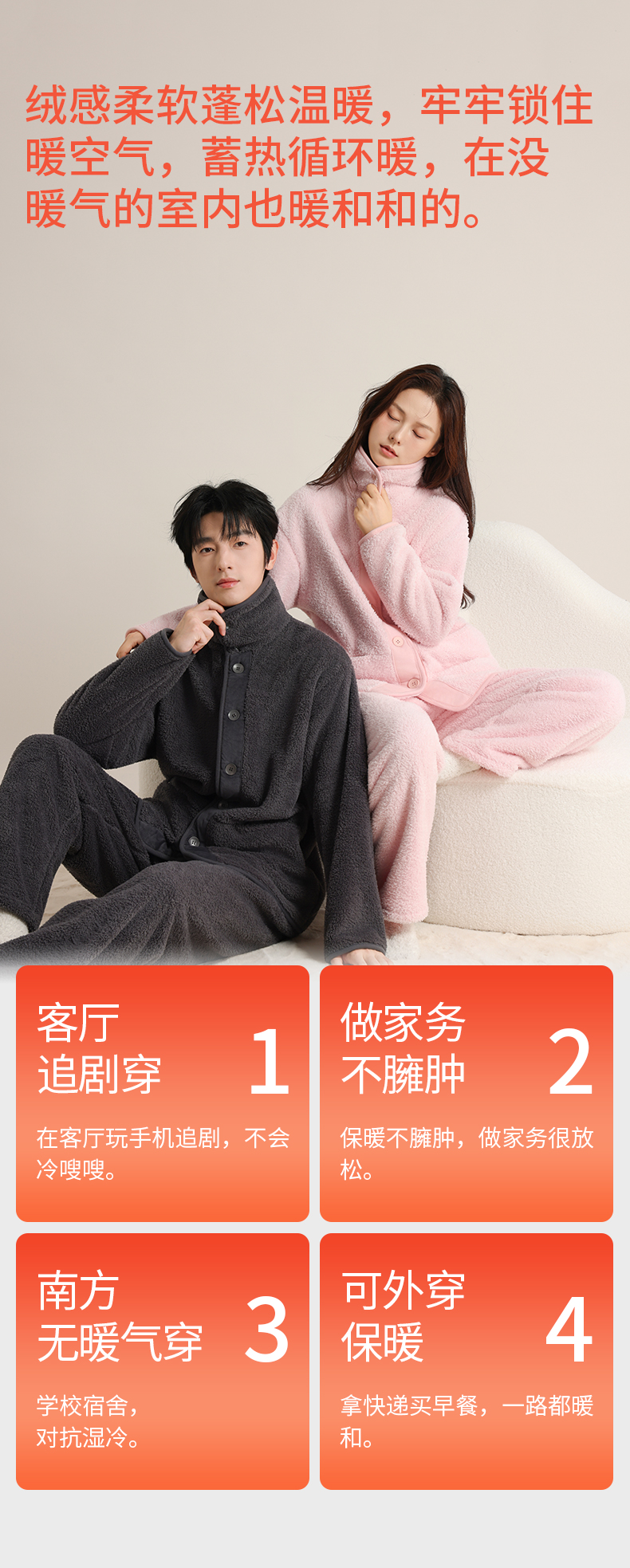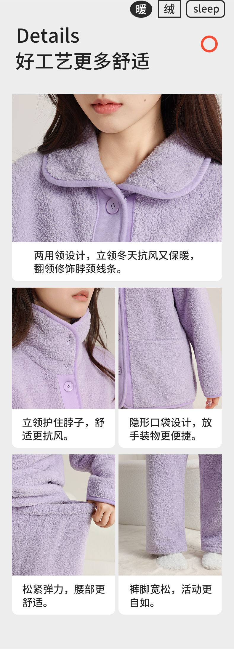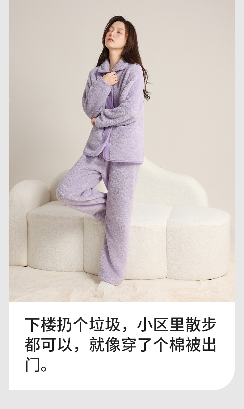 【松软舒适,温暖一整冬】印篱YINGLI秋冬秋冬新款男女款珍贝绒翻领休闲家居服套装可外穿防风保暖家居服