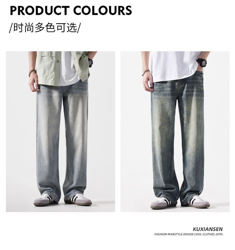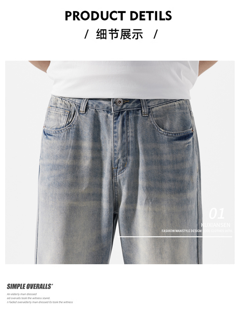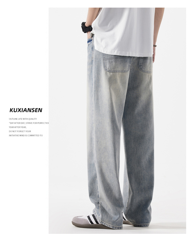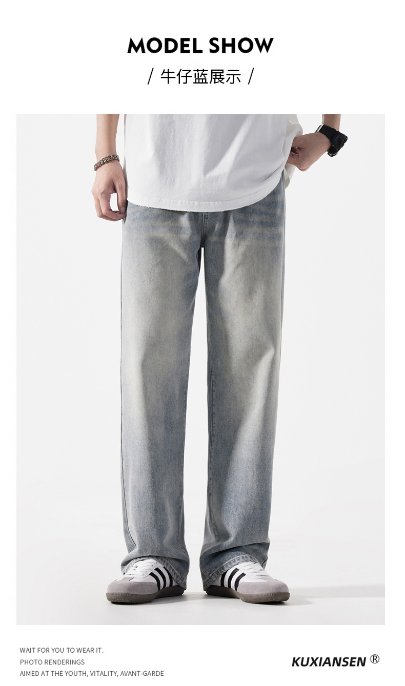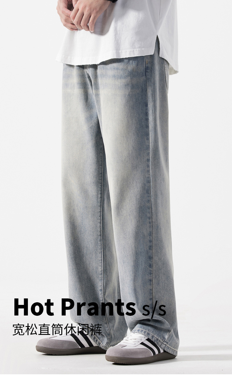 【DYG】大依优型大码男装新品阔腿裤男宽松复古直筒牛仔裤男加肥加大码水洗垂感牛仔长裤男