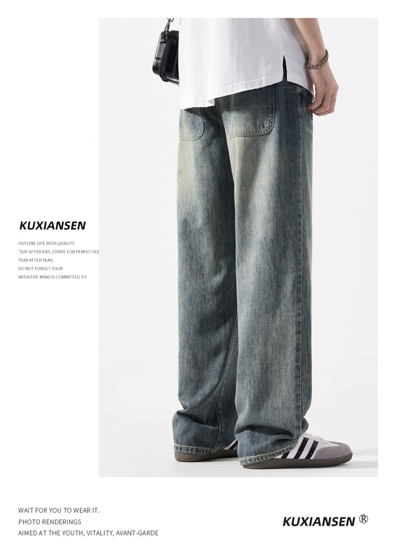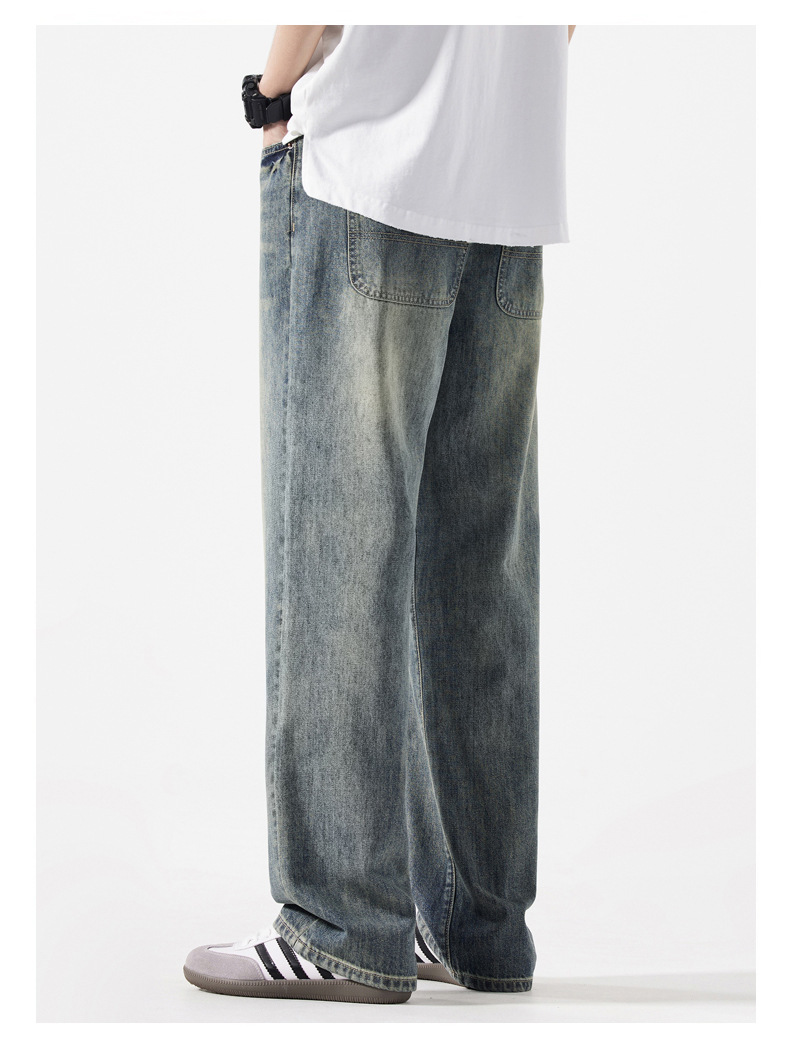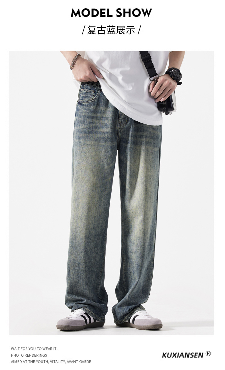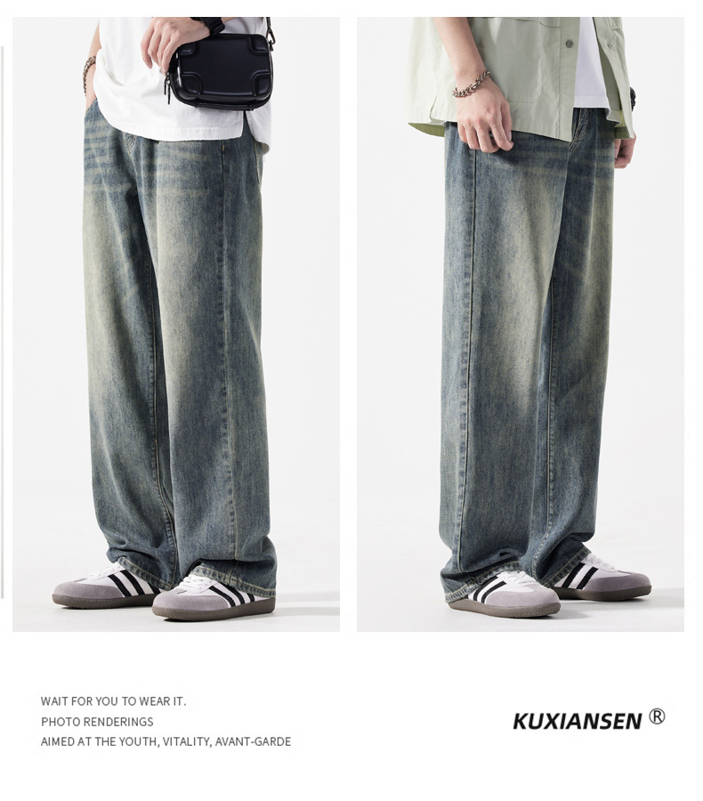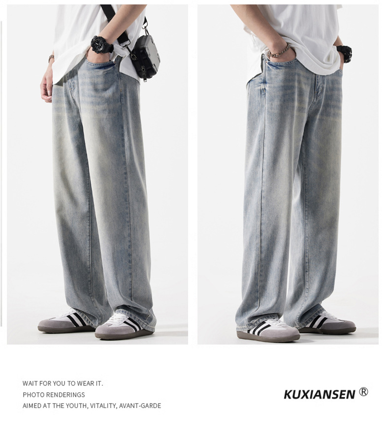 【DYG】大依优型大码男装新品阔腿裤男宽松复古直筒牛仔裤男加肥加大码水洗垂感牛仔长裤男
