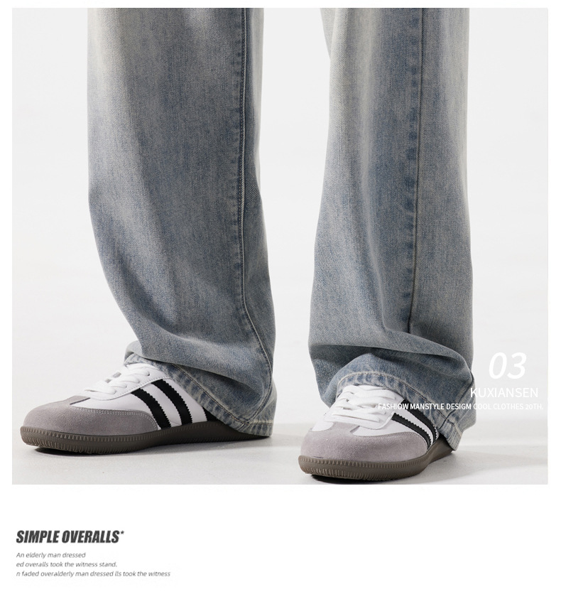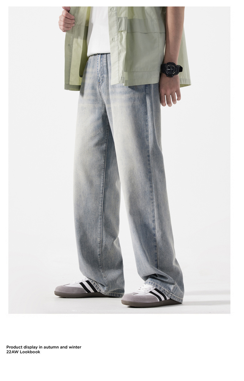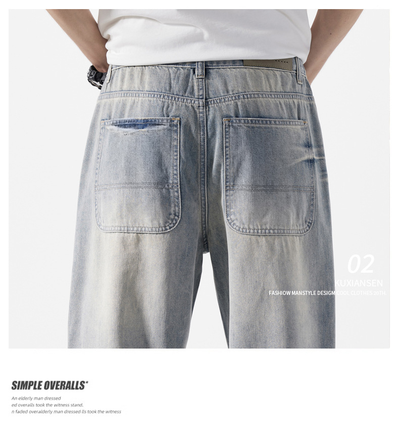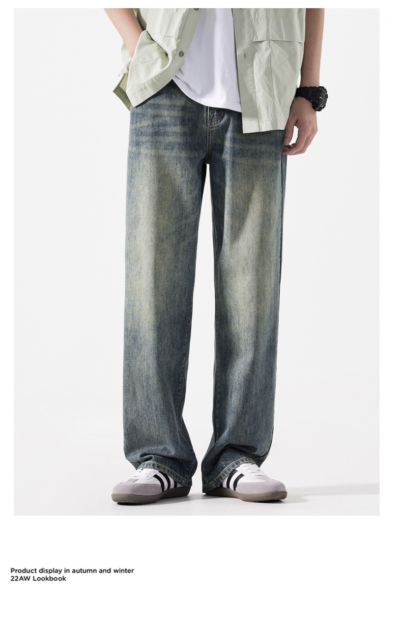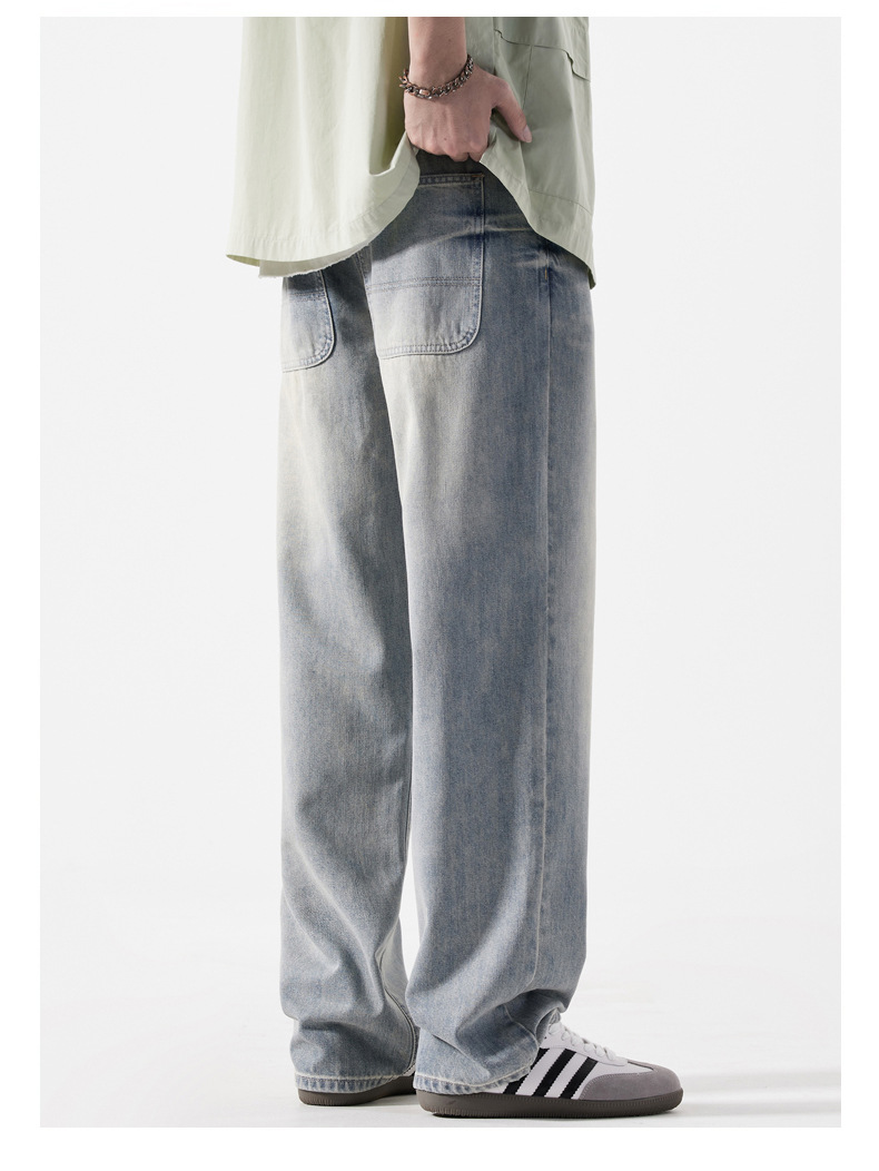 【DYG】大依优型大码男装新品阔腿裤男宽松复古直筒牛仔裤男加肥加大码水洗垂感牛仔长裤男