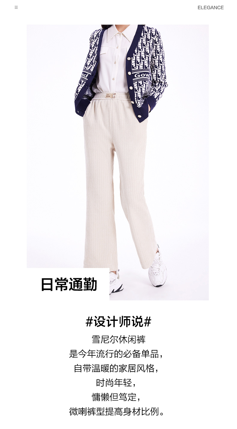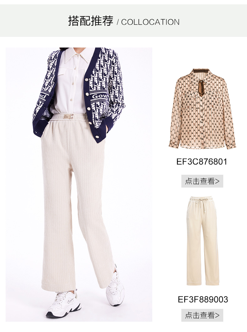 乔万尼休闲裤女秋冬新款宽松直筒高腰显瘦浅色长裤EF4F213