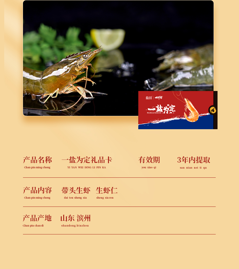 一盐为定礼品卡 渤海水产盐田虾 有机生态大虾 南美白对虾 预售