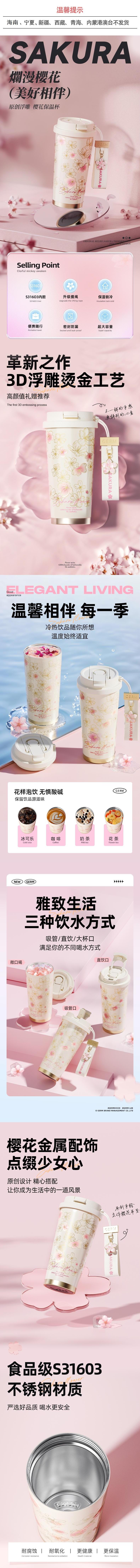 GERM格沵 花语系列闪耀咖啡杯樱花500ml 6976346475267