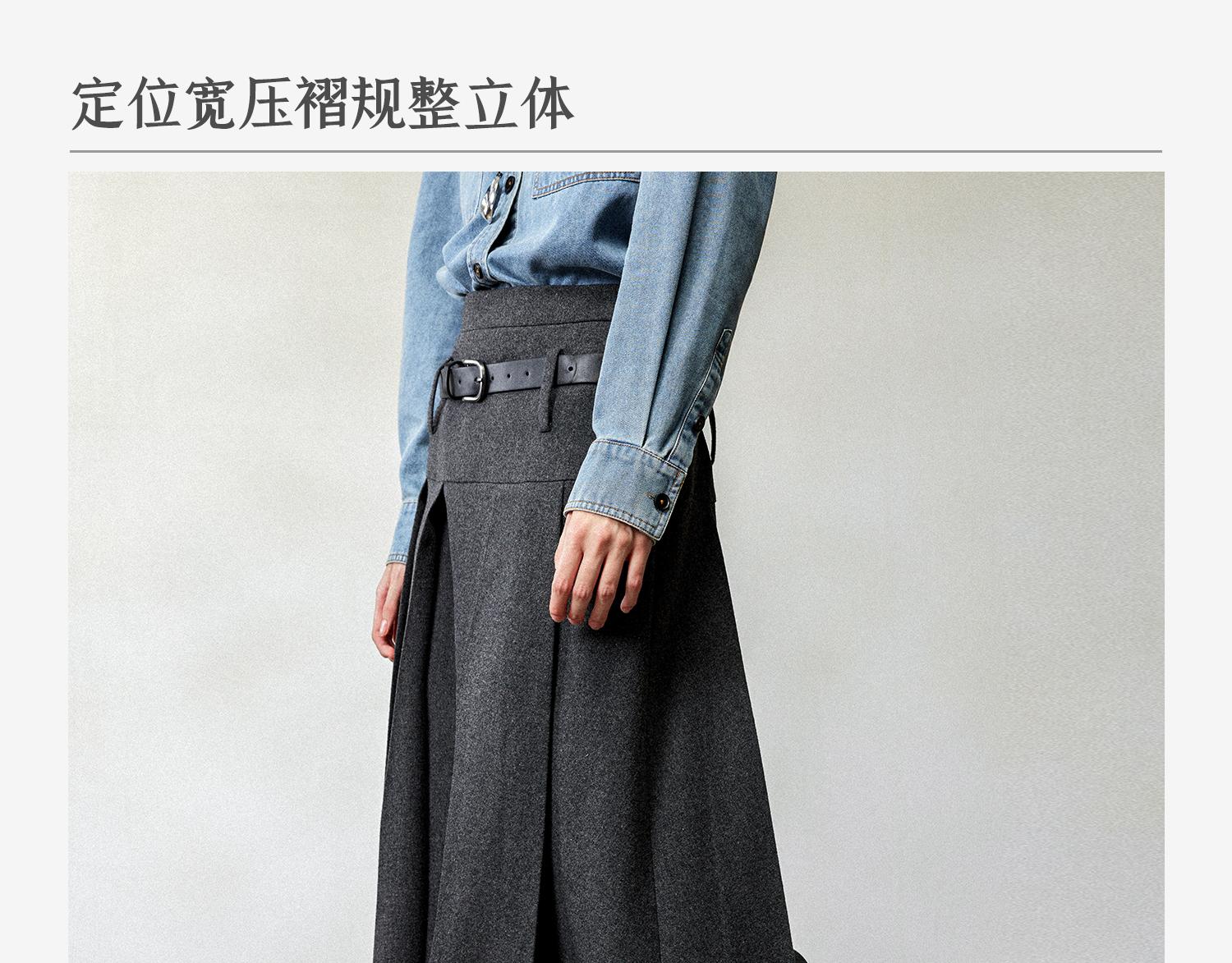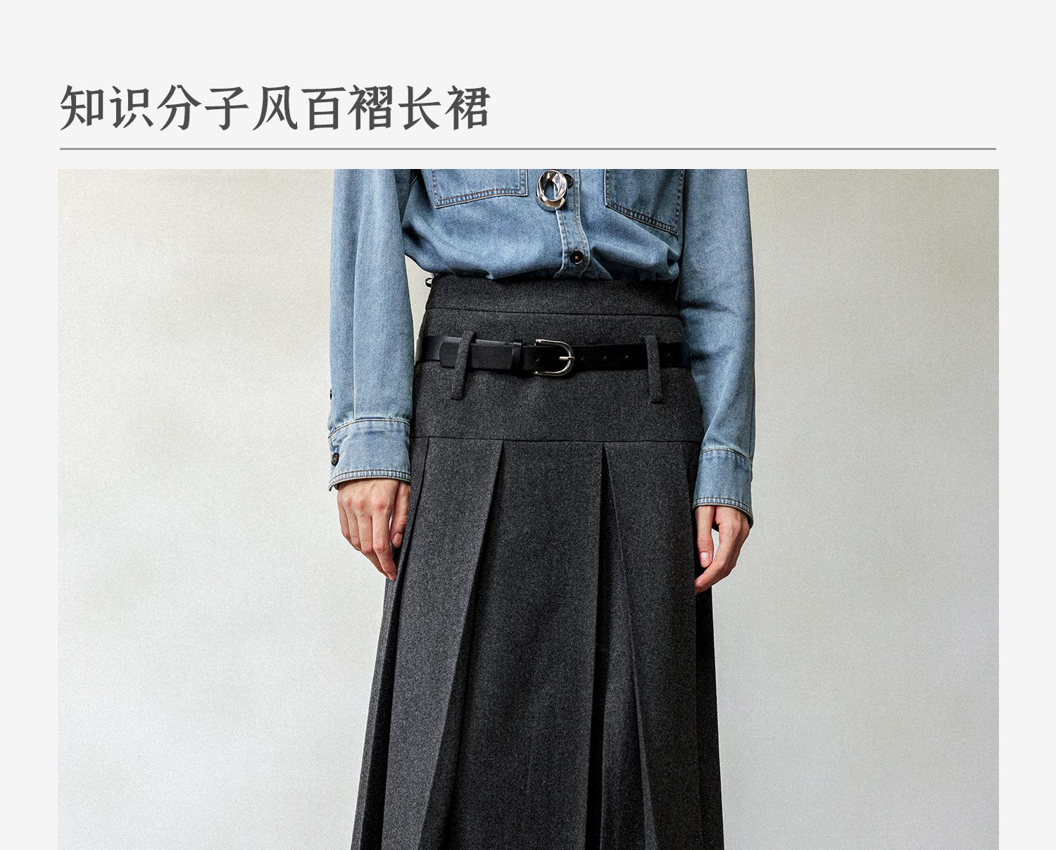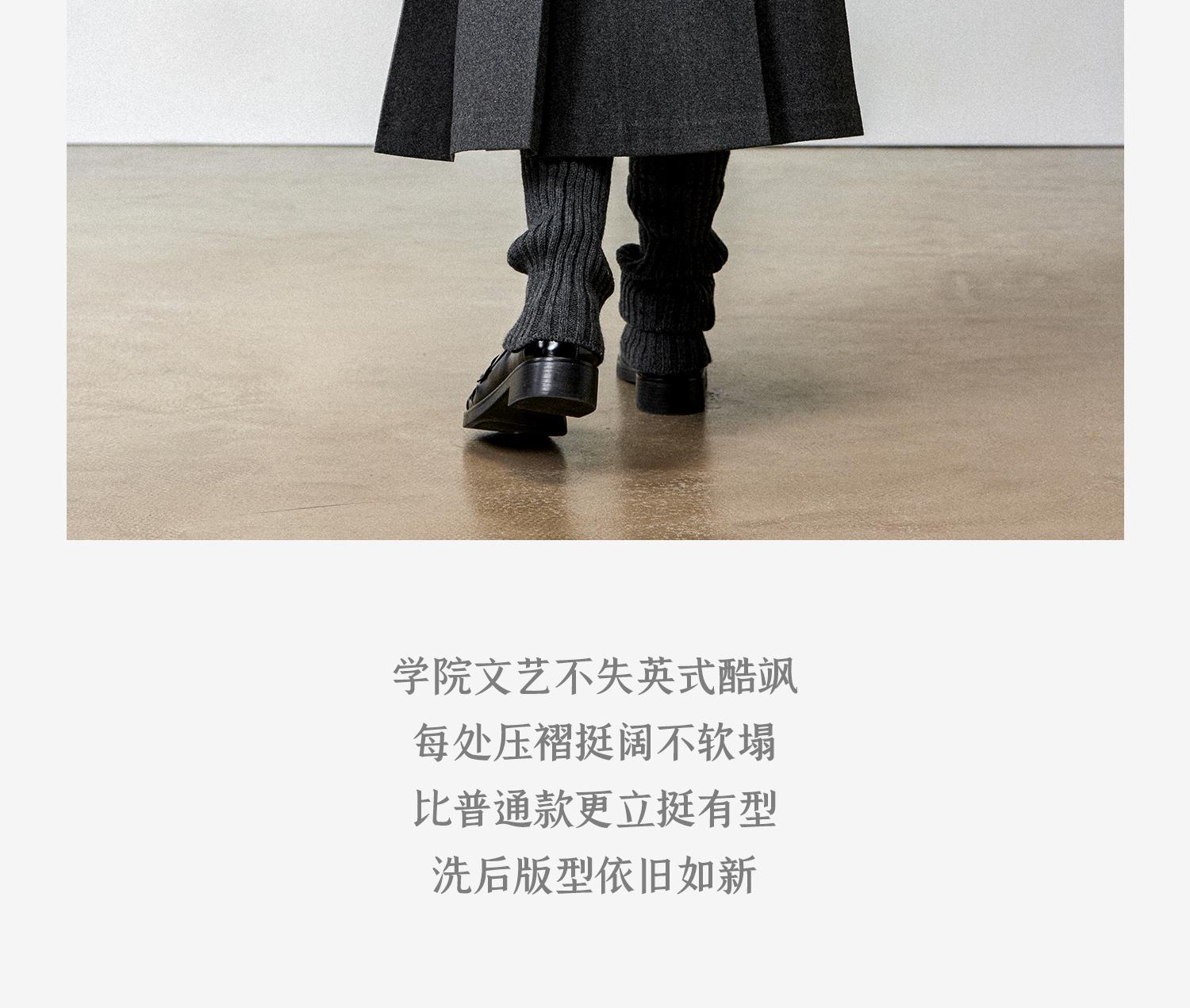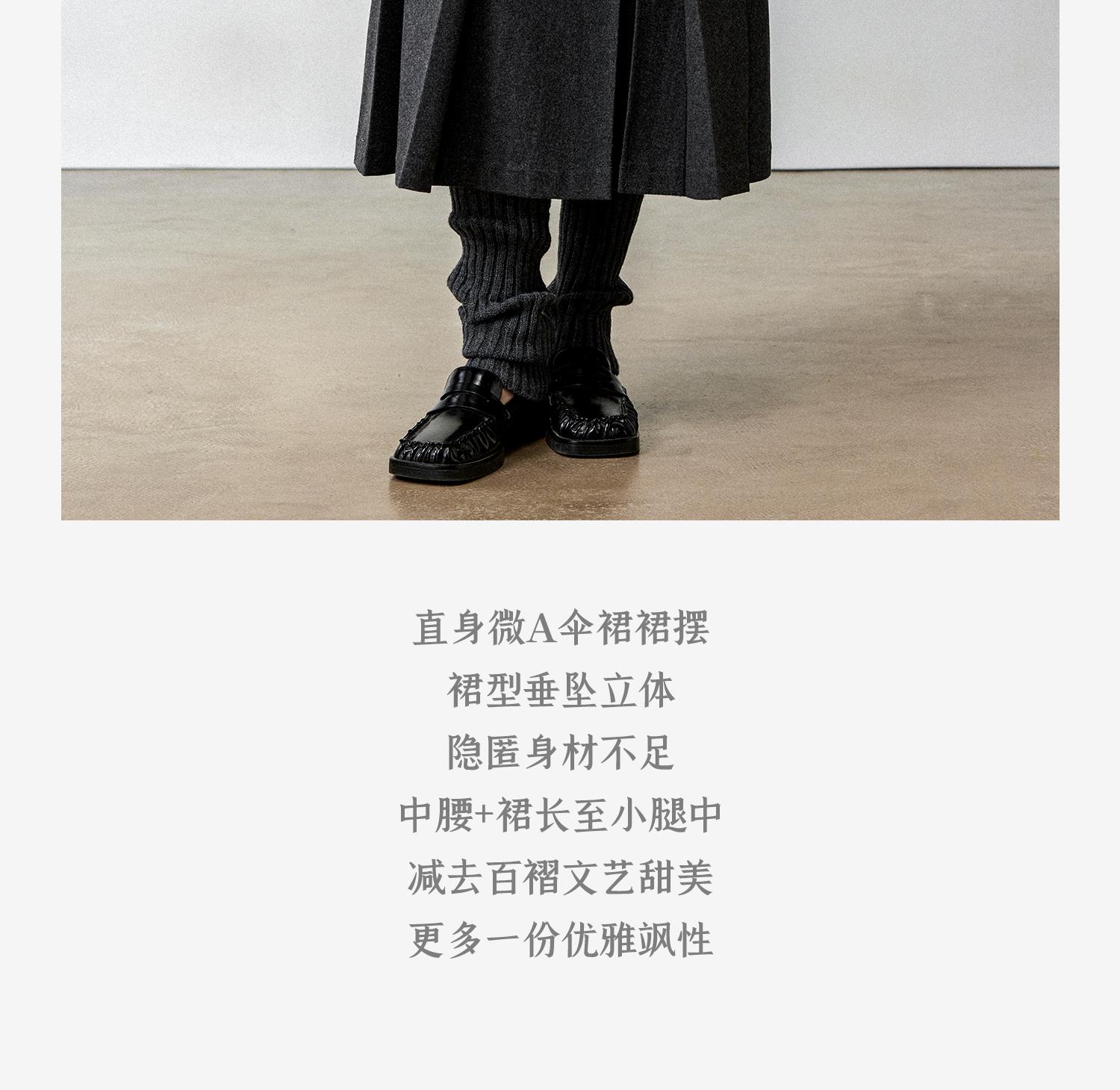 CIMPRESS/西嘉羊毛呢百褶裙女2024新款秋冬知识分子风灰色半身裙(货号:BQ2404058)