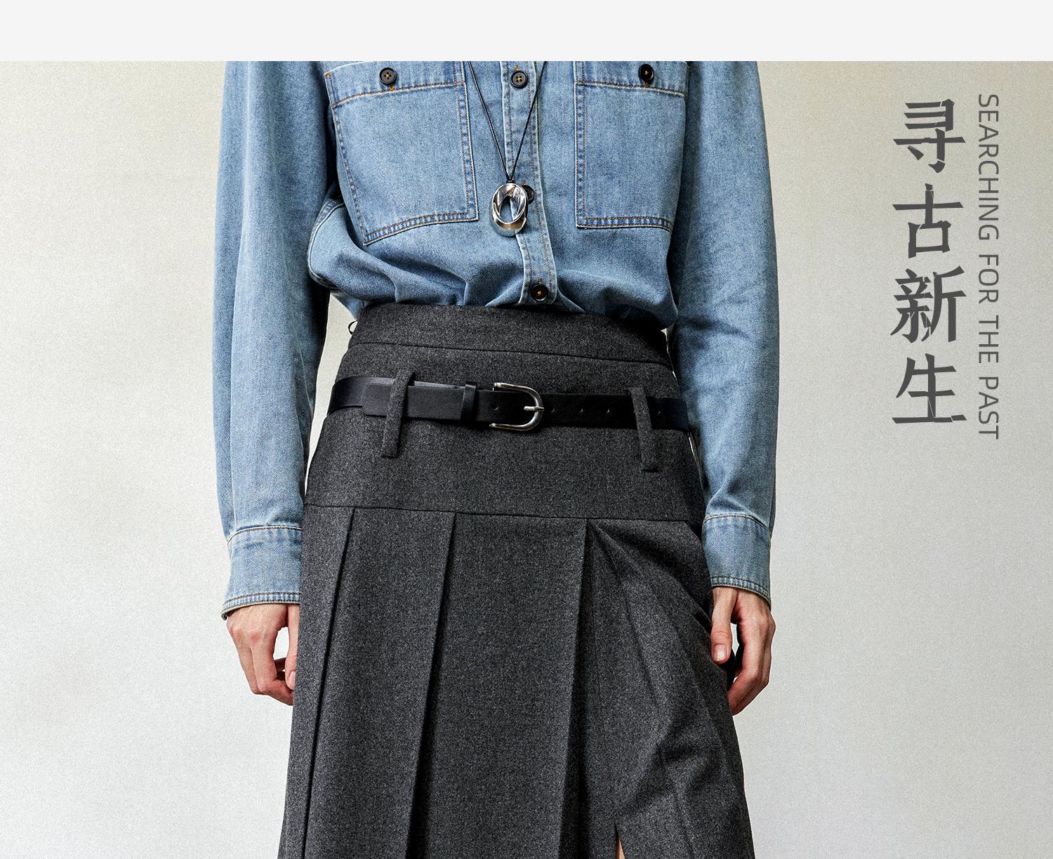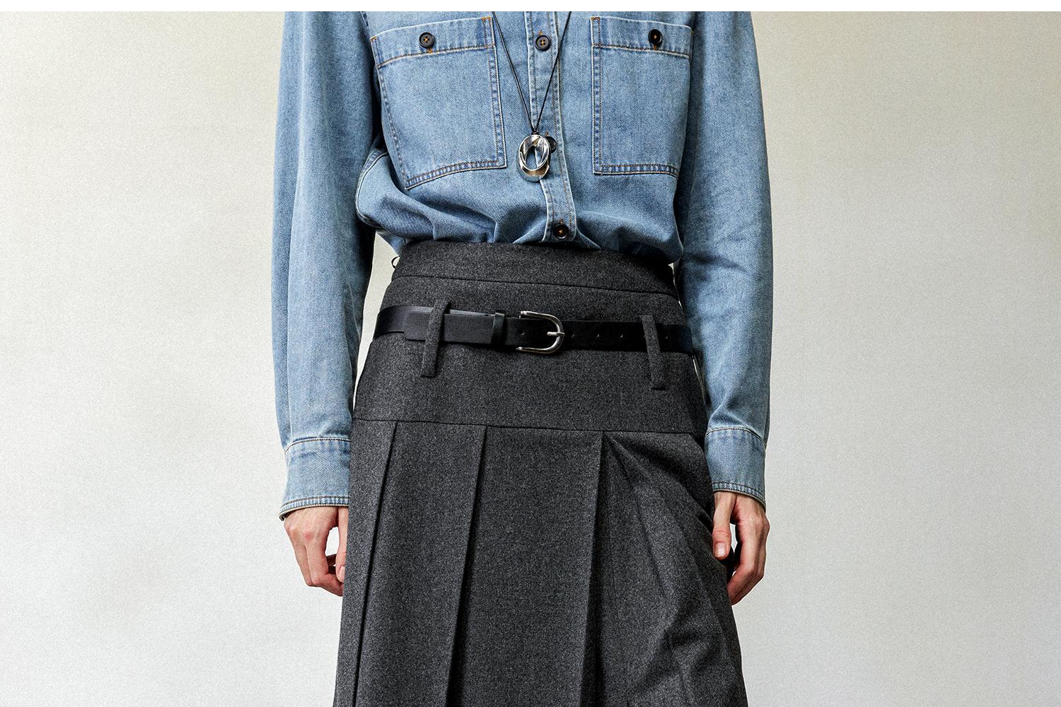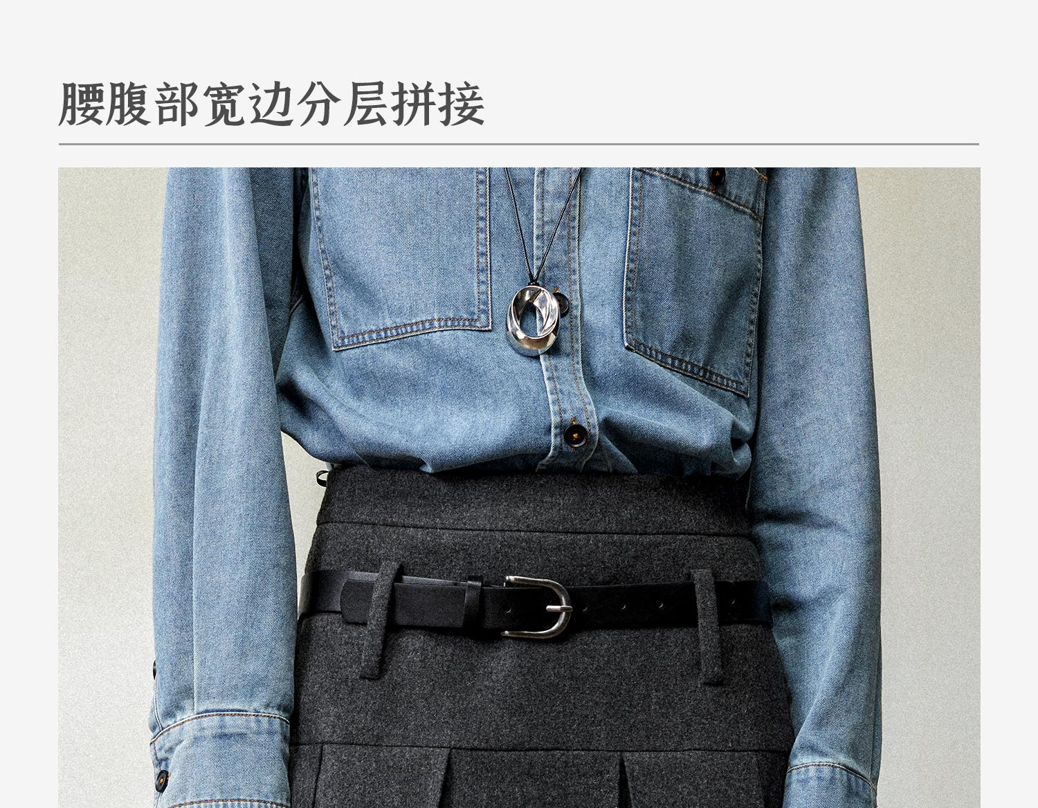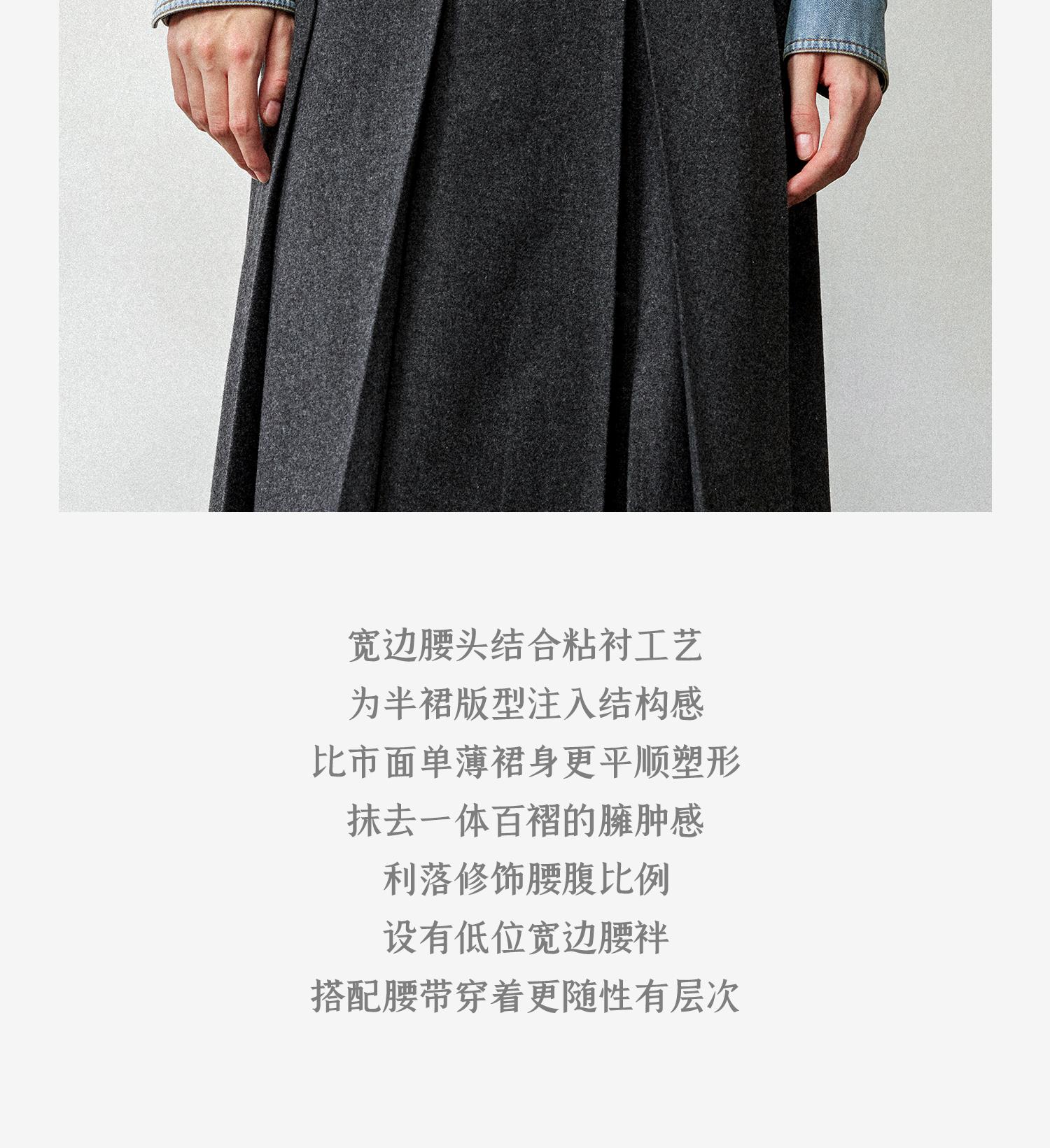 CIMPRESS/西嘉羊毛呢百褶裙女2024新款秋冬知识分子风灰色半身裙(货号:BQ2404058)