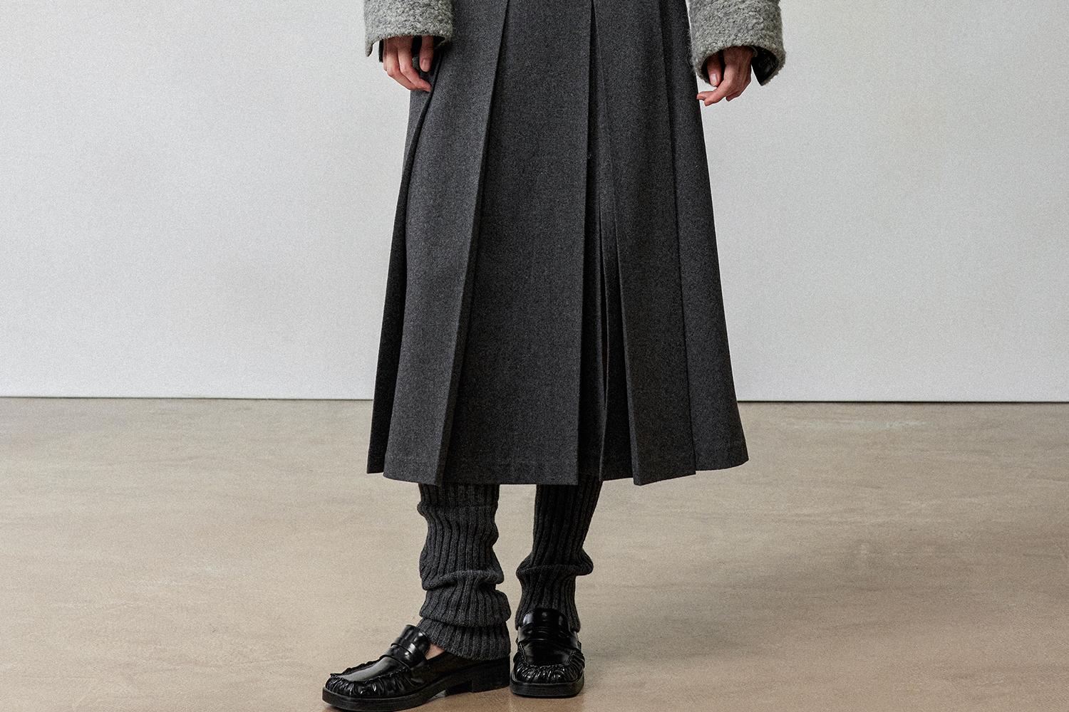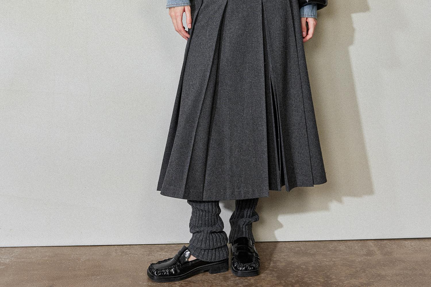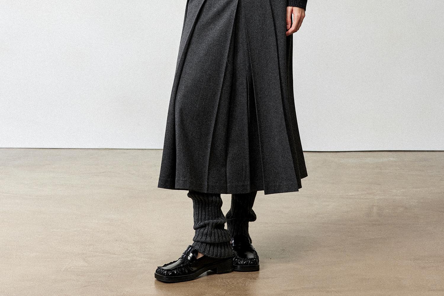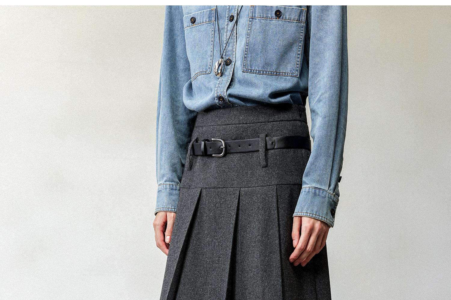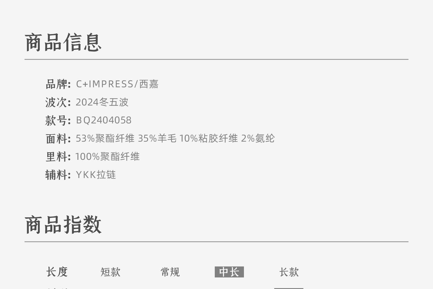 CIMPRESS/西嘉羊毛呢百褶裙女2024新款秋冬知识分子风灰色半身裙(货号:BQ2404058)