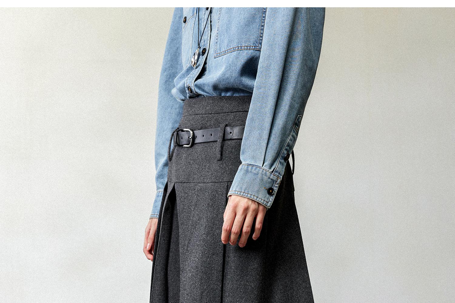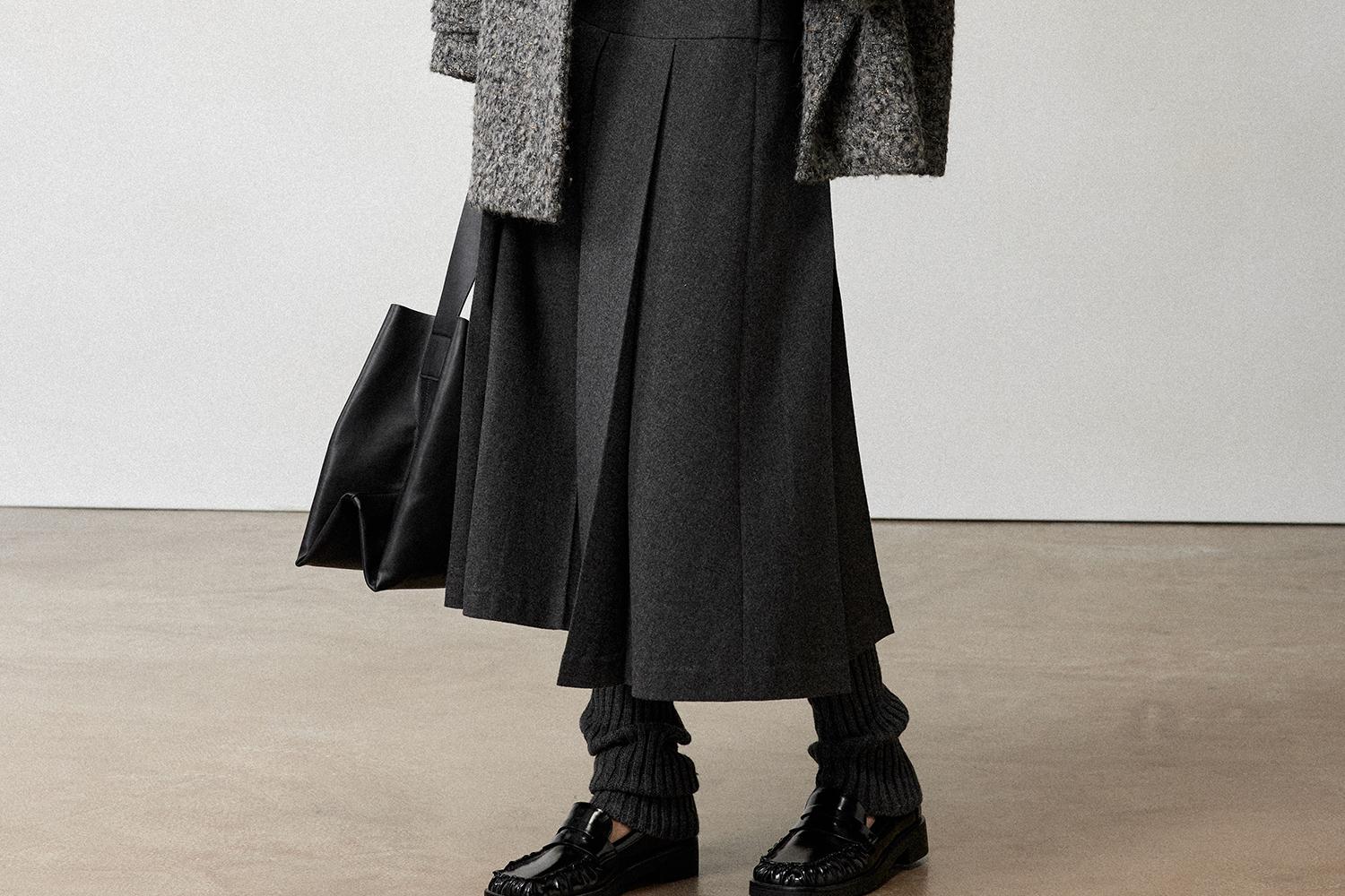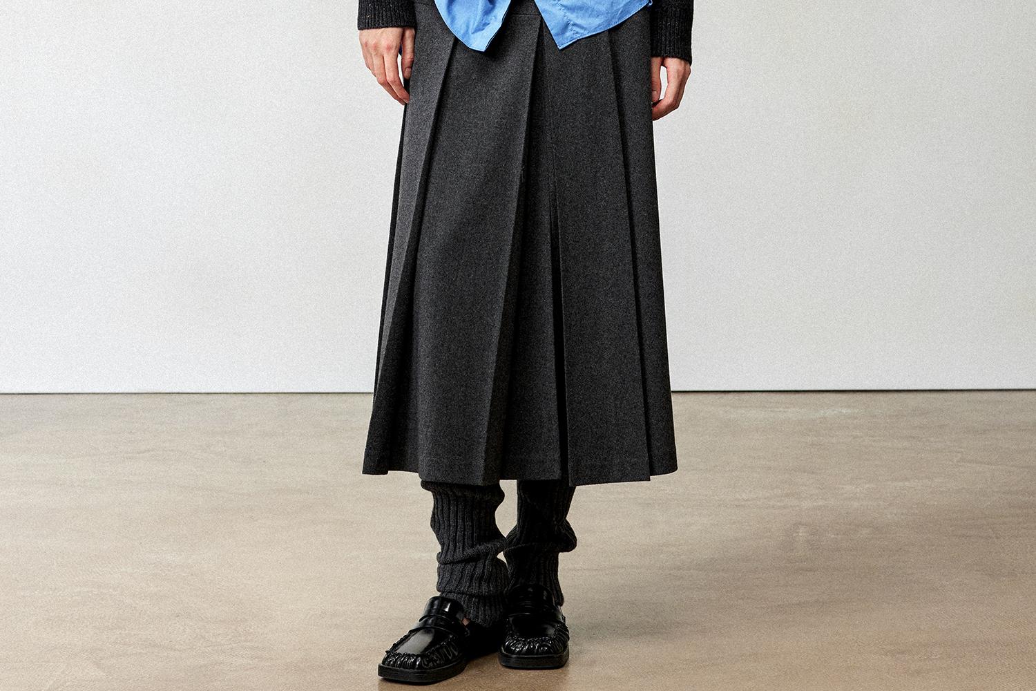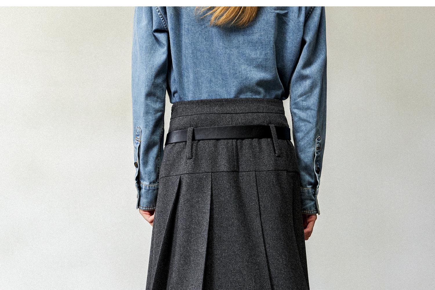 CIMPRESS/西嘉羊毛呢百褶裙女2024新款秋冬知识分子风灰色半身裙(货号:BQ2404058)