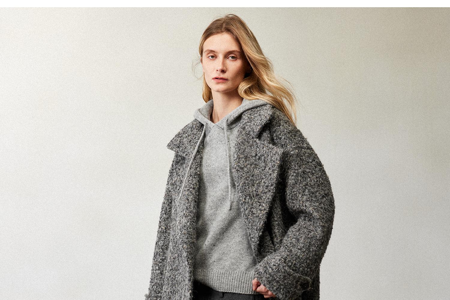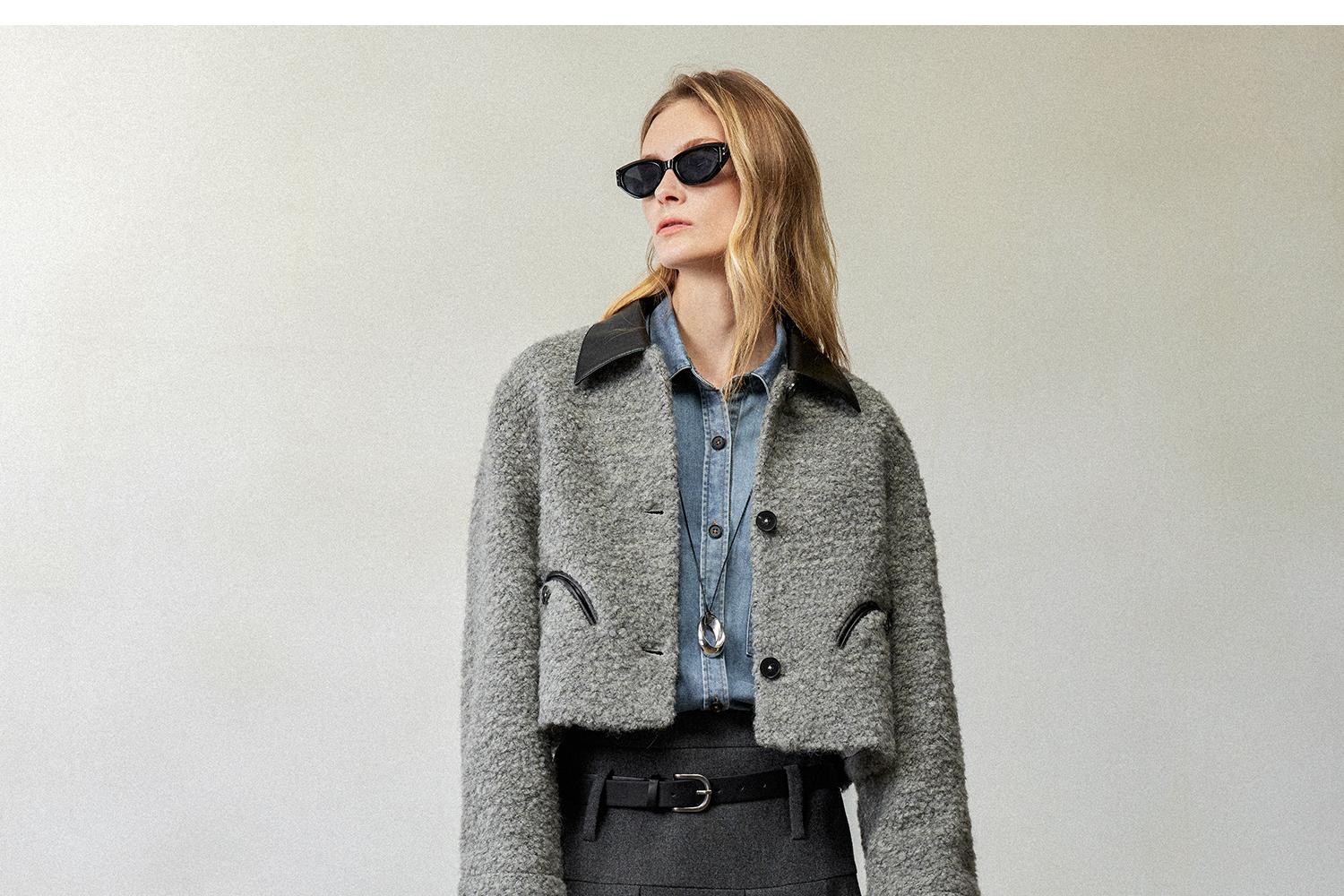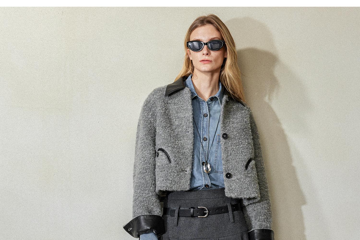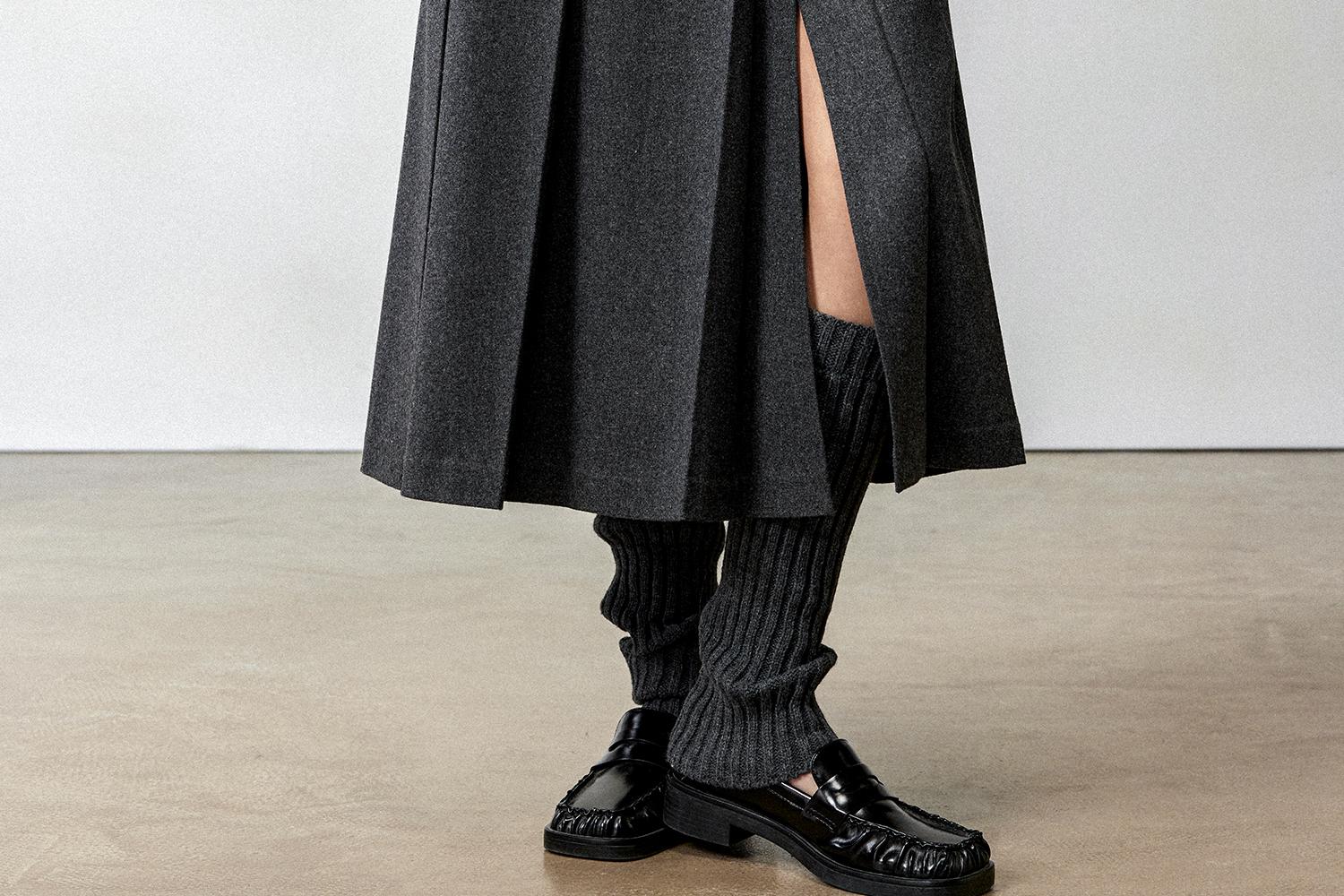 CIMPRESS/西嘉羊毛呢百褶裙女2024新款秋冬知识分子风灰色半身裙(货号:BQ2404058)