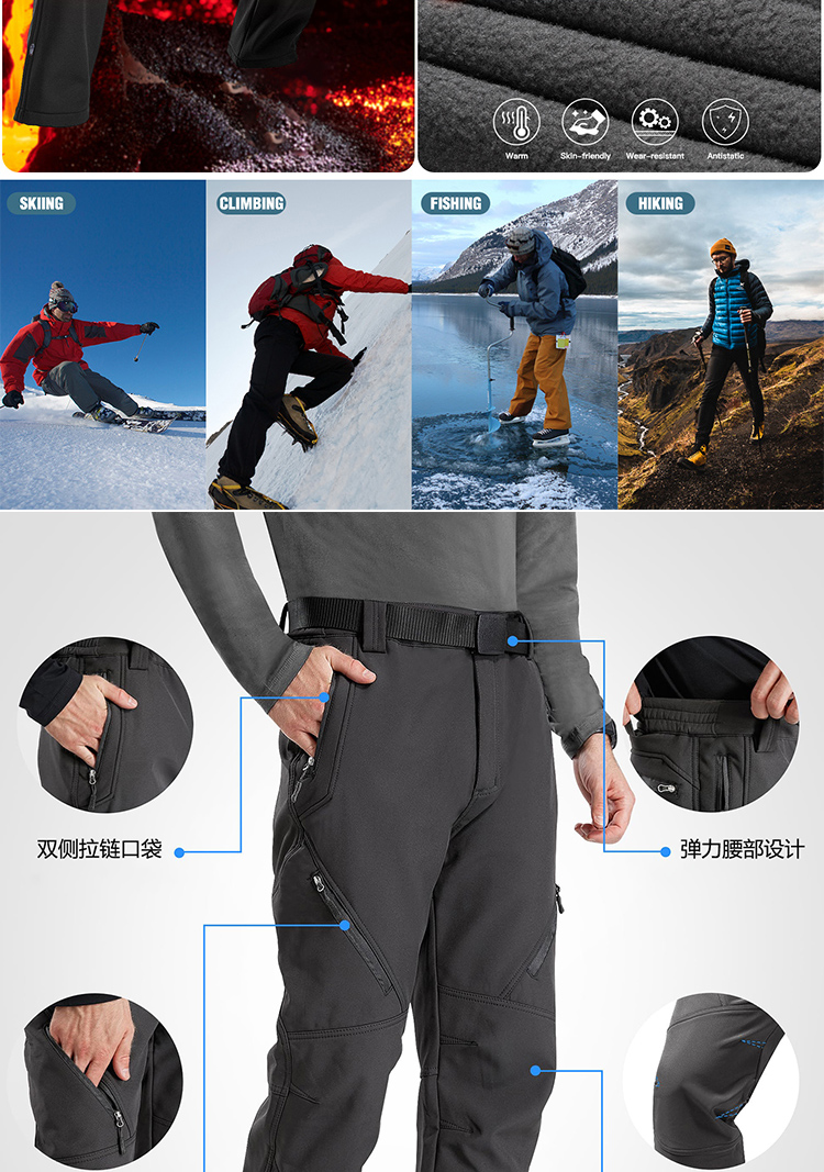 【摇粒绒保暖 防风防泼蓄热 四面弹无束缚】飓风L5级软壳户外登山战术裤ds(zb)