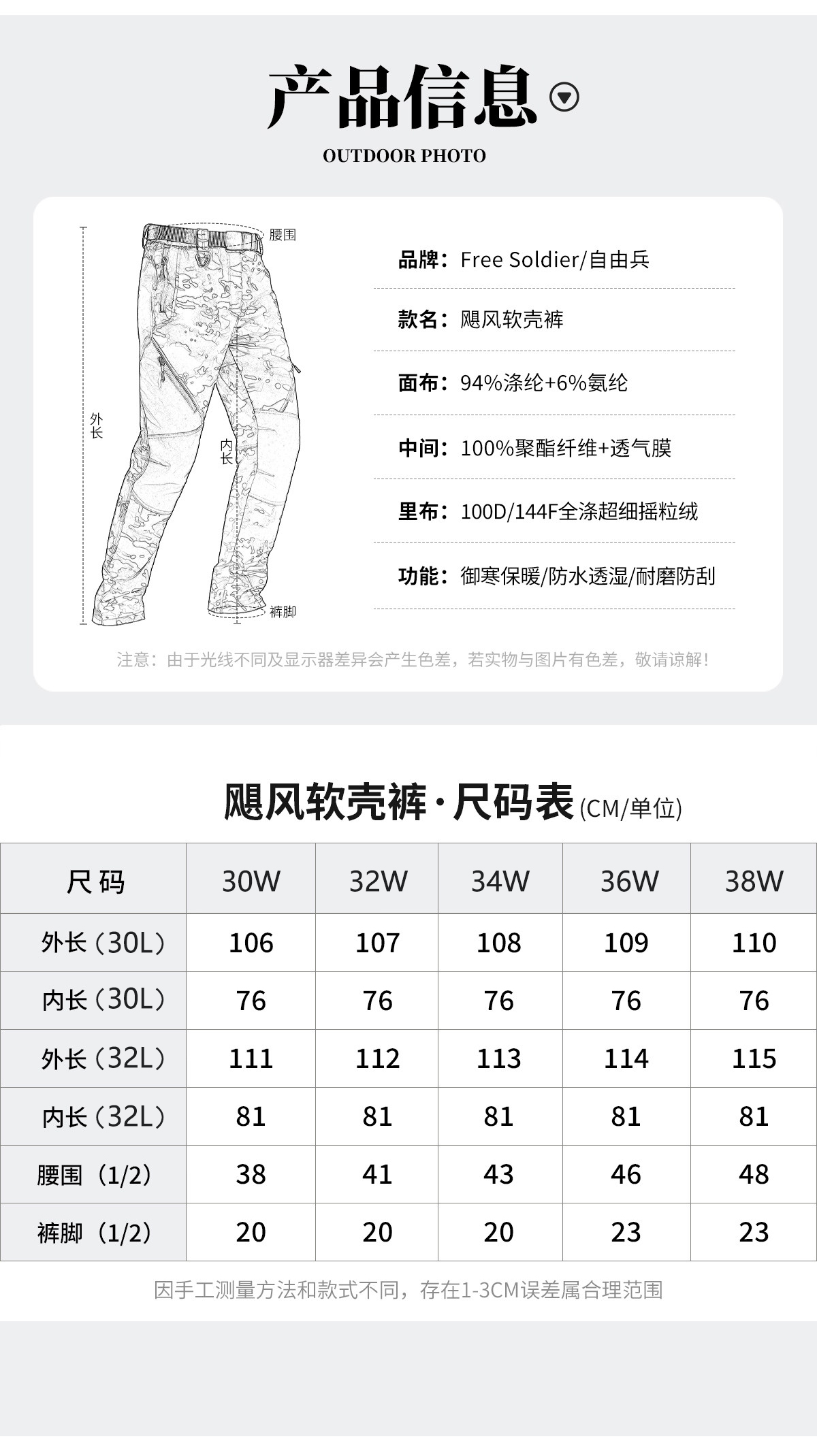 抗风,防水,保暖的战术软壳裤