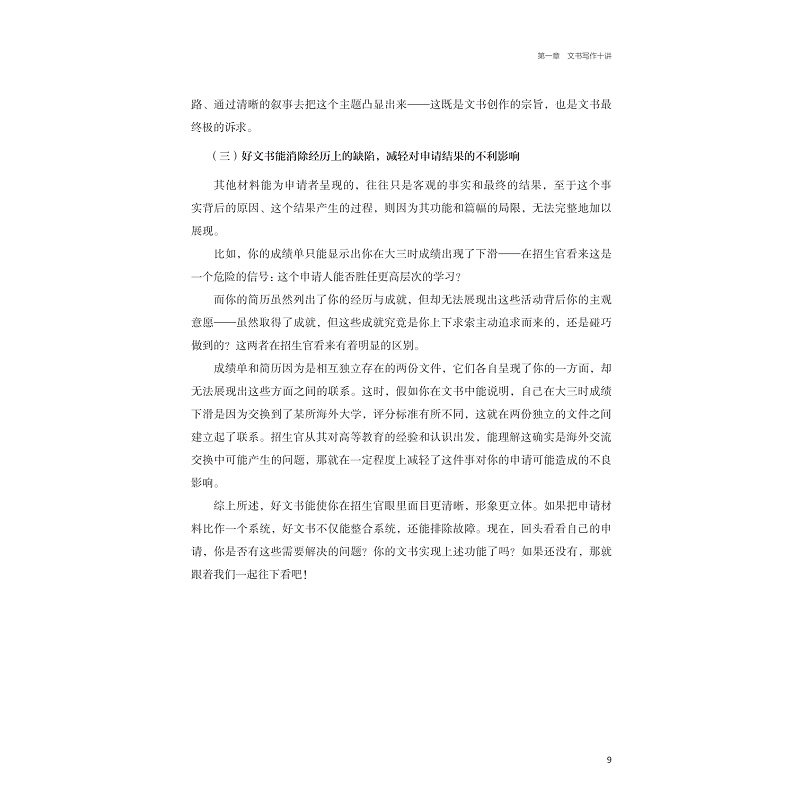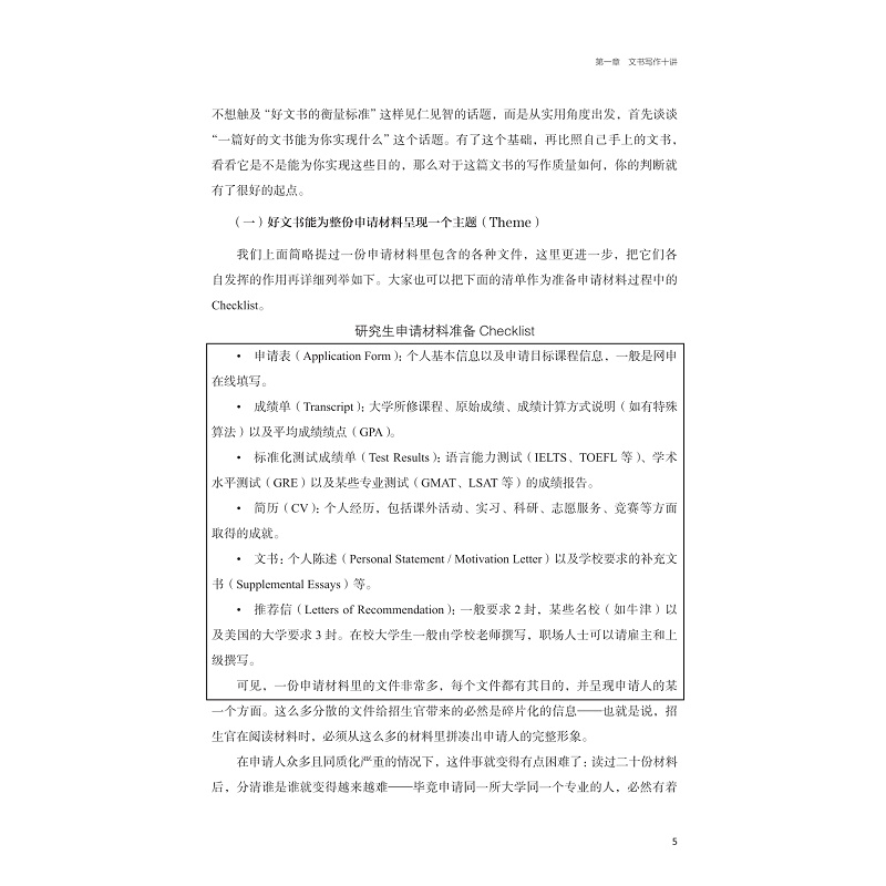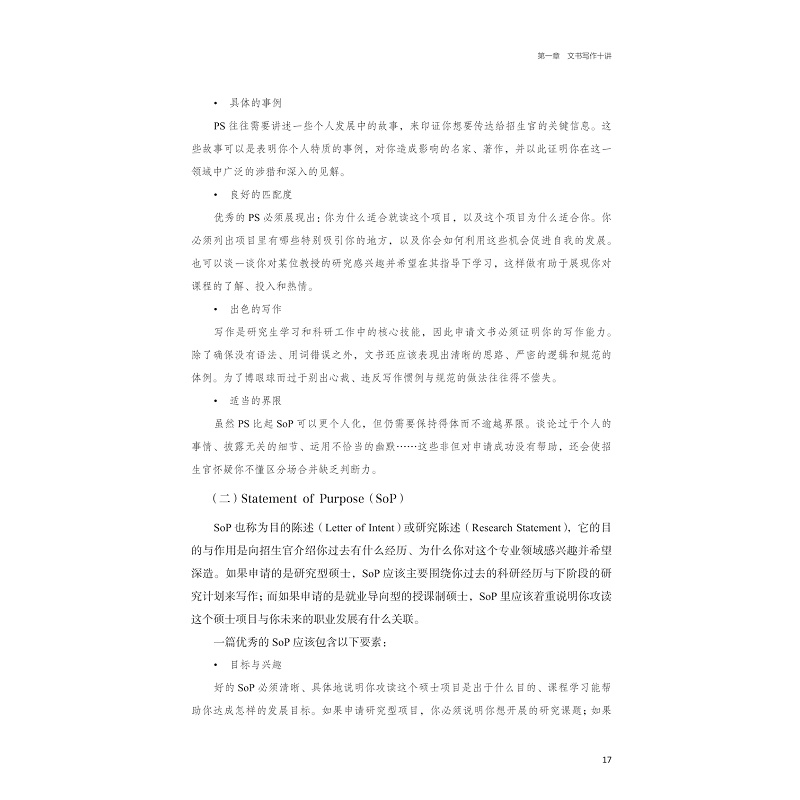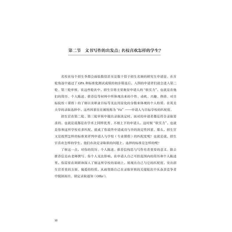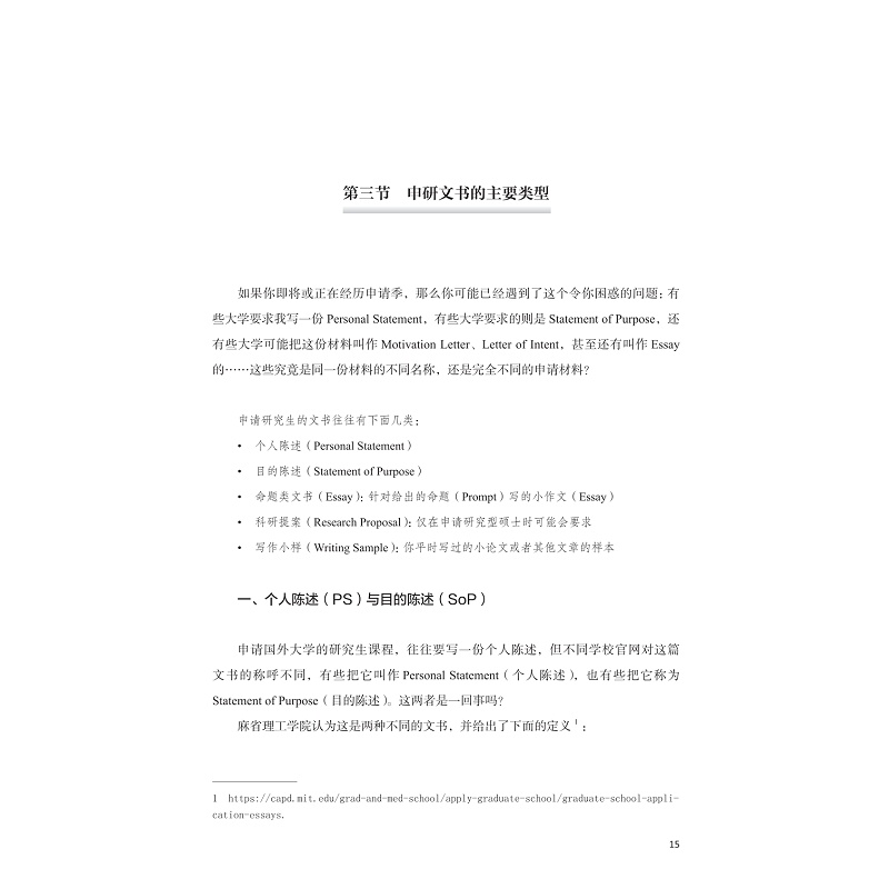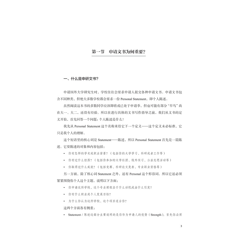 国外大学的申请文书种类较多,要求各不相同。由于在内容素材与展开方式上带有一定的自主性,因此如何选材、构思、布局以及斟酌写作的语言就成了文书写作中的重点。本书作者在宁波诺丁汉大学担任专职留学指导,与海外大学招生官有着密切工作交往,开设有“此时此地一起写作”“申研文书写作工坊”等留学文书写作课程并深受学生欢迎。本书基于作者授课的过程中撰写的课程资料整理、编著而成,采用了经作者指导成功申请到海外名校的学生文书案例,并经过海外名校招生官审核、提供意见与点评,能给予读者更多的“实战”指导。