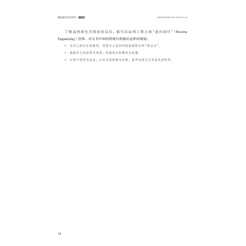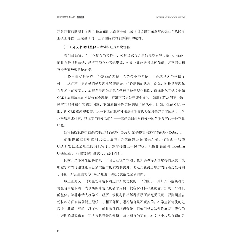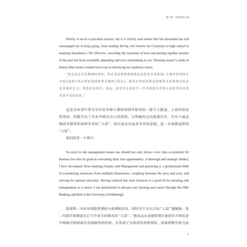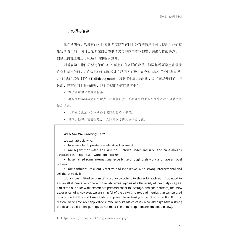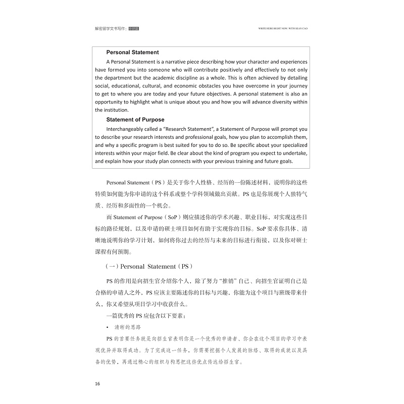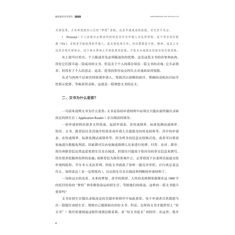 国外大学的申请文书种类较多,要求各不相同。由于在内容素材与展开方式上带有一定的自主性,因此如何选材、构思、布局以及斟酌写作的语言就成了文书写作中的重点。本书作者在宁波诺丁汉大学担任专职留学指导,与海外大学招生官有着密切工作交往,开设有“此时此地一起写作”“申研文书写作工坊”等留学文书写作课程并深受学生欢迎。本书基于作者授课的过程中撰写的课程资料整理、编著而成,采用了经作者指导成功申请到海外名校的学生文书案例,并经过海外名校招生官审核、提供意见与点评,能给予读者更多的“实战”指导。