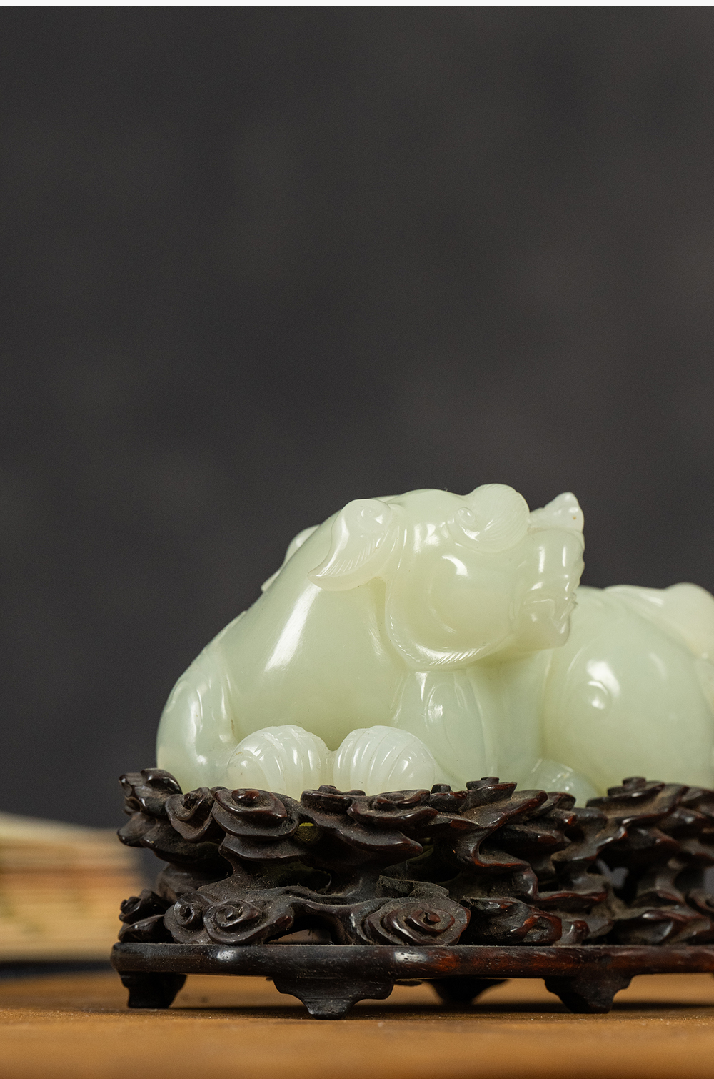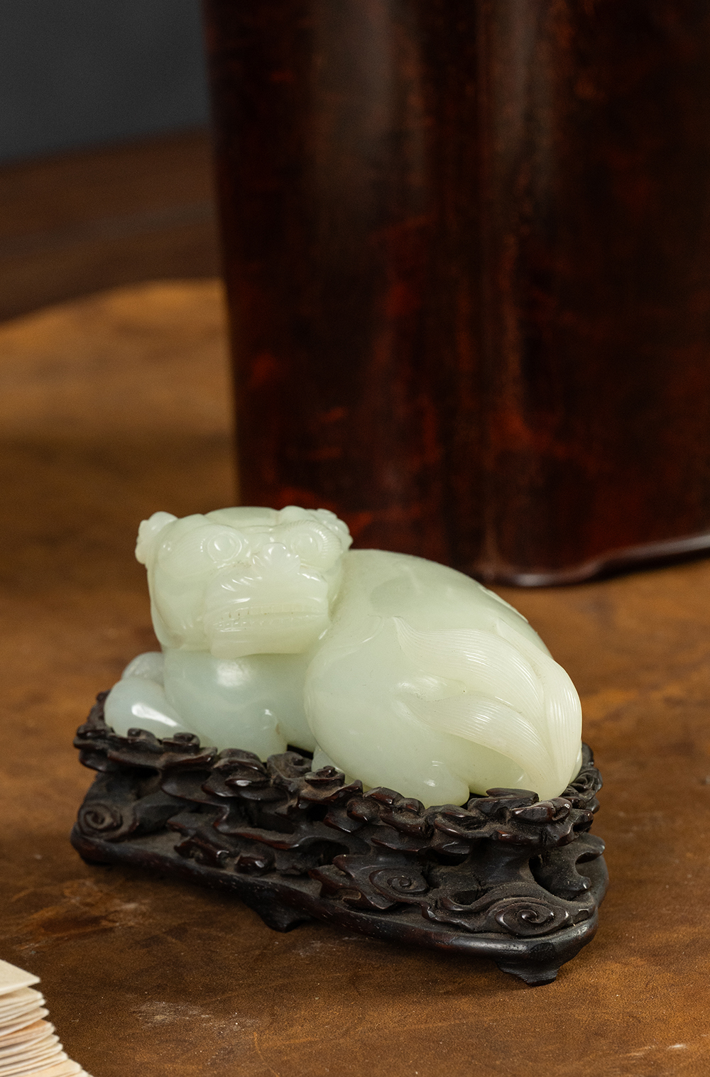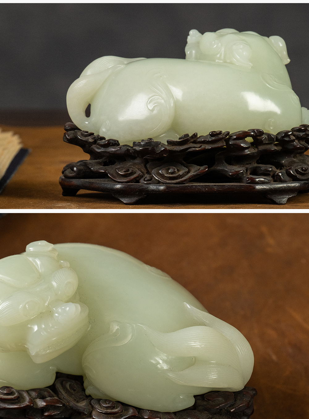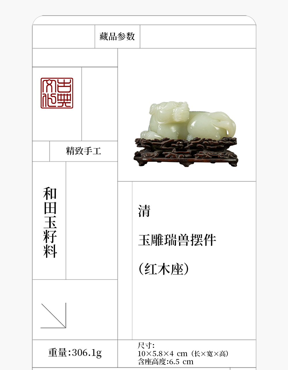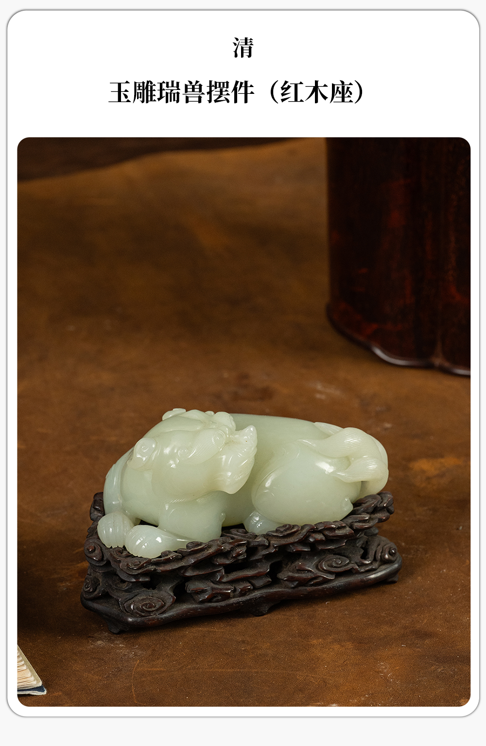 清 玉雕瑞兽摆件(红木座)