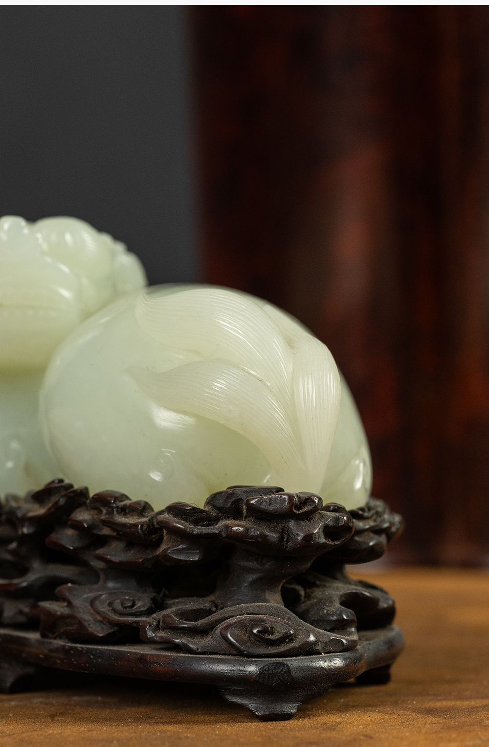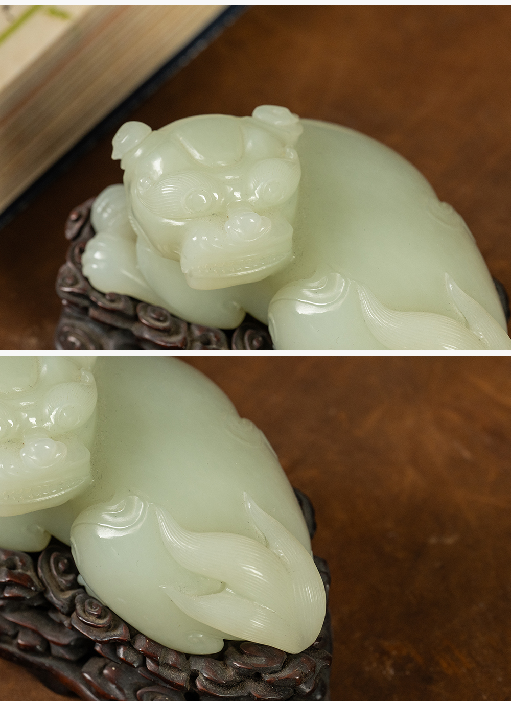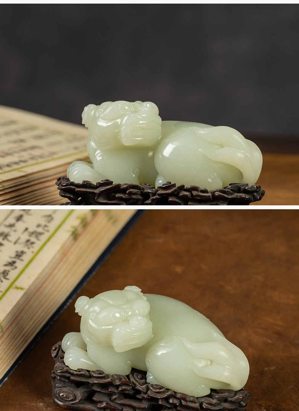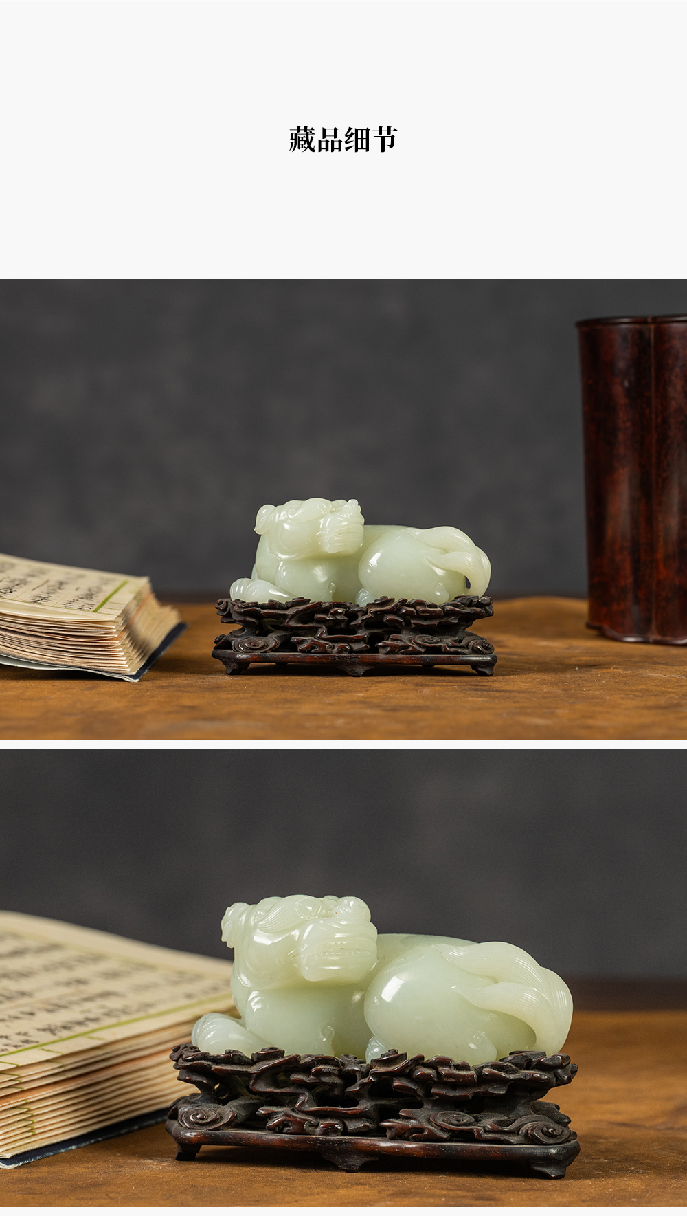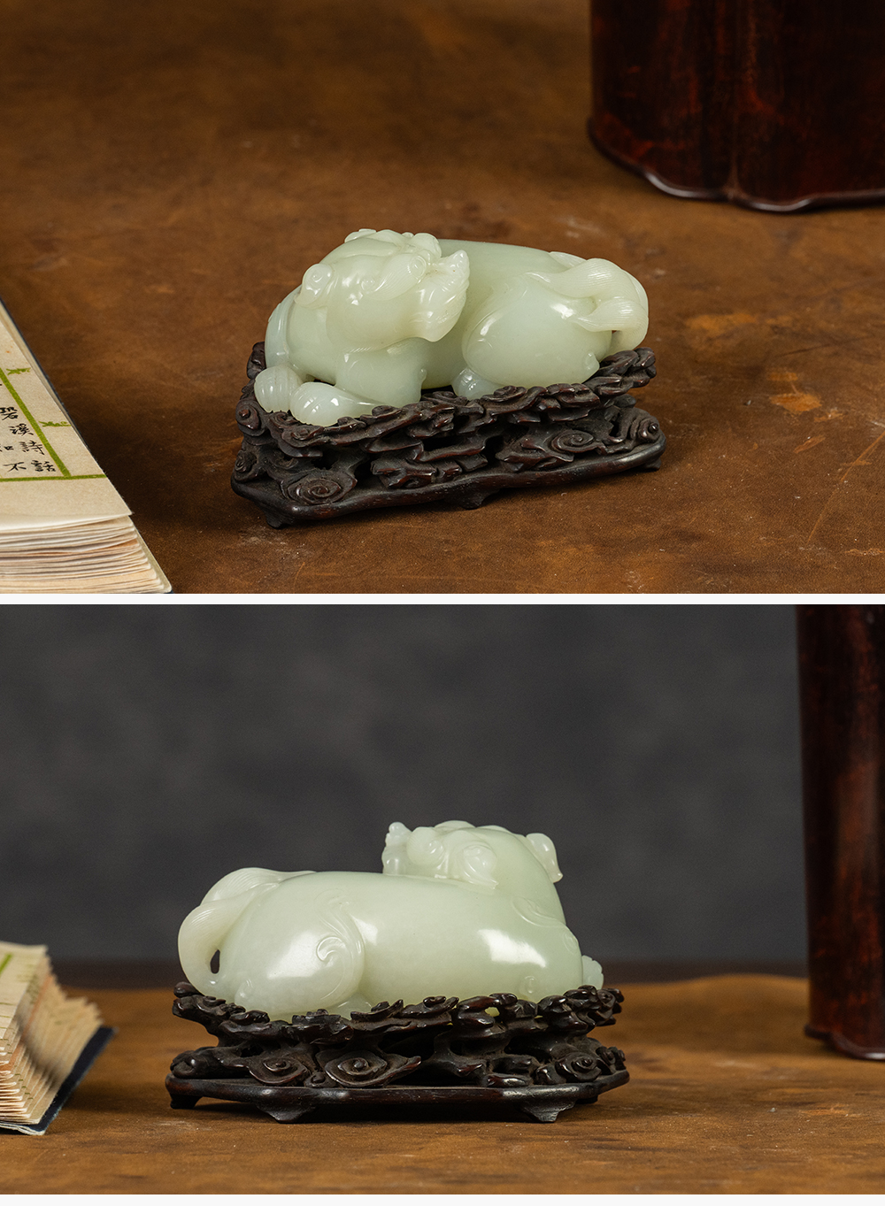 清 玉雕瑞兽摆件(红木座)