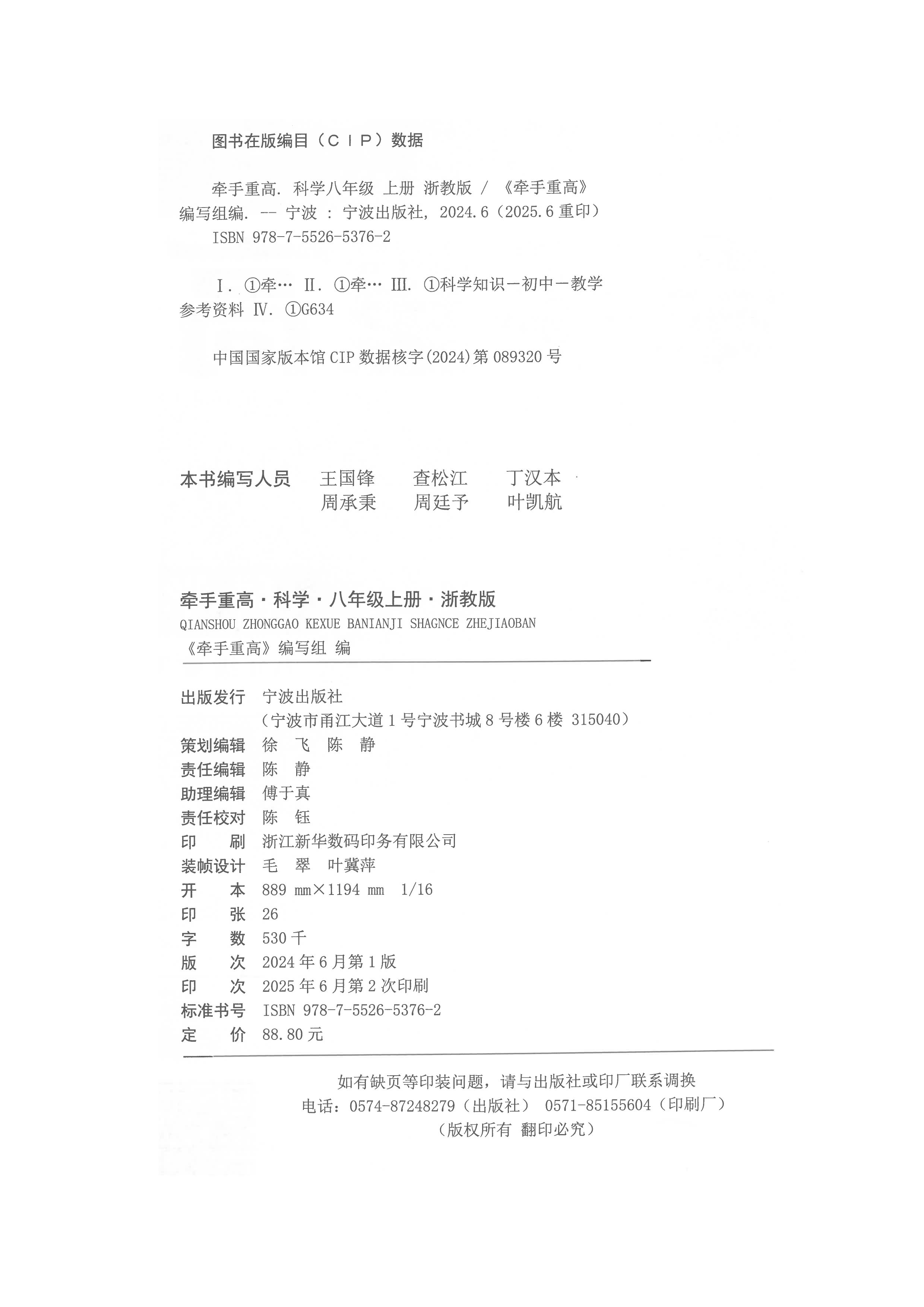 25版 牵手重高 科学八年级上册 浙教版