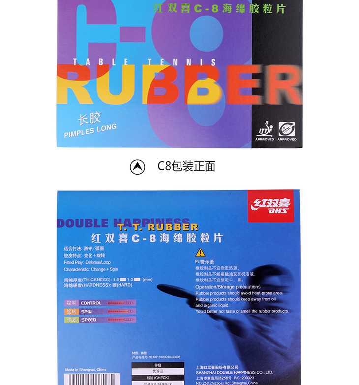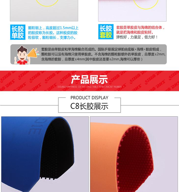 DHS红双喜 C7 C8 魔术师乒乓球长胶 正胶 单胶皮 套胶 正品