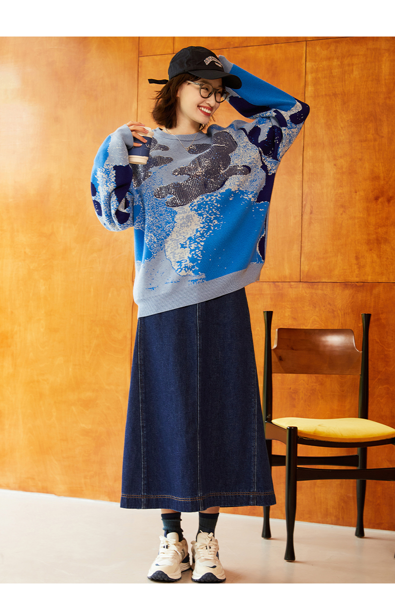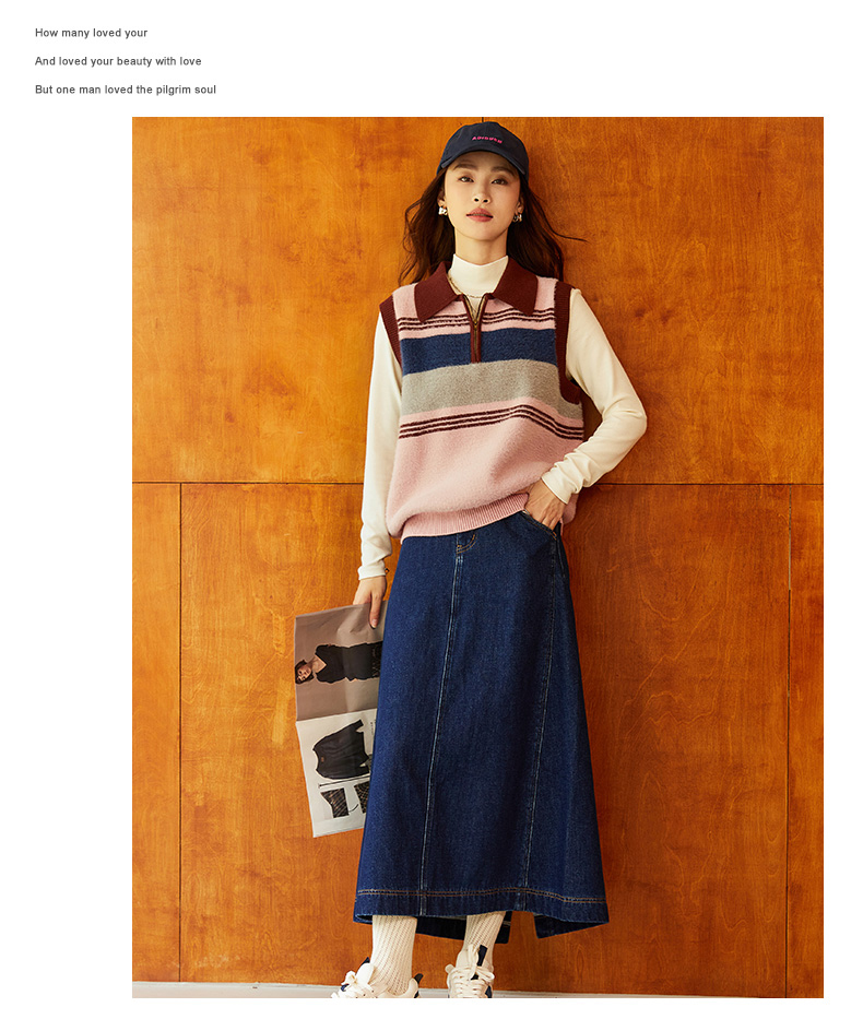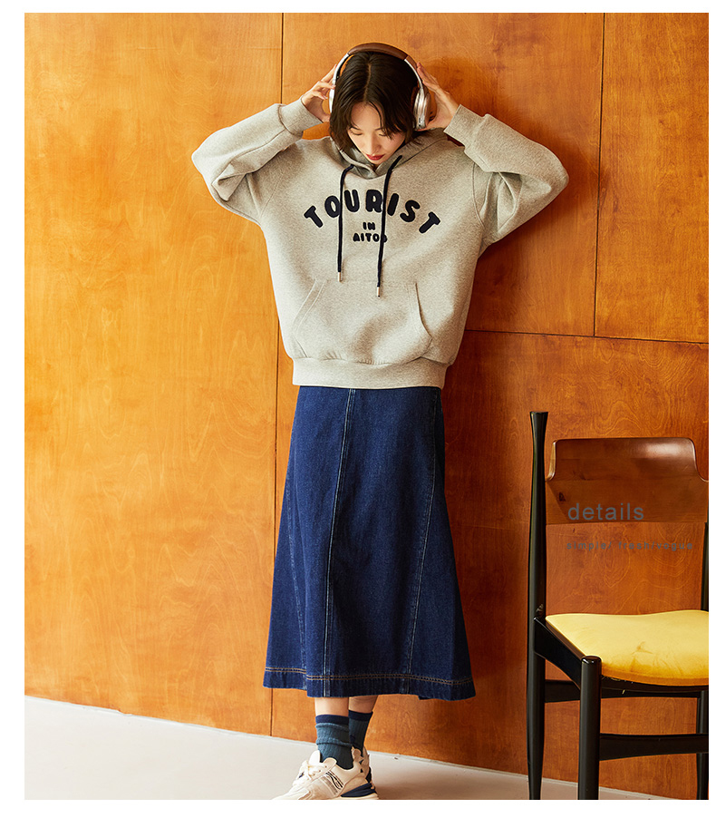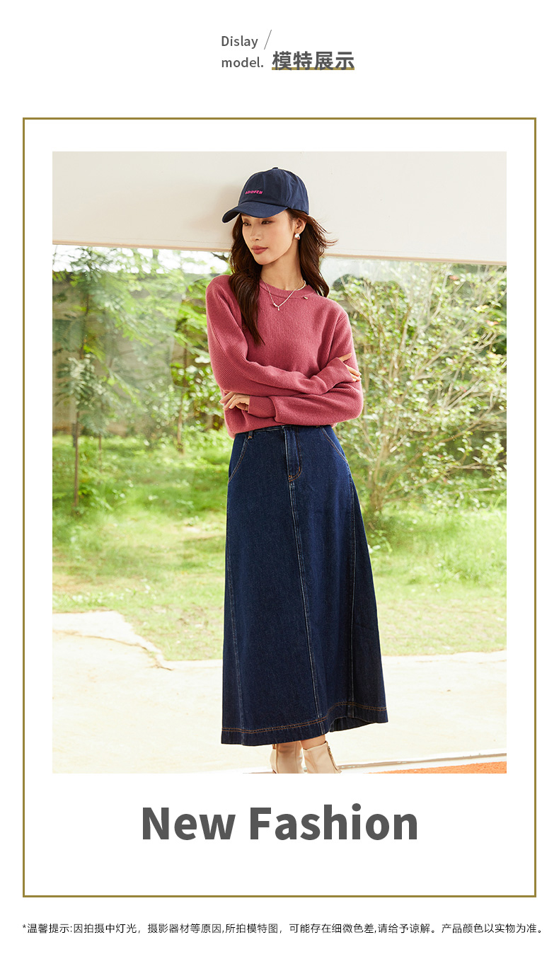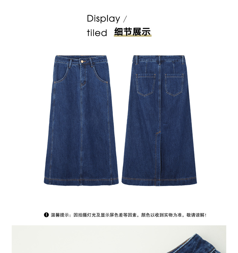 复古开叉牛仔半身裙女2024年冬季新款高腰百搭遮胯中长裙