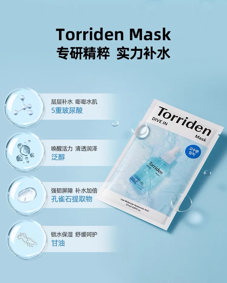 Torriden桃瑞丹玻尿酸面膜一盒10片