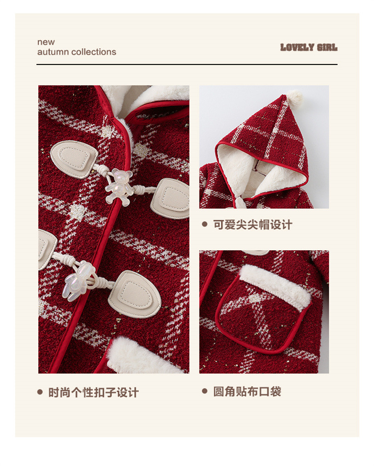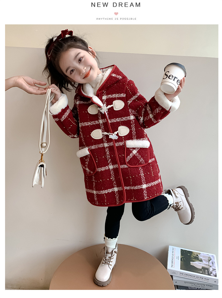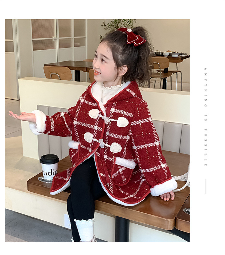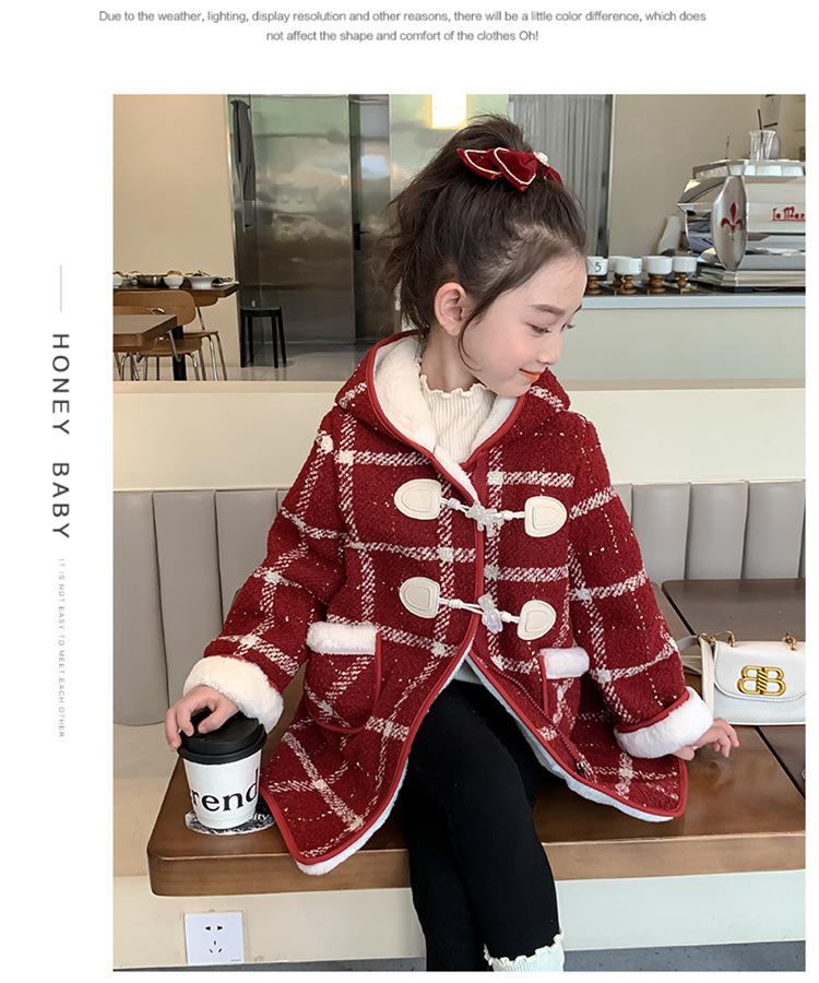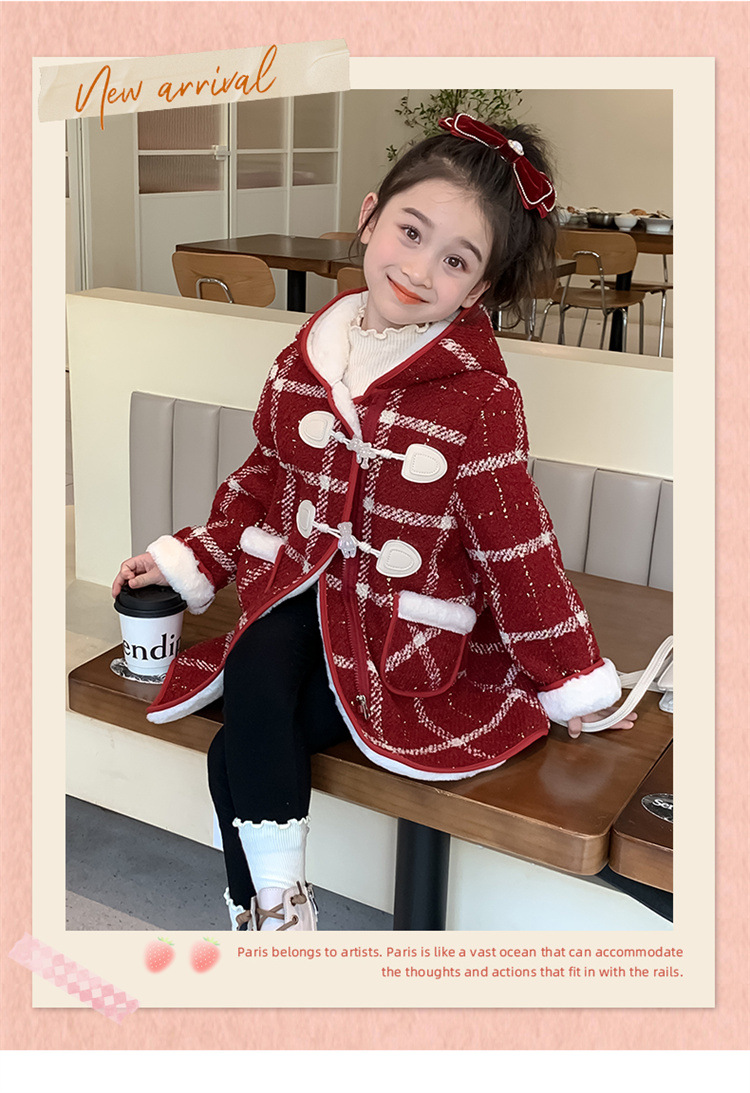 【新款加绒外套 暖和又洋气】女童加绒外套秋冬新款 洋气女孩时髦冬装 宝宝加厚冬季呢子大衣-QQ