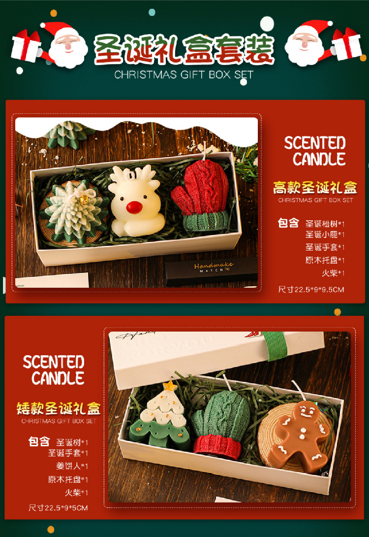 【圣诞礼物】圣诞节日卡通姜饼人蜡烛礼盒3件套 圣诞树小鹿造型香薰蜡烛套装伴手礼