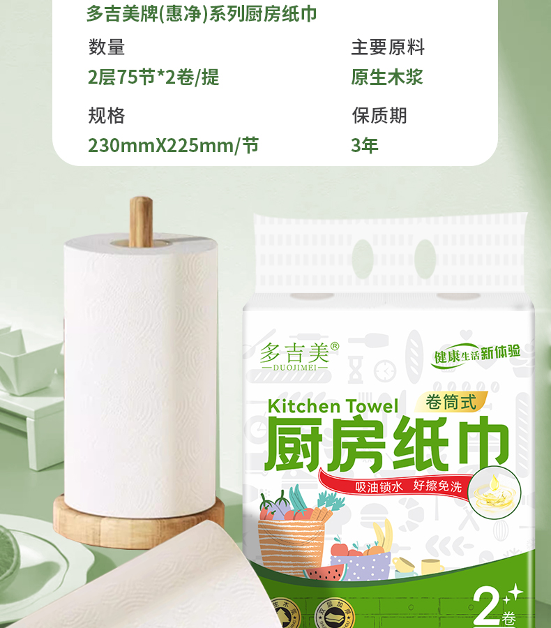 多吉美厨房纸巾(卷筒式)/1份(2卷*3包,每卷75节)限用日期:28年1月补单专用